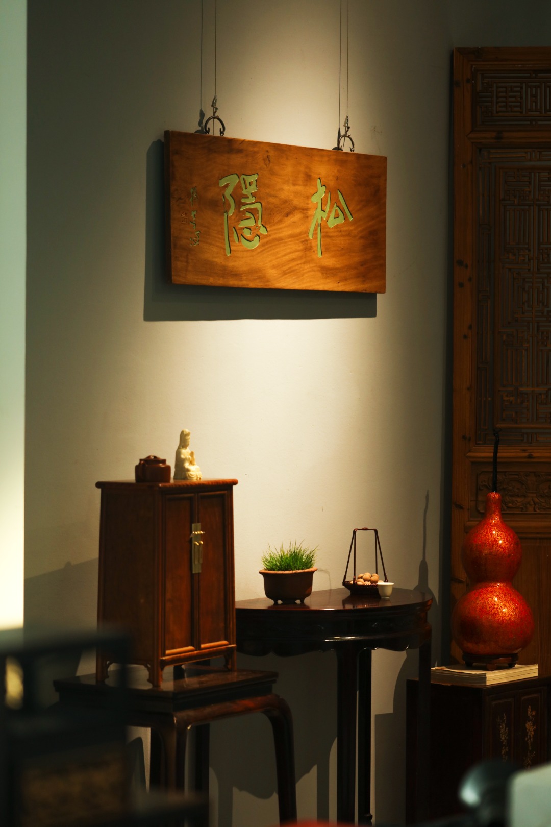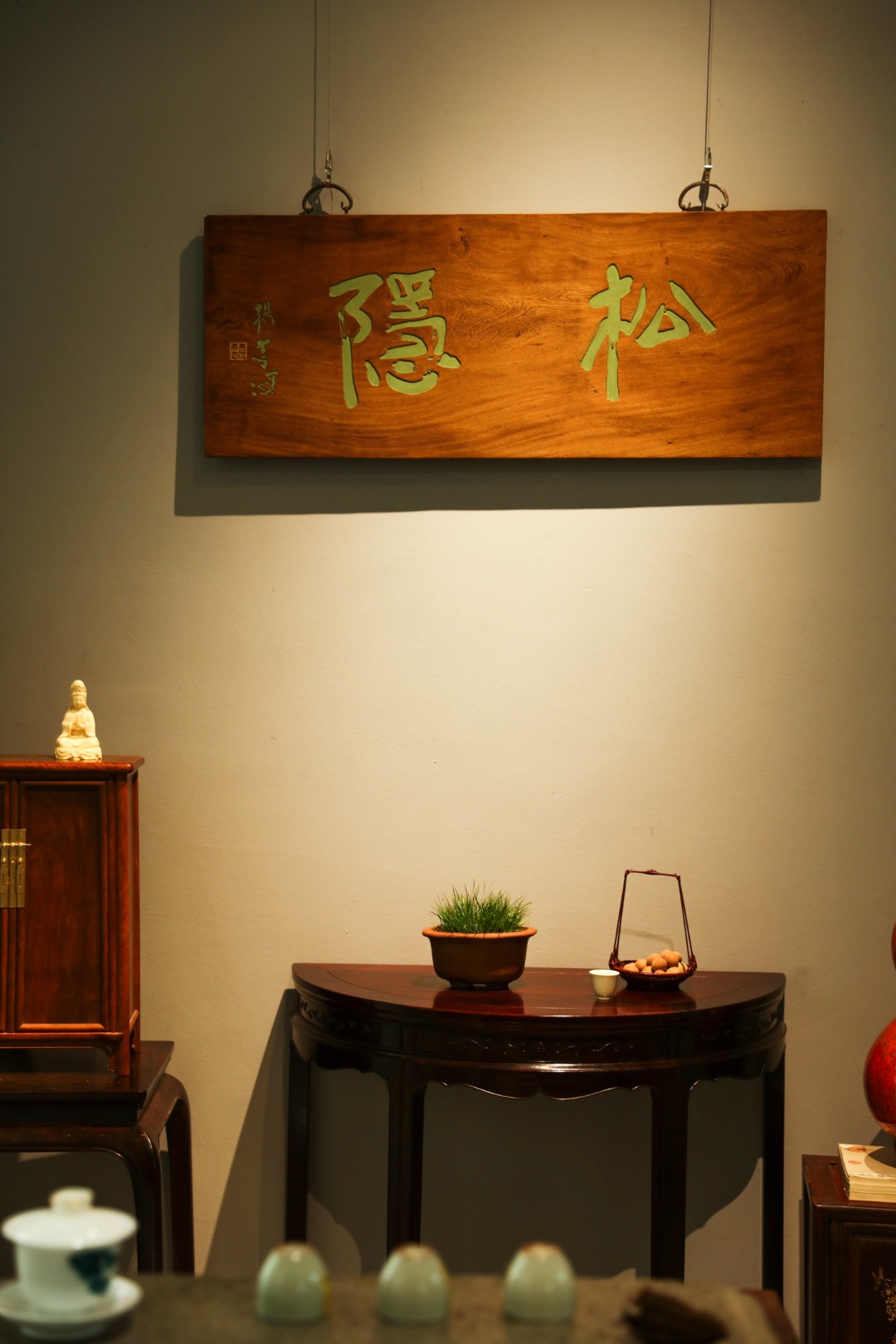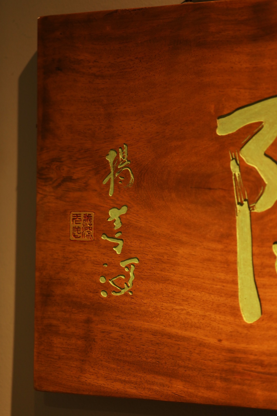 取旧时老板料,手刻对联,大漆描绘,原皮壳沉着古朴,悬于空间,深得意象真趣,人生理趣,为文房雅室佳选。
