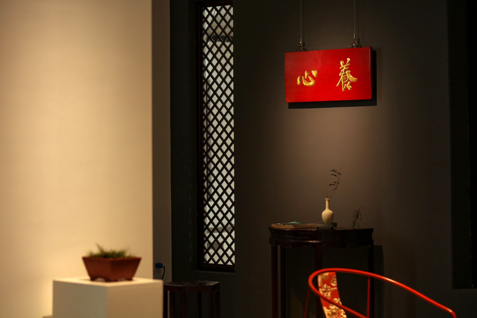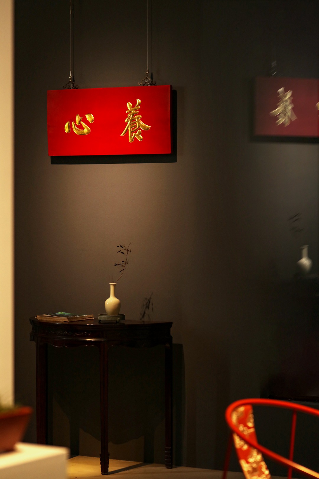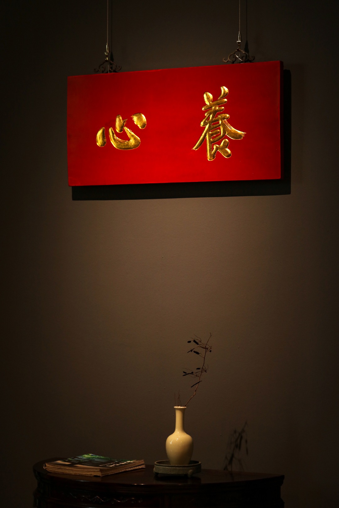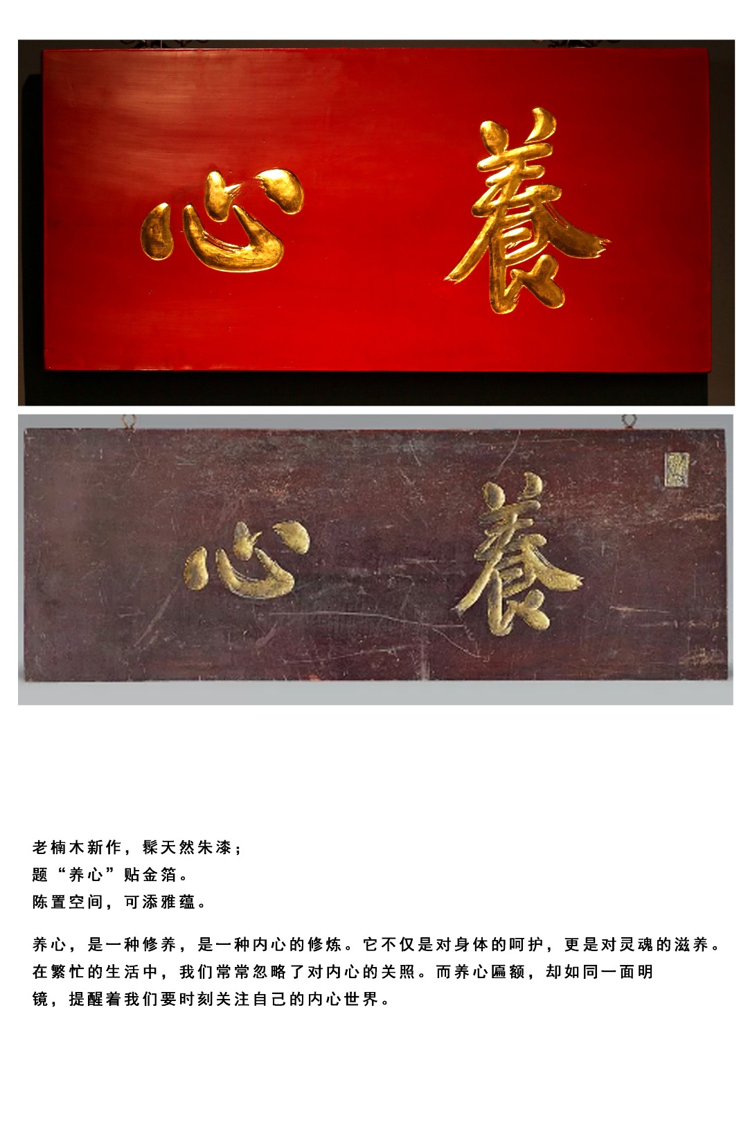 题“养心”贴金箔,