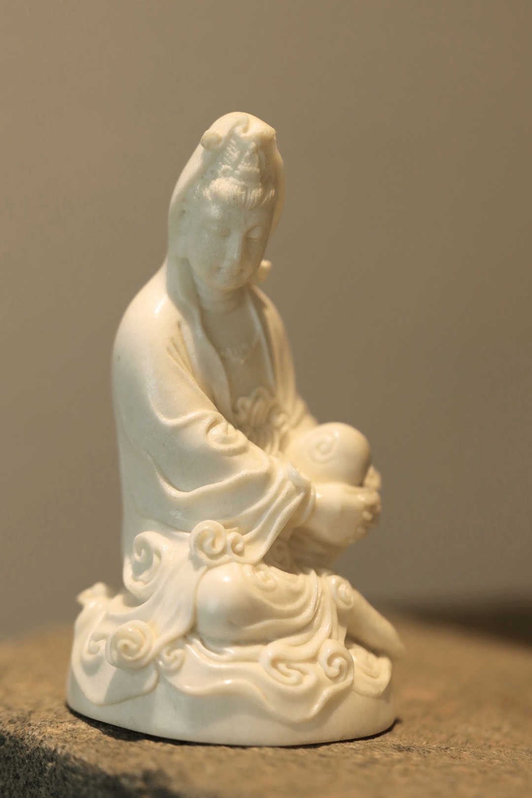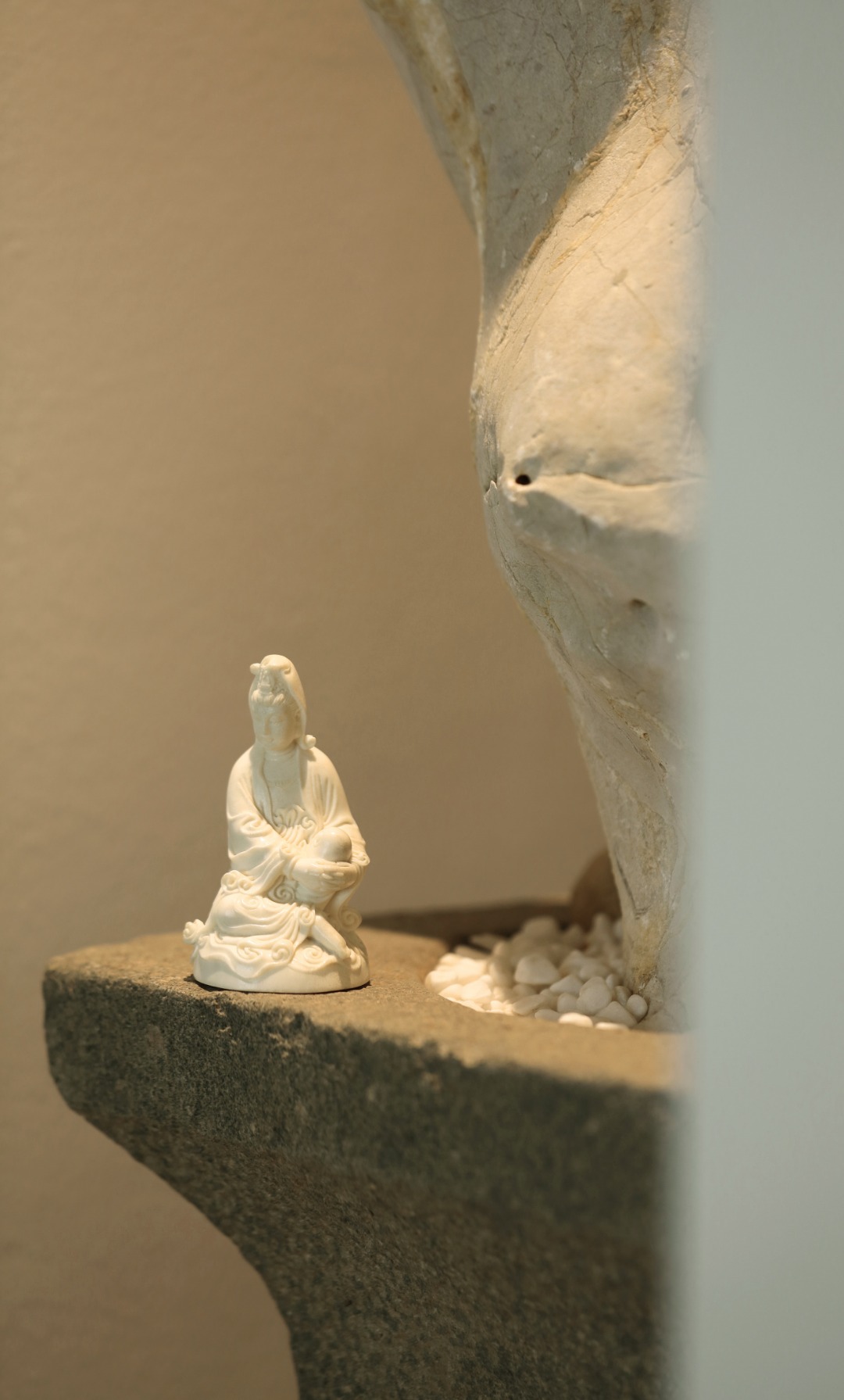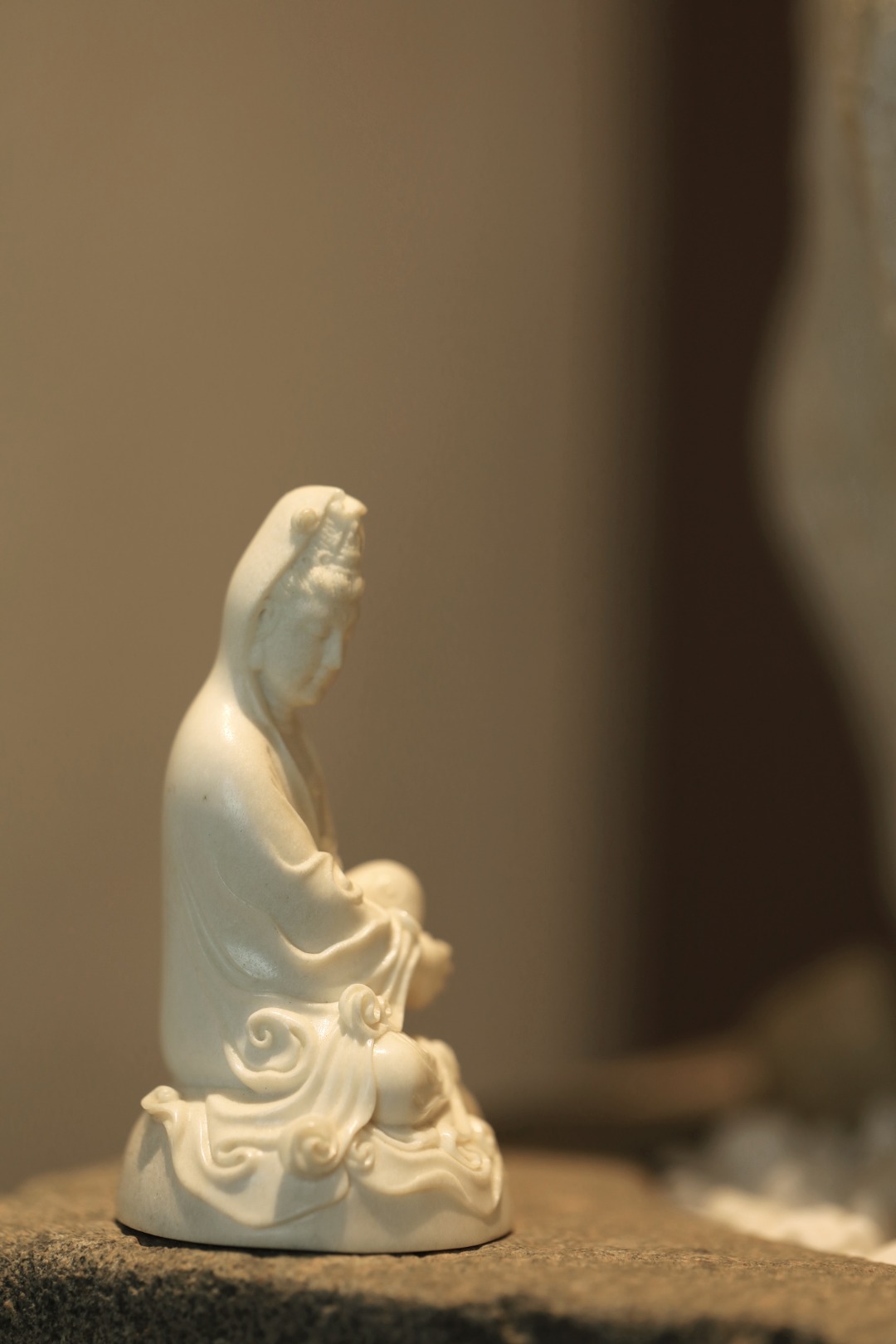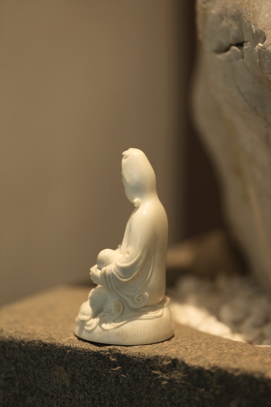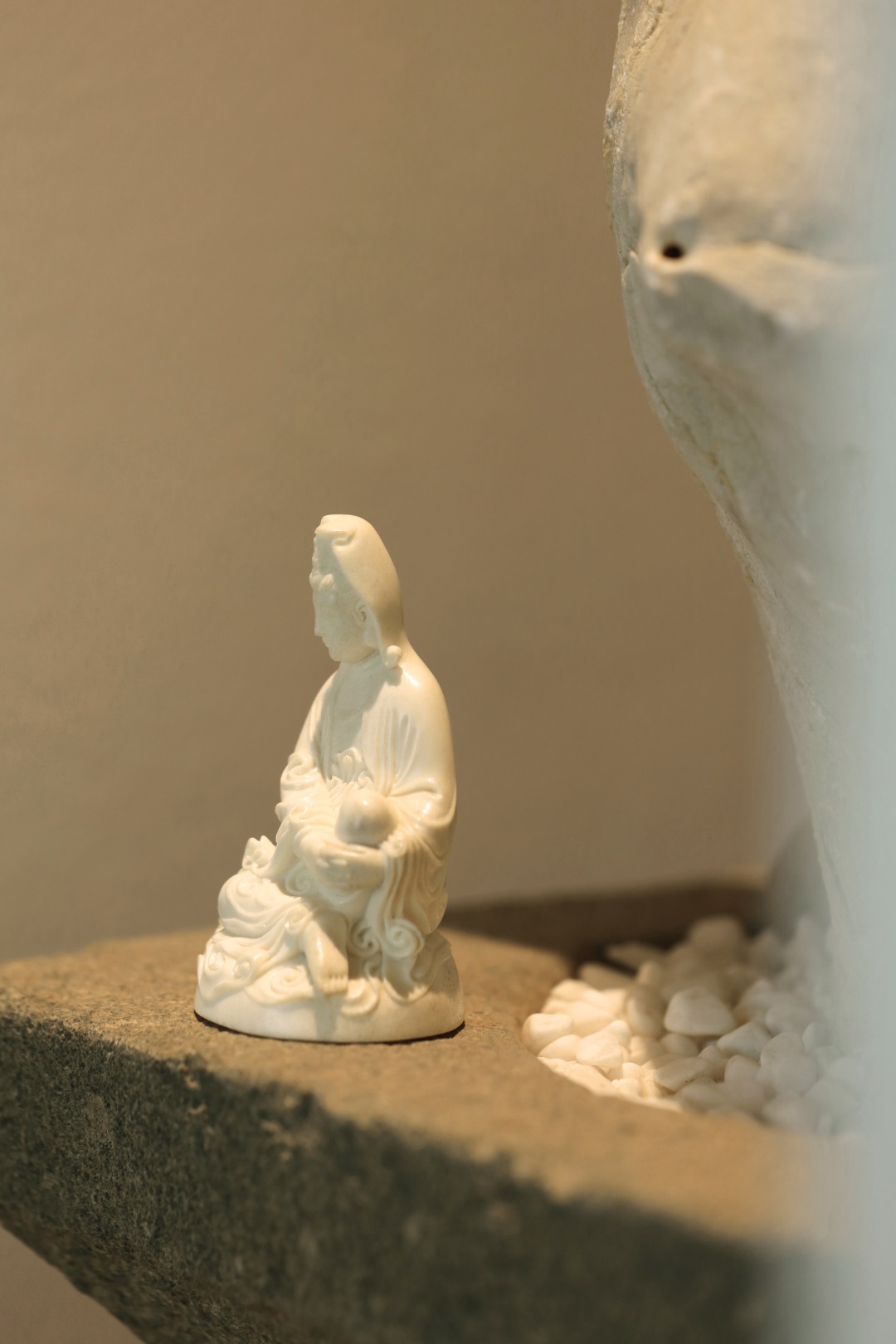 取材洁白凝润,菩萨静坐形神静穆,雕刻细致入微,线条优美流畅,雅居陈设,殊胜吉祥。