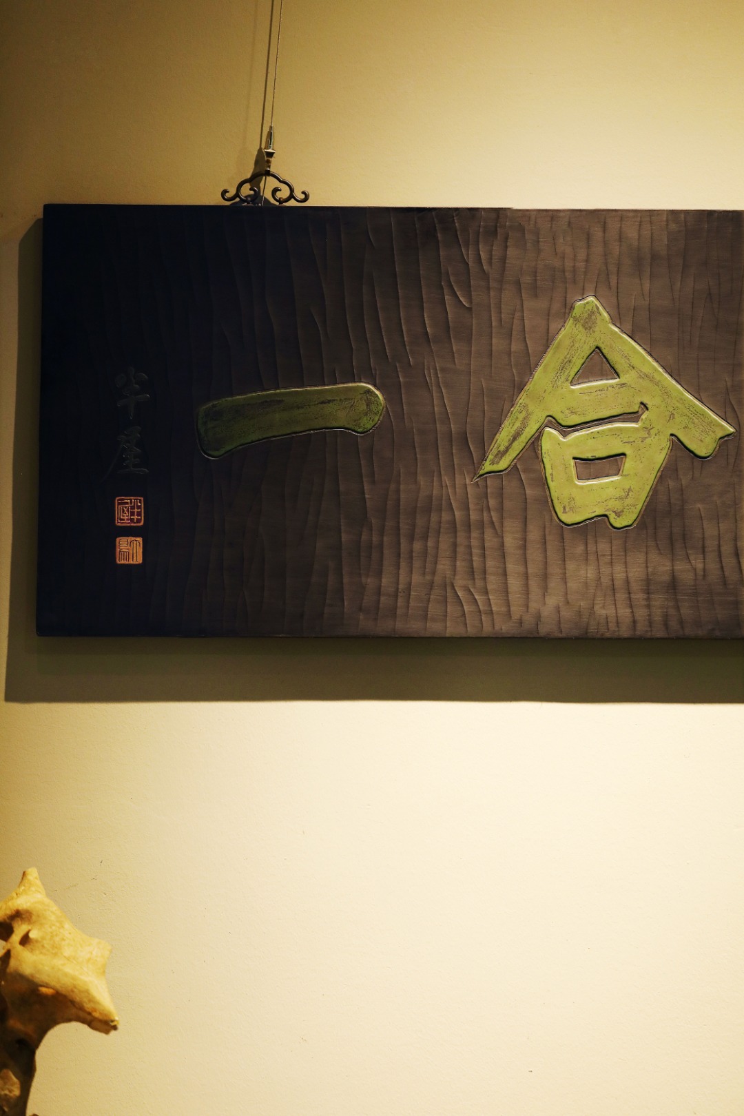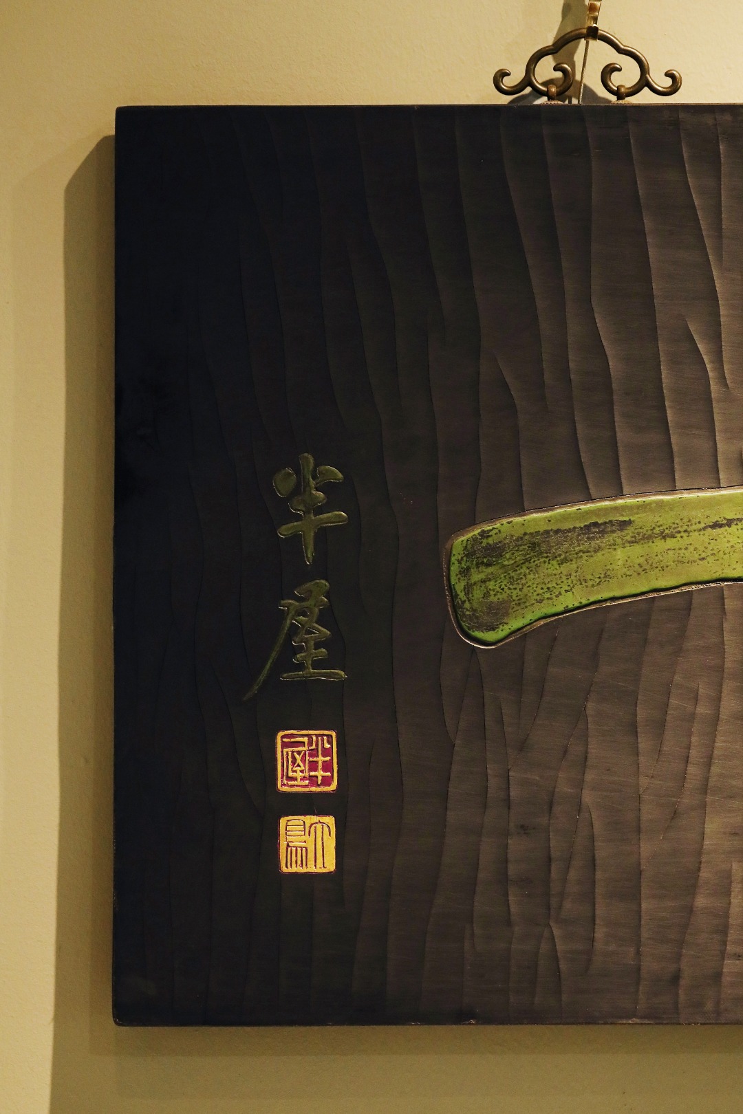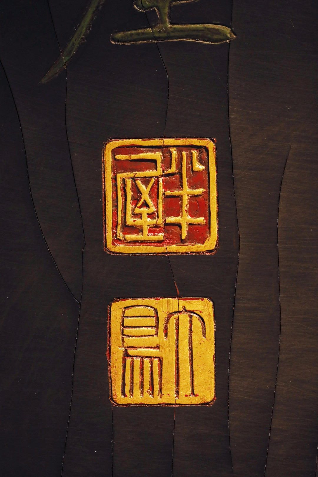 质地沉着古朴,手工阳刻,后大漆描绘,