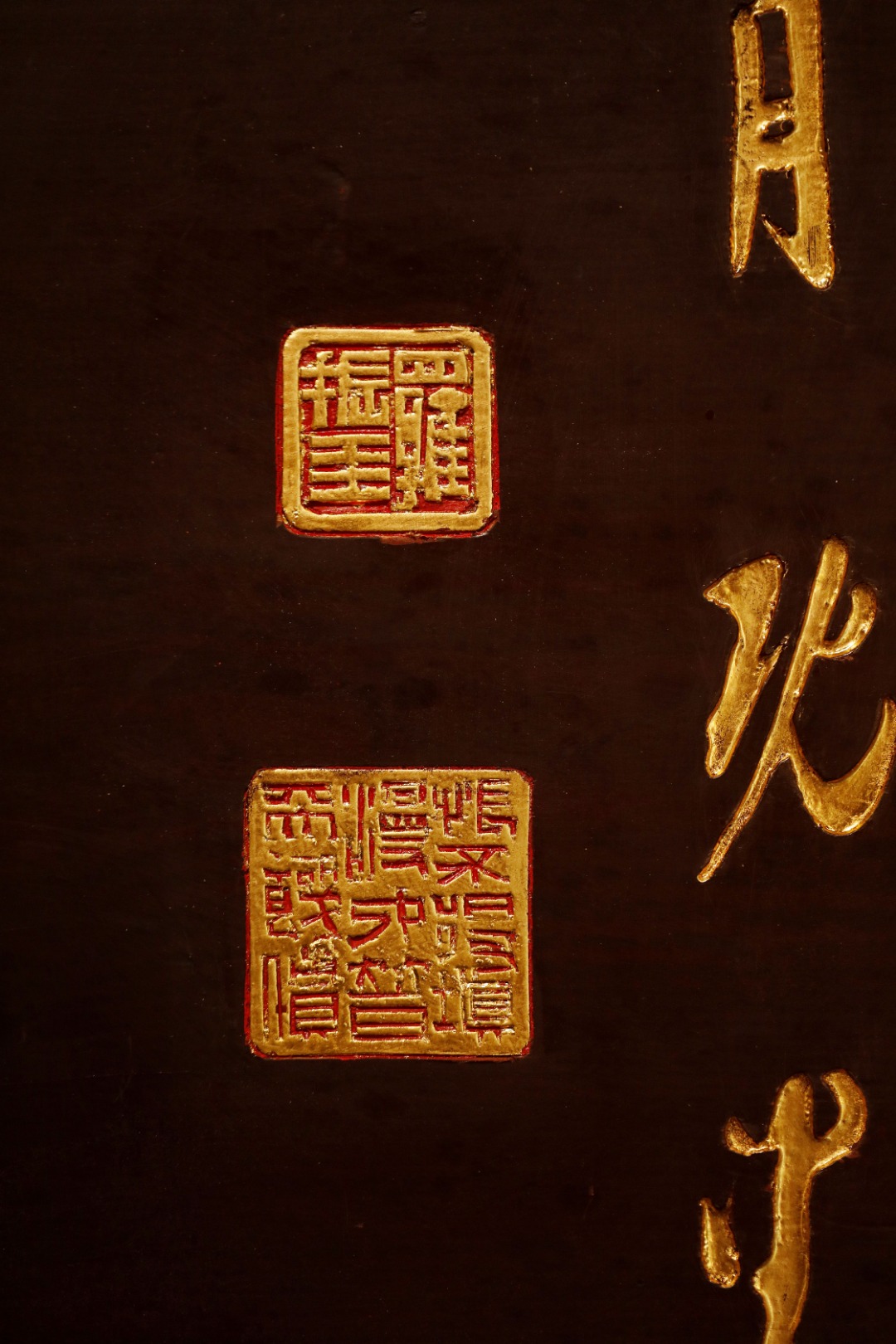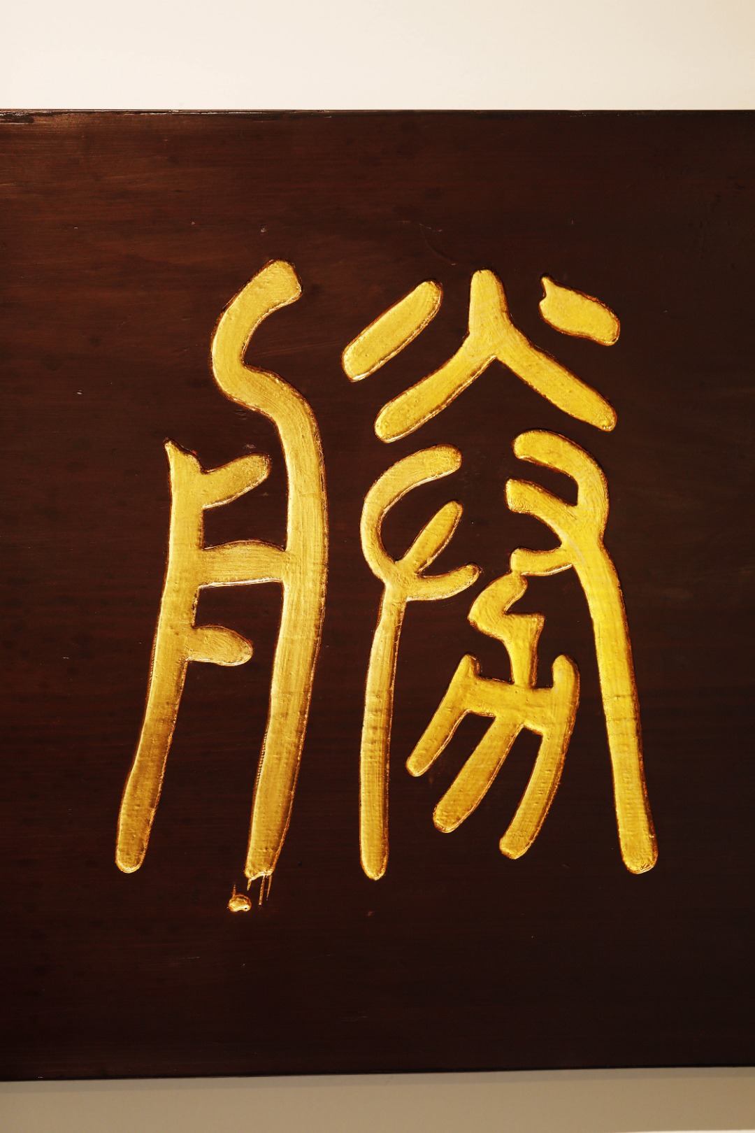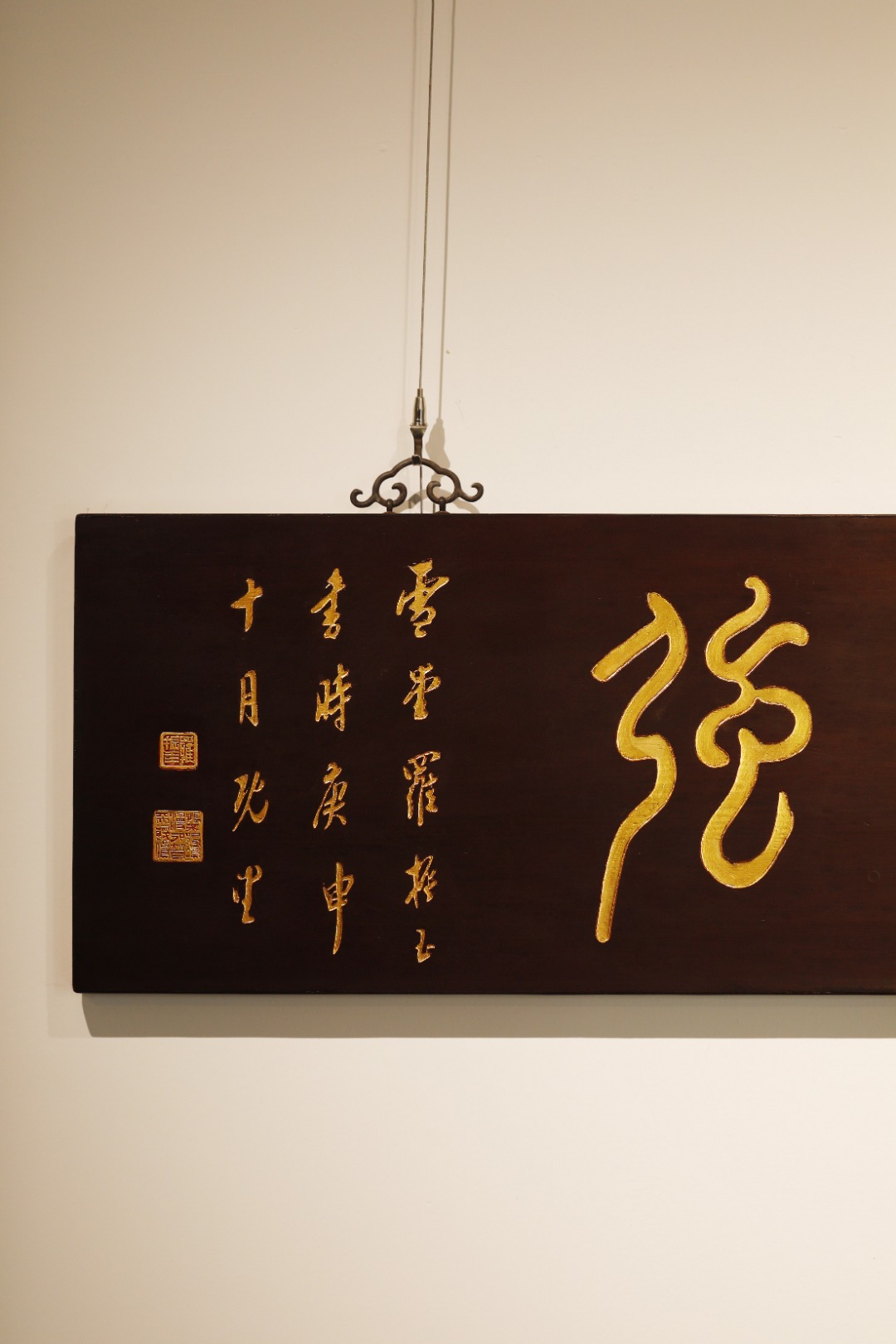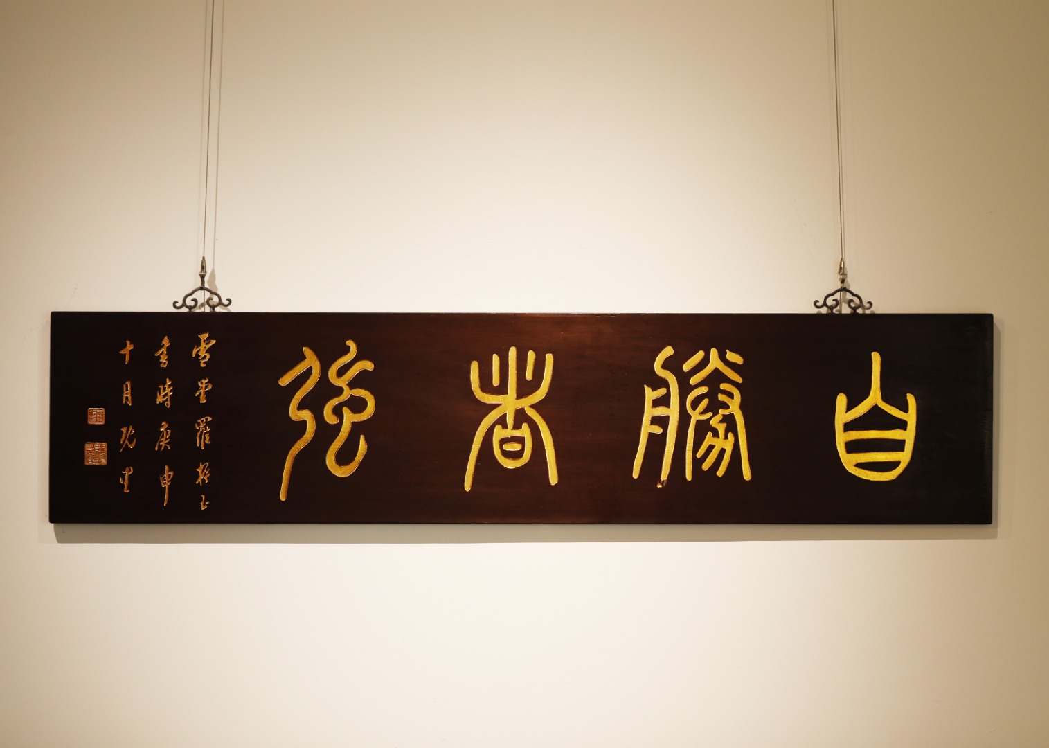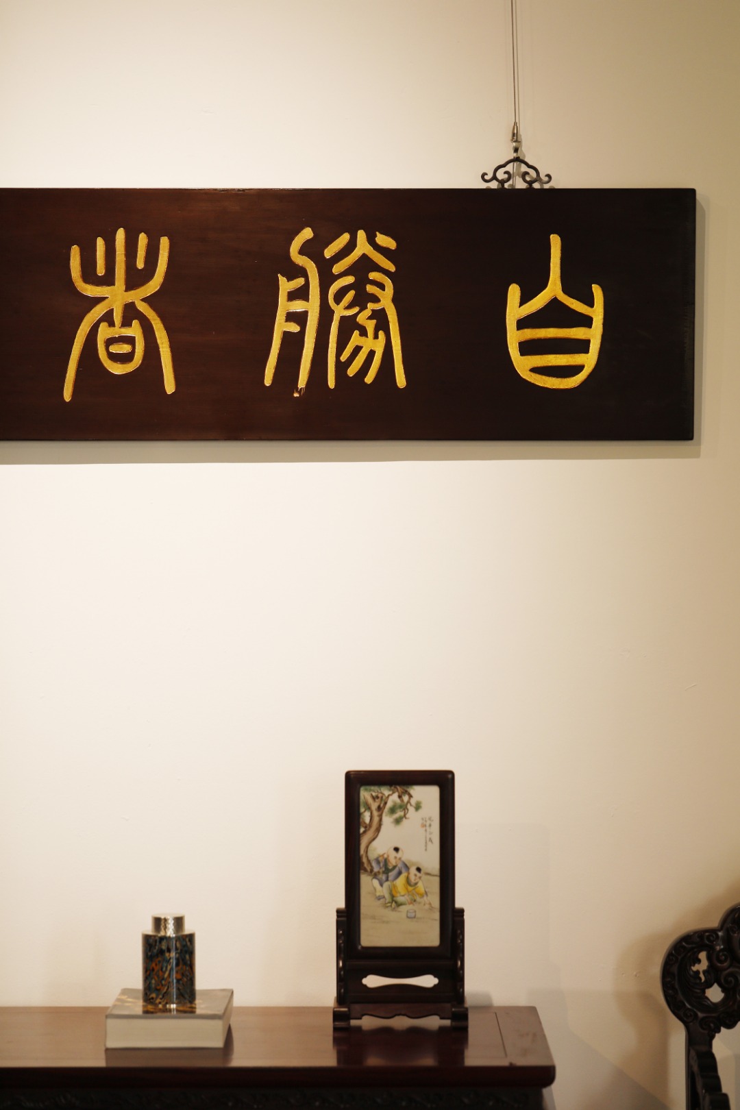 手工刻画,后又真金箔贴就,题识“自胜者强”,