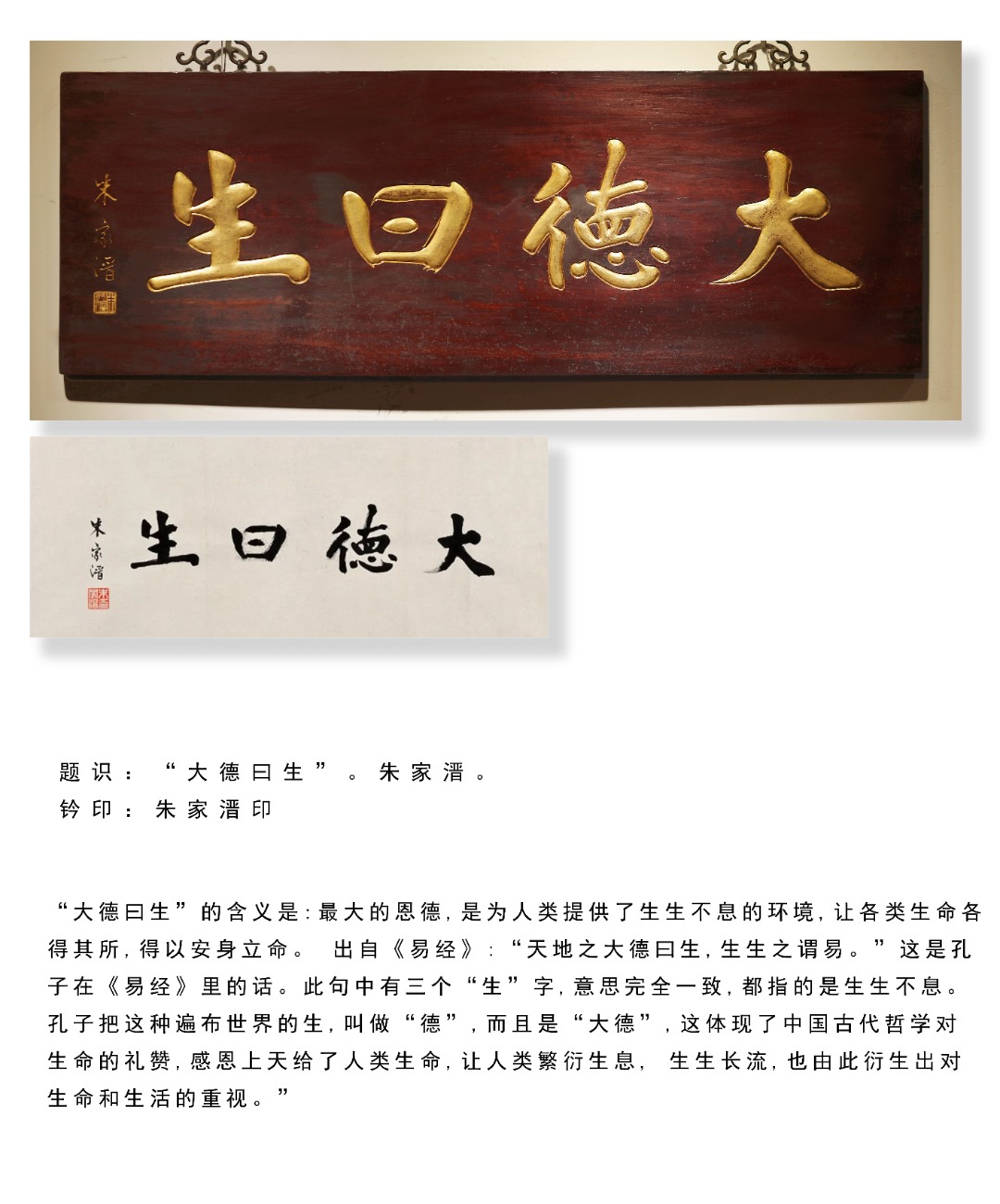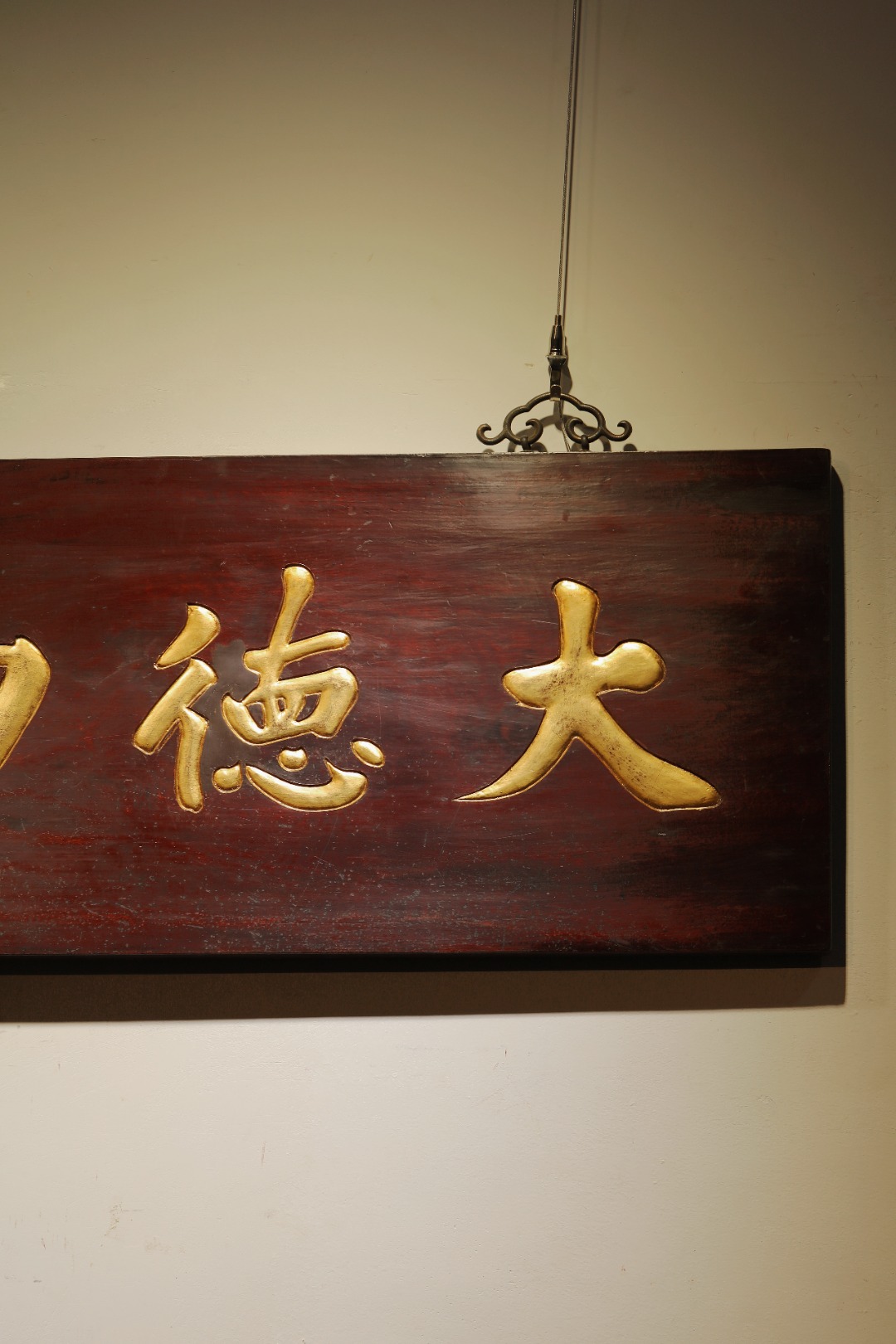 老楠木新作,原漆皮壳古朴素雅,手工刻画,题字“大德日生.”贴金箔,陈置厅堂文房,可添静雅之韵。