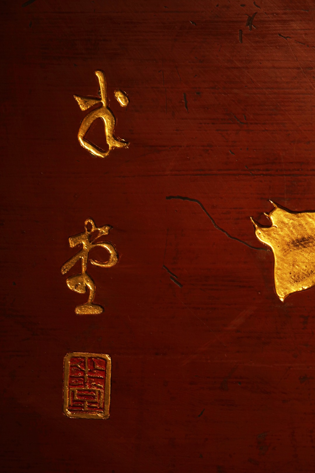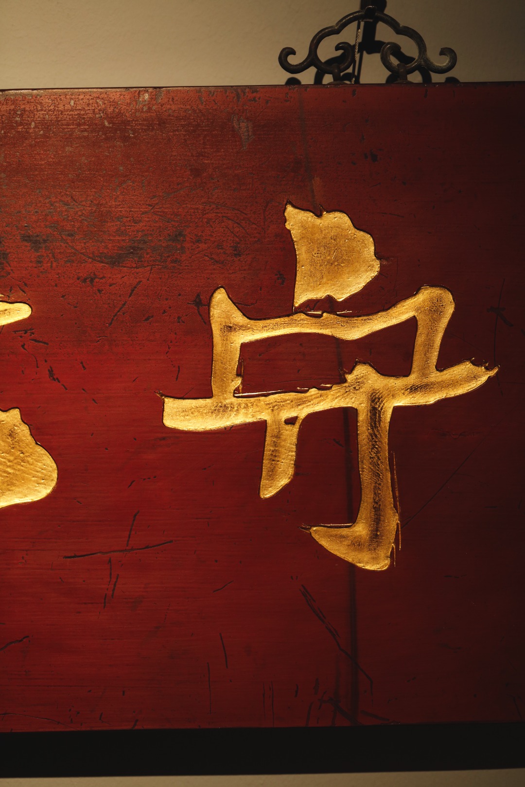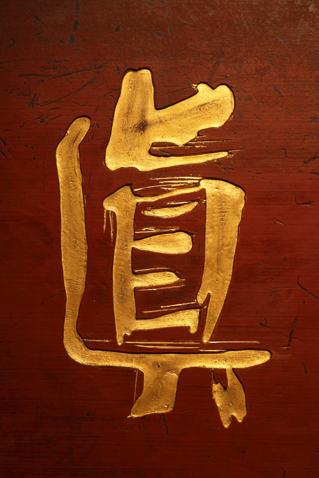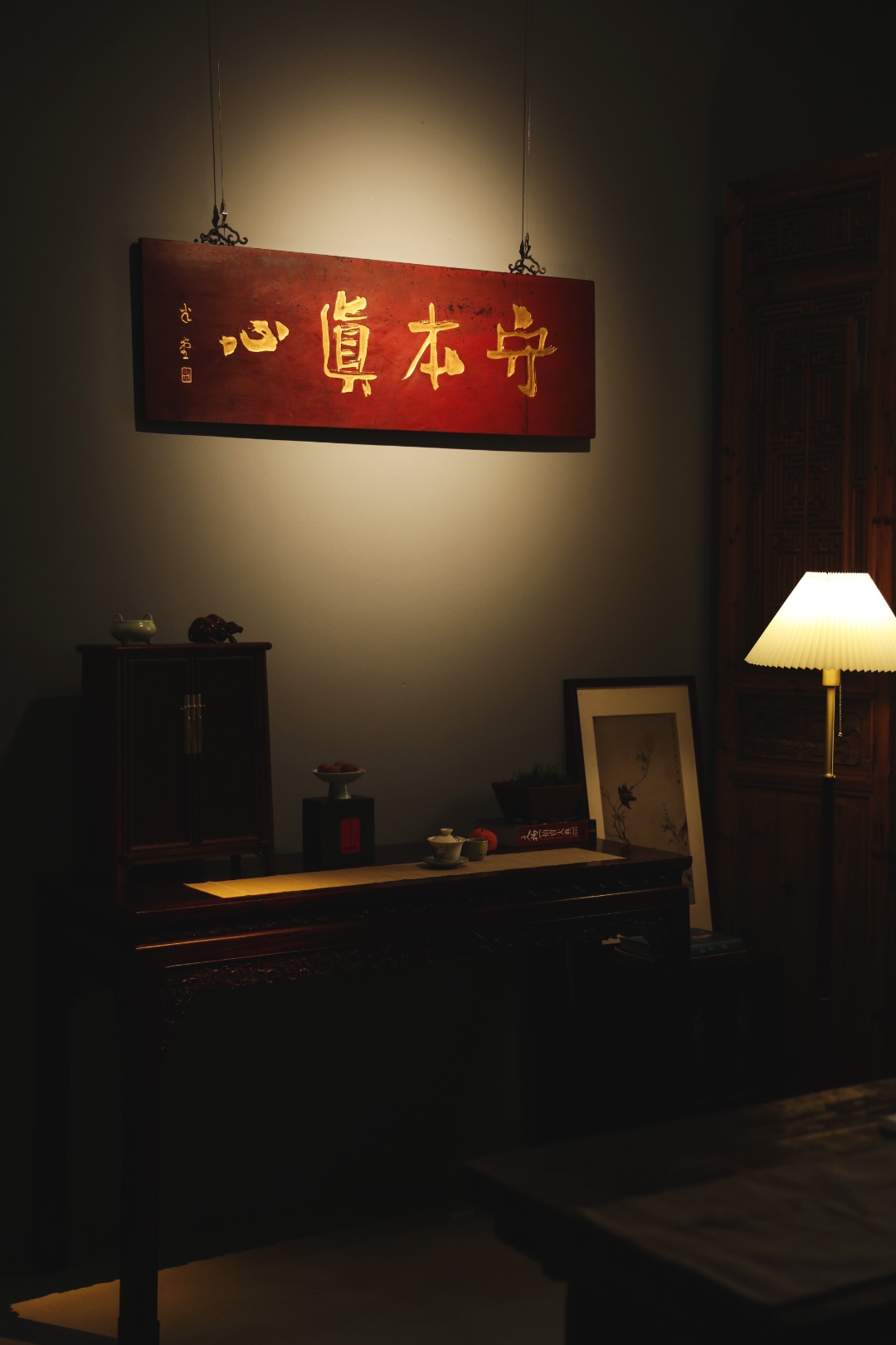 题字“守本真心”,手工贴金箔;