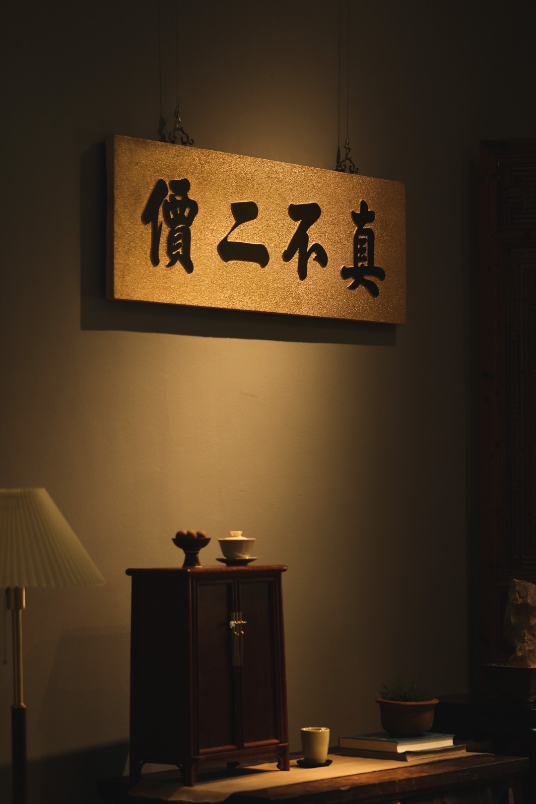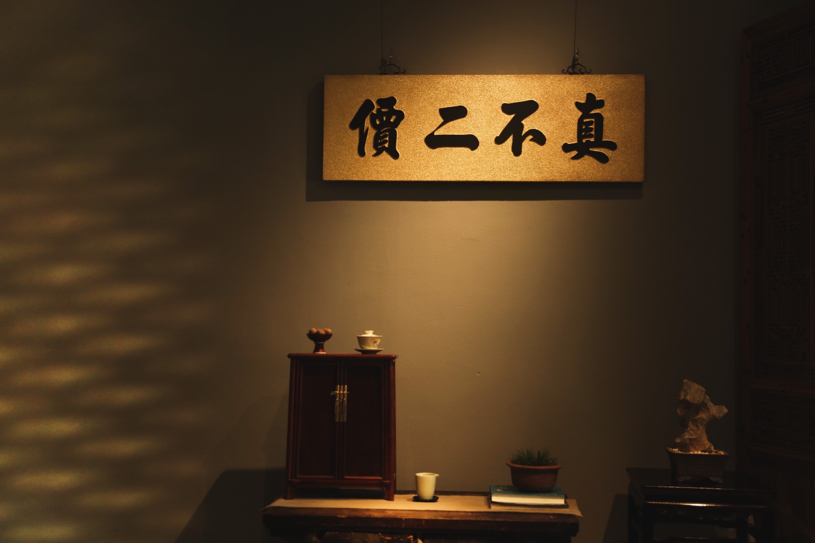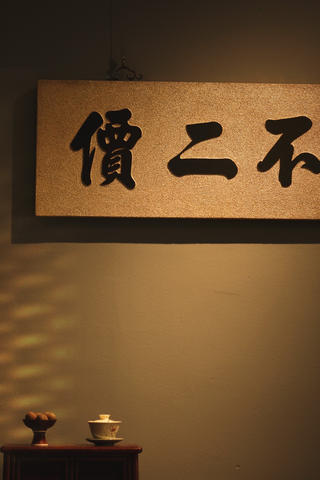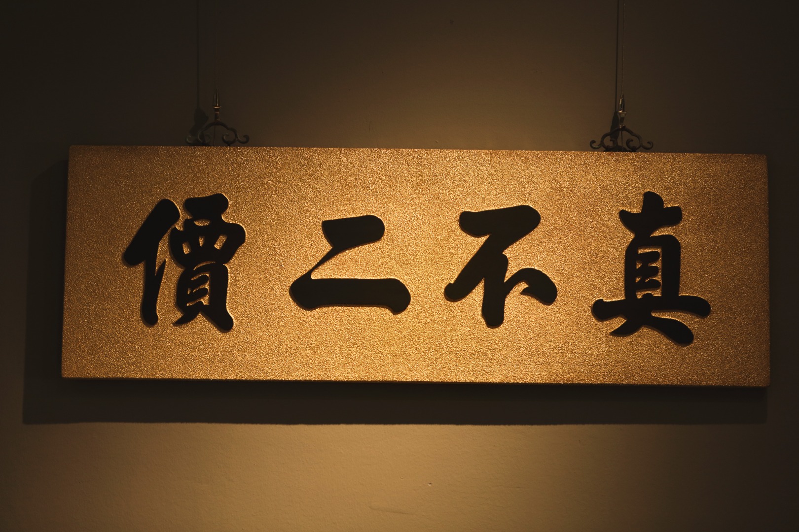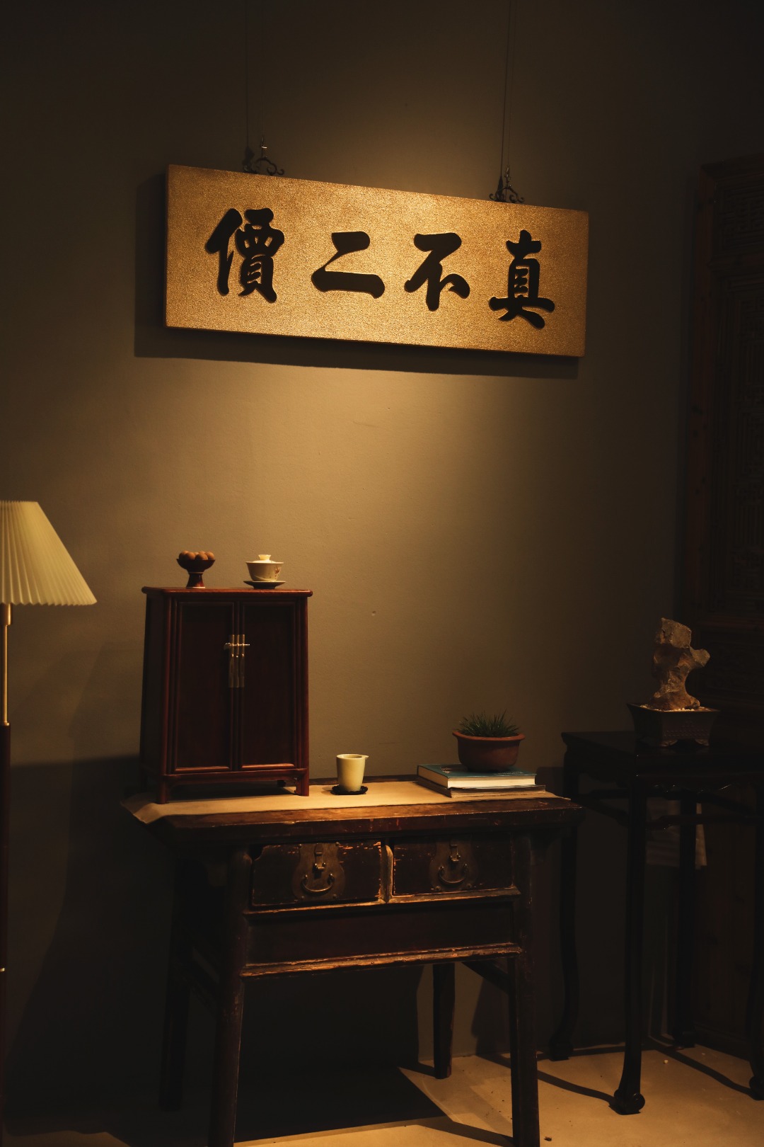 取材百年老楠木板新工,题识“真不二价”,面饰金箔漆,精致不失清雅,颇费工时,文房厅堂陈设,光彩夺目,古韵横生。