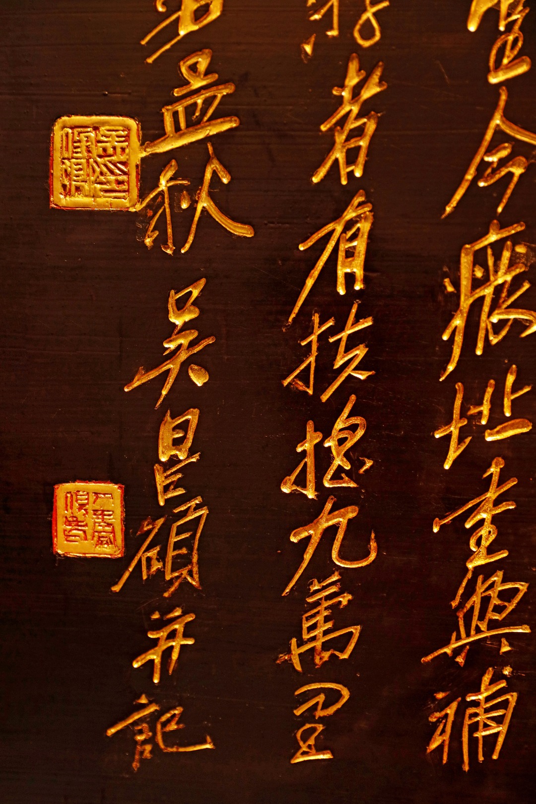 纯手工阴阳刻,面髹天然朱漆;