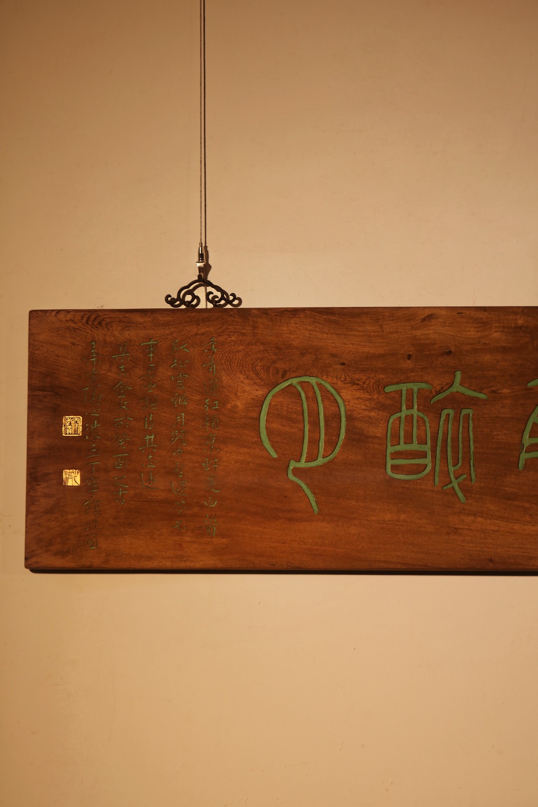 老楠木板新作,匾正面髹天然大漆,