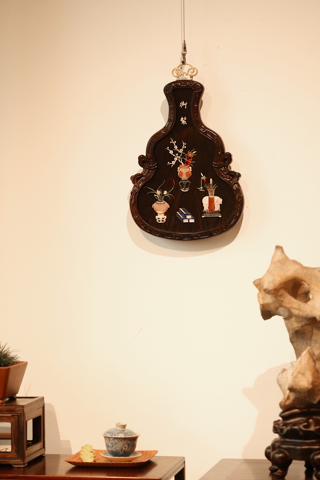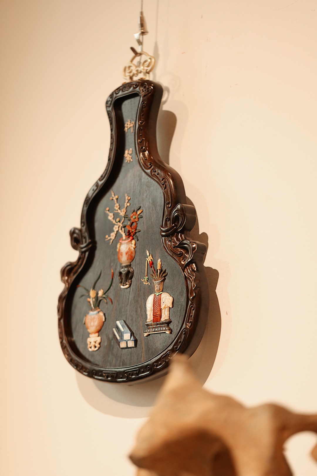 挂屏葫芦形,酸枝攒框,