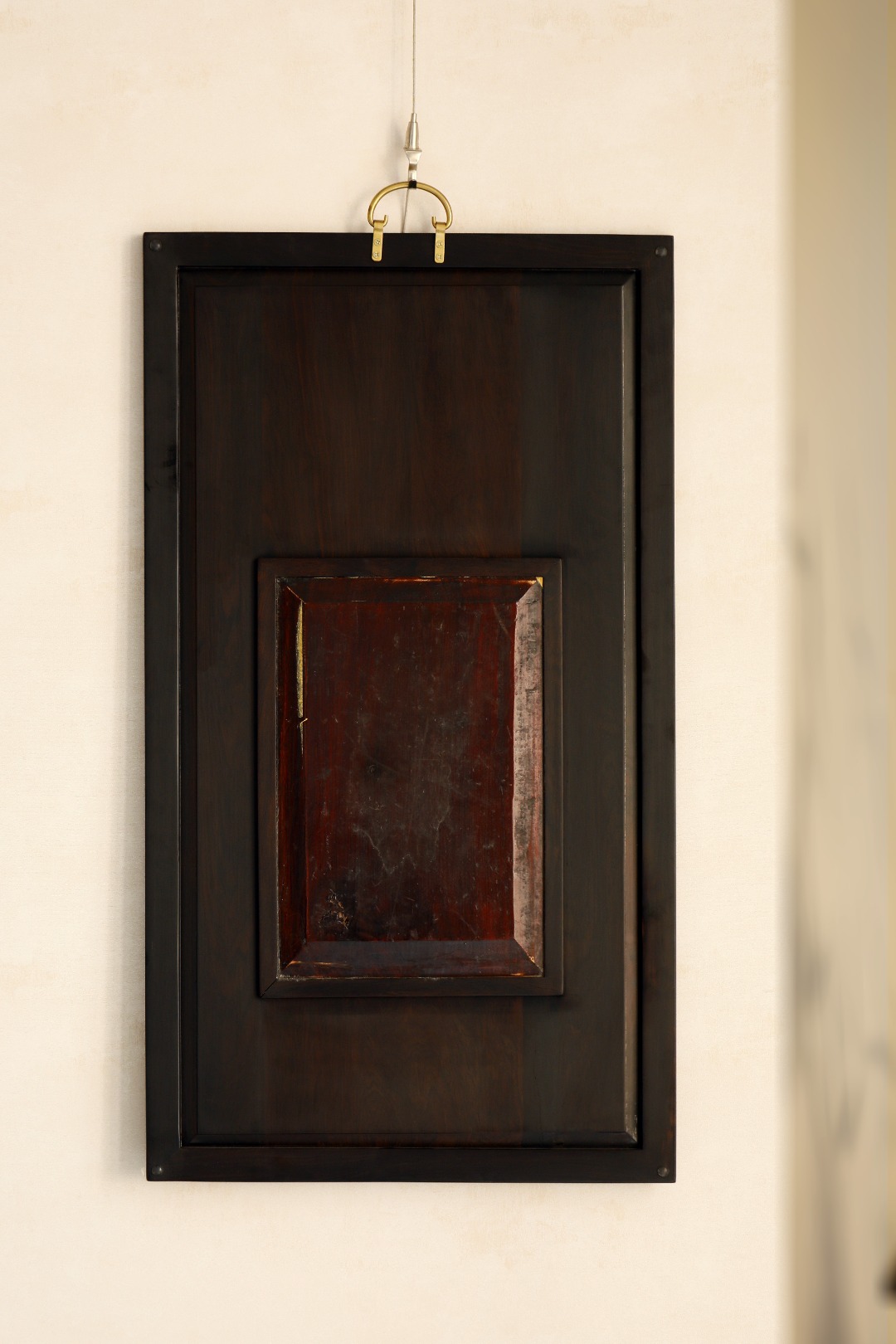 紫光檀攒框,屏心嵌清代老花板,