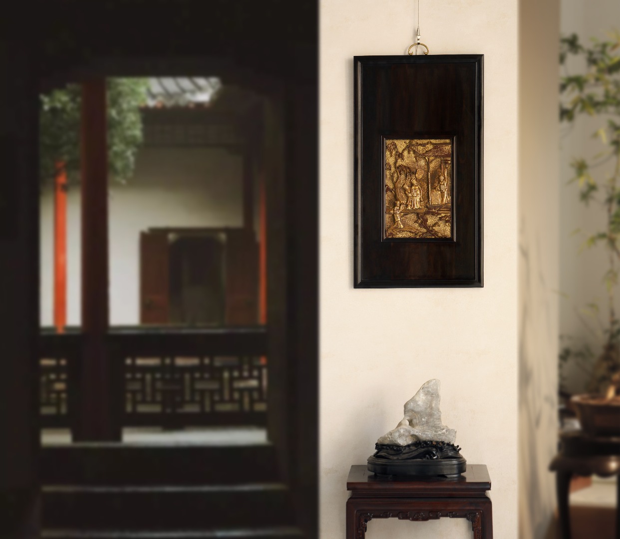 紫光檀【山亭雅趣】挂屏