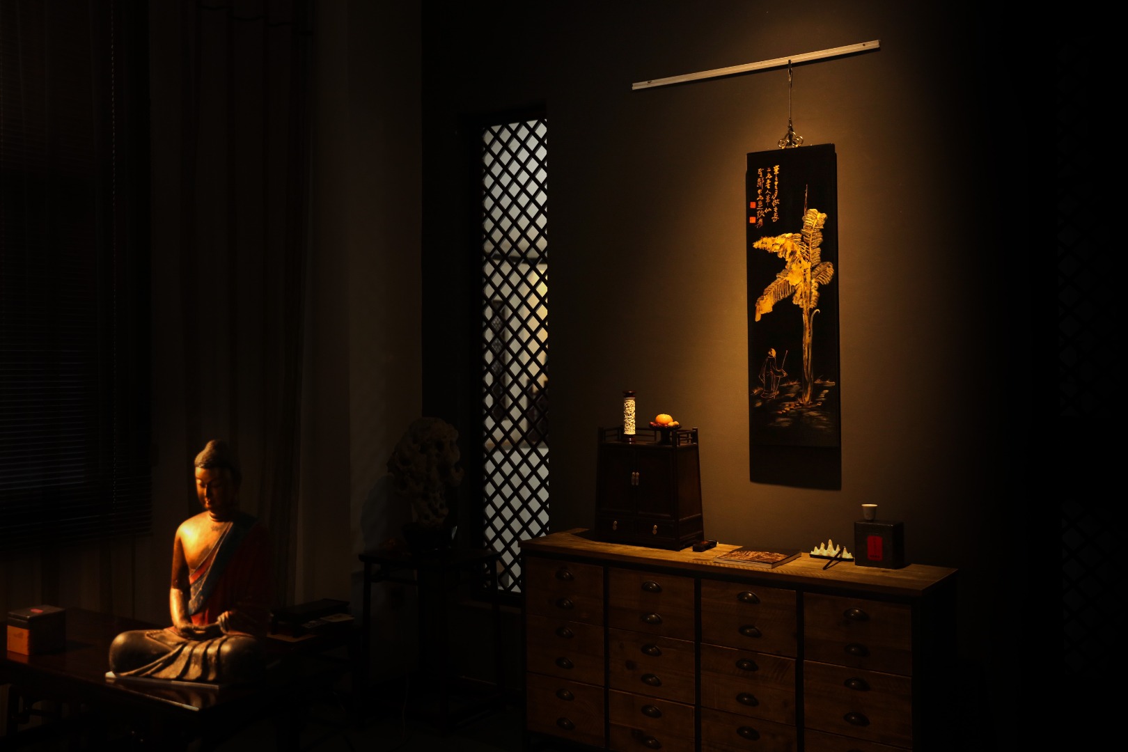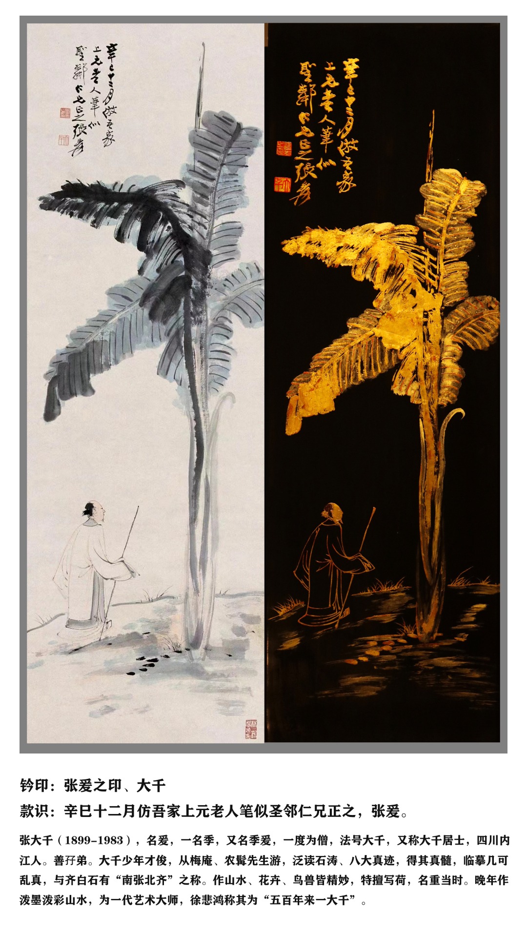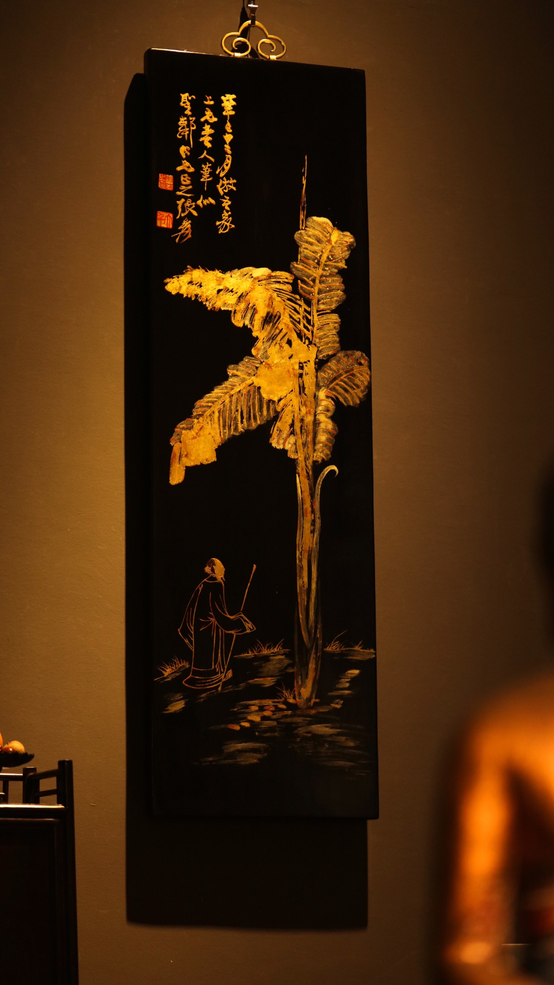 裱布刮灰,面髹黑漆,后又真金漆绘图;