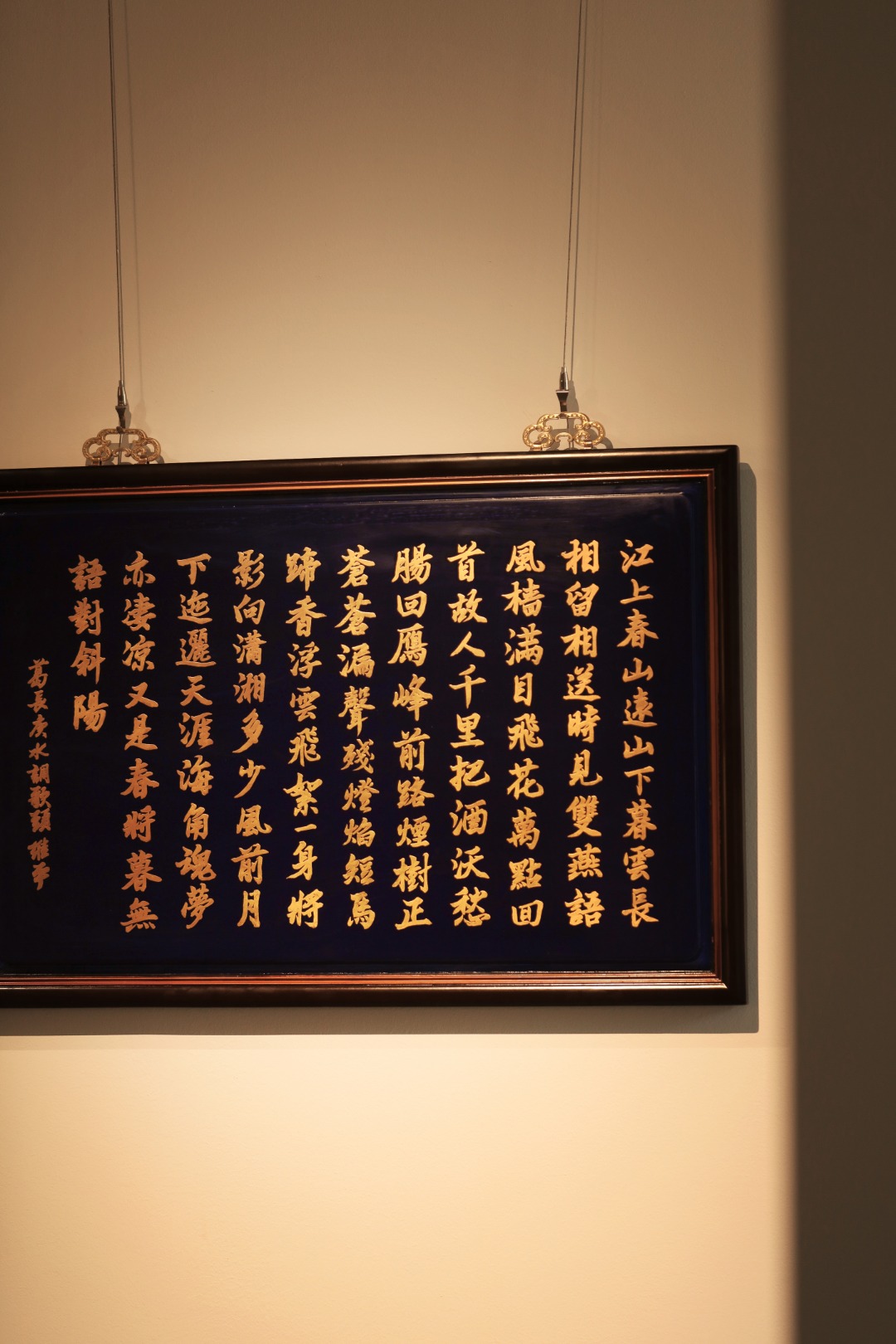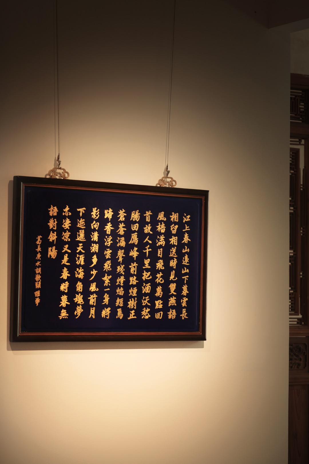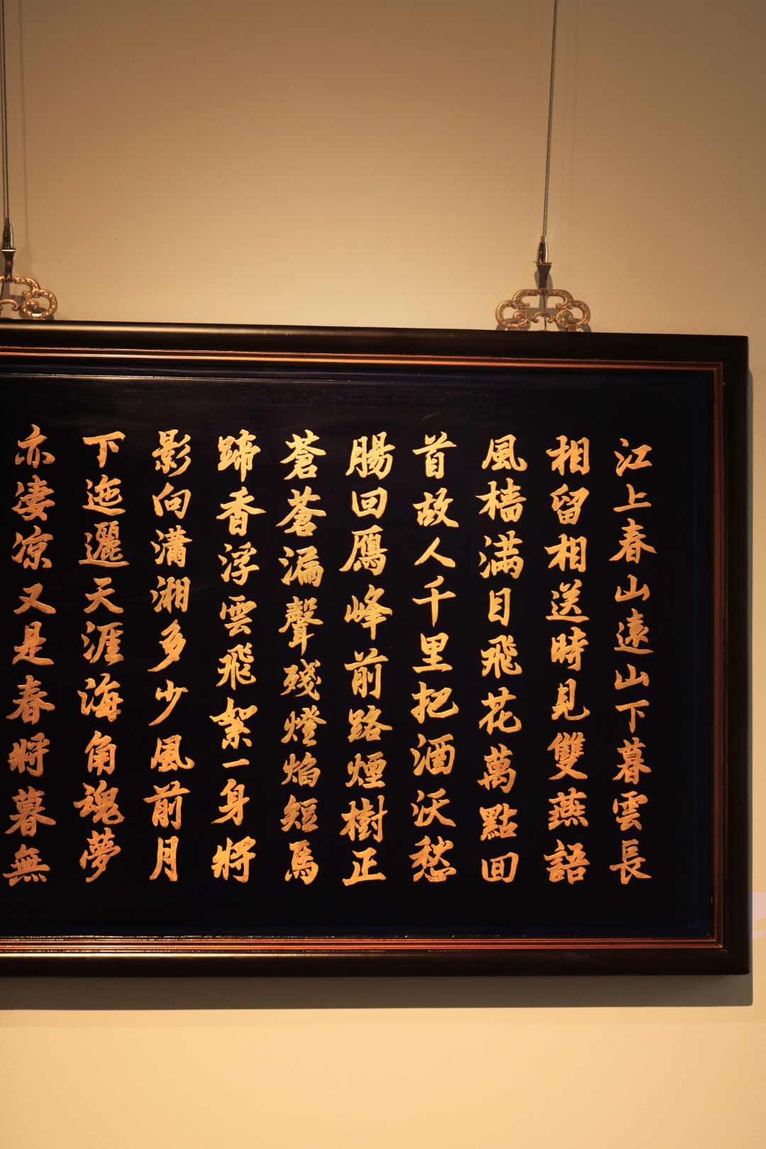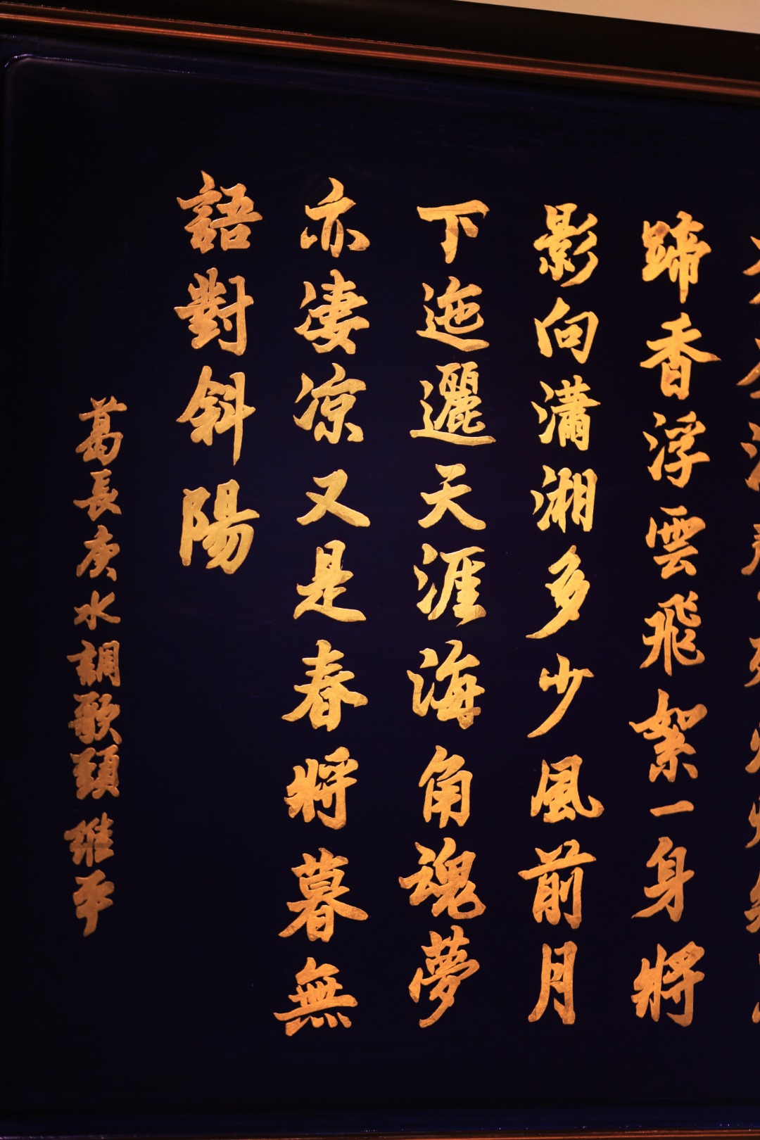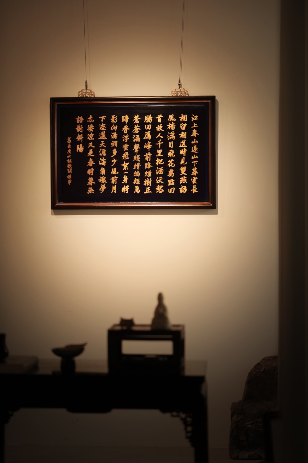 老物新作,工品兼备,皮壳老道,手刻方泽《武昌阻风》全文,并贴金箔,刻工流畅,禅意弥深,悬于文房茶室,足增诗画意境。