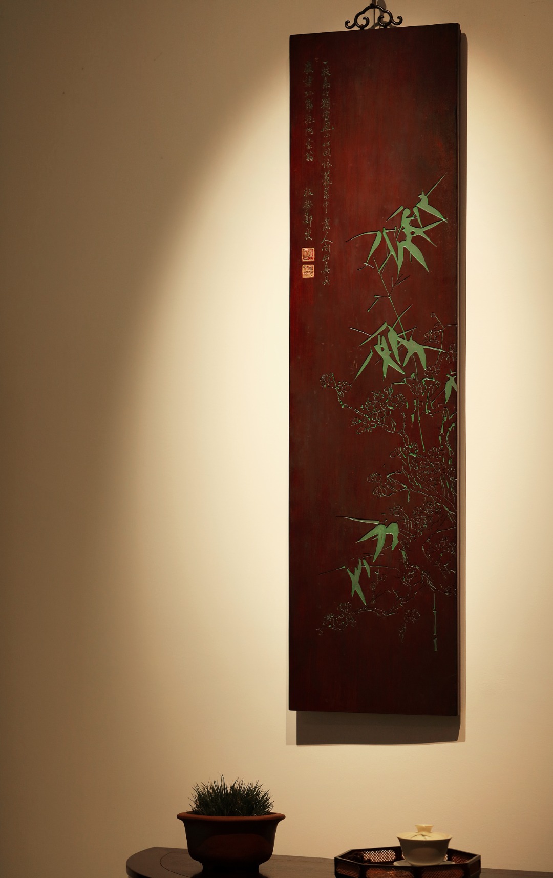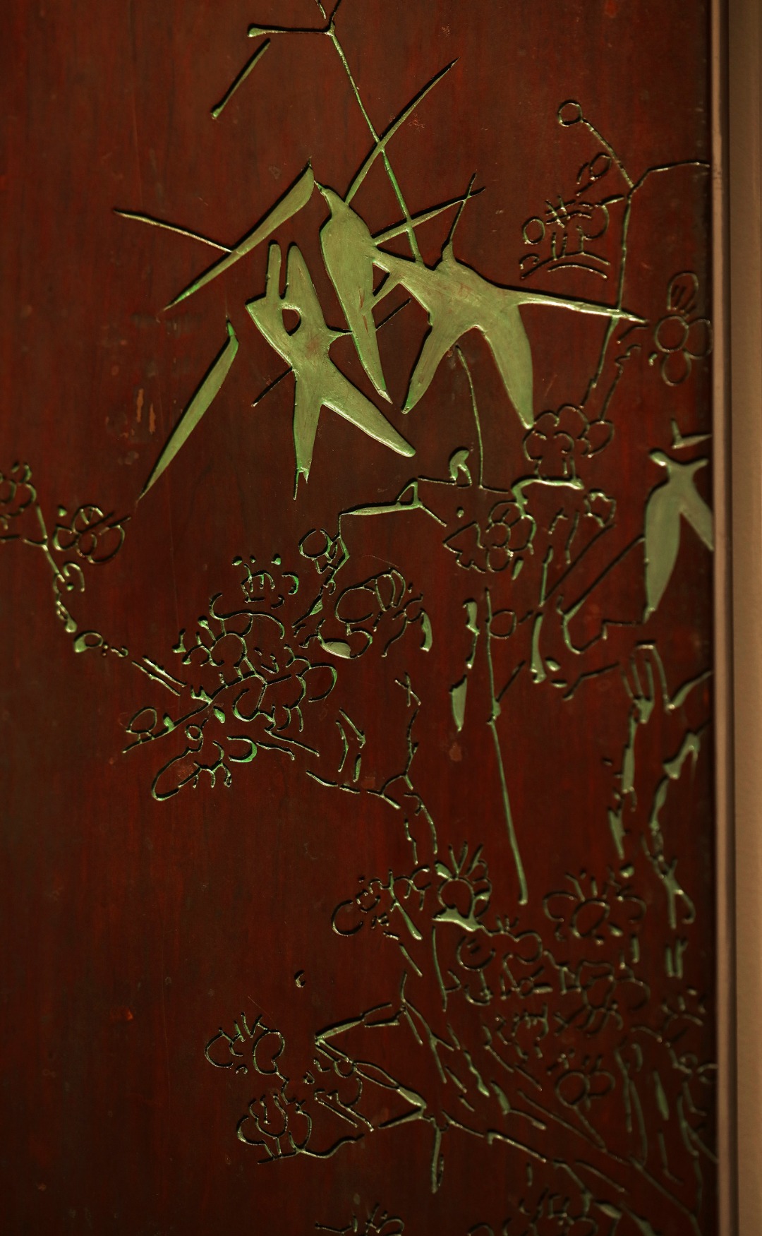 纯手绘刻画,后又真矿彩漆绘;