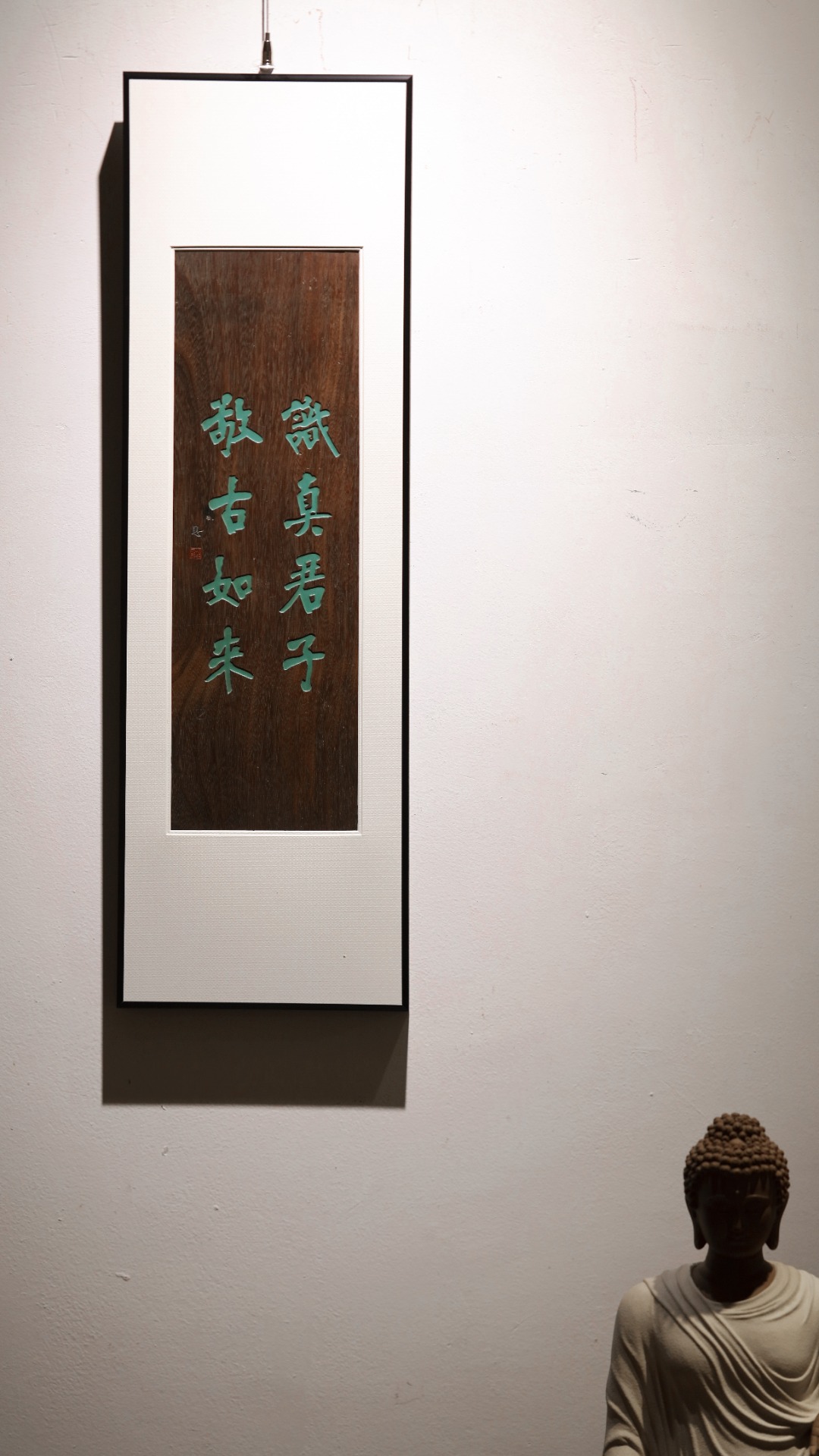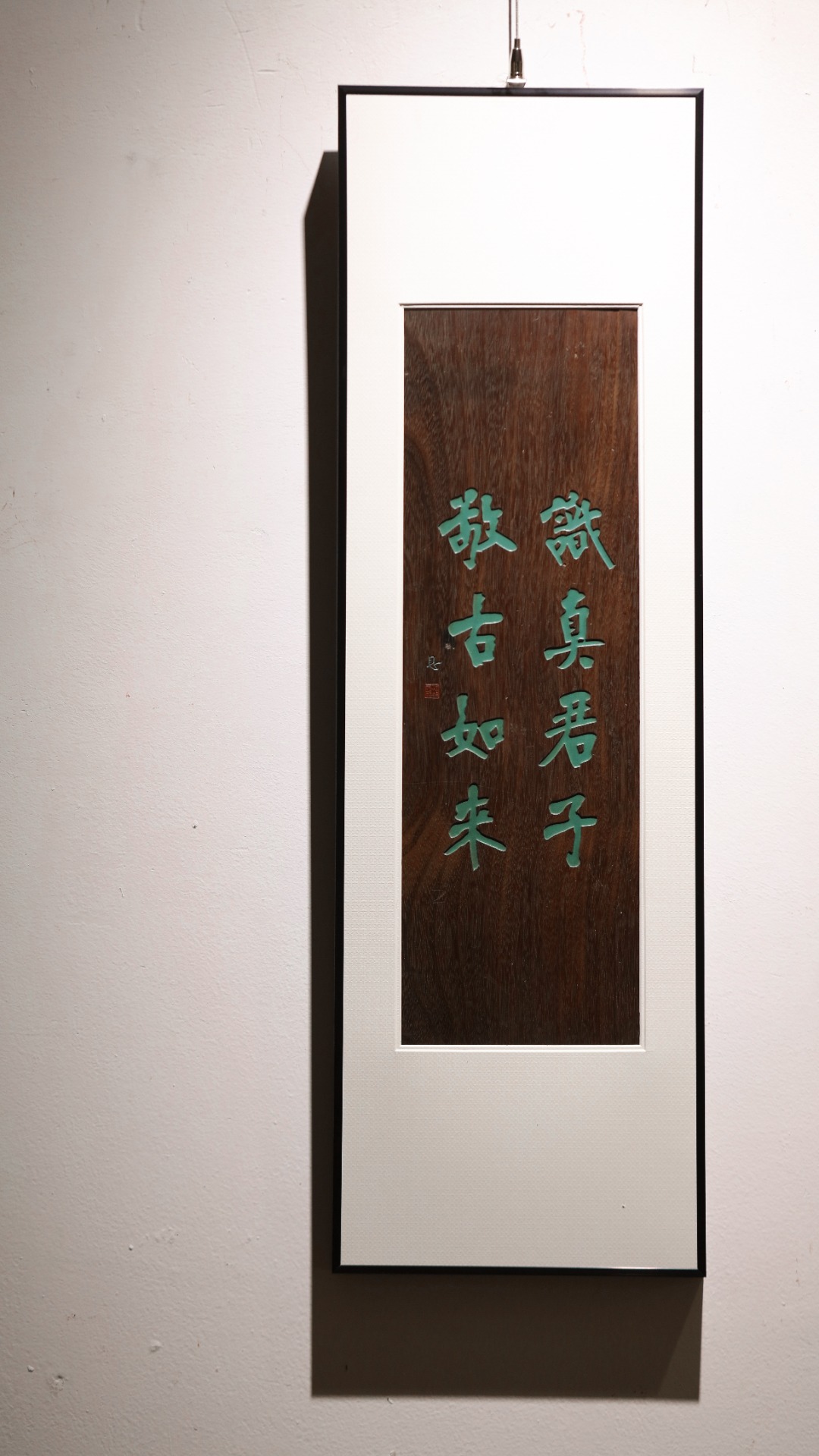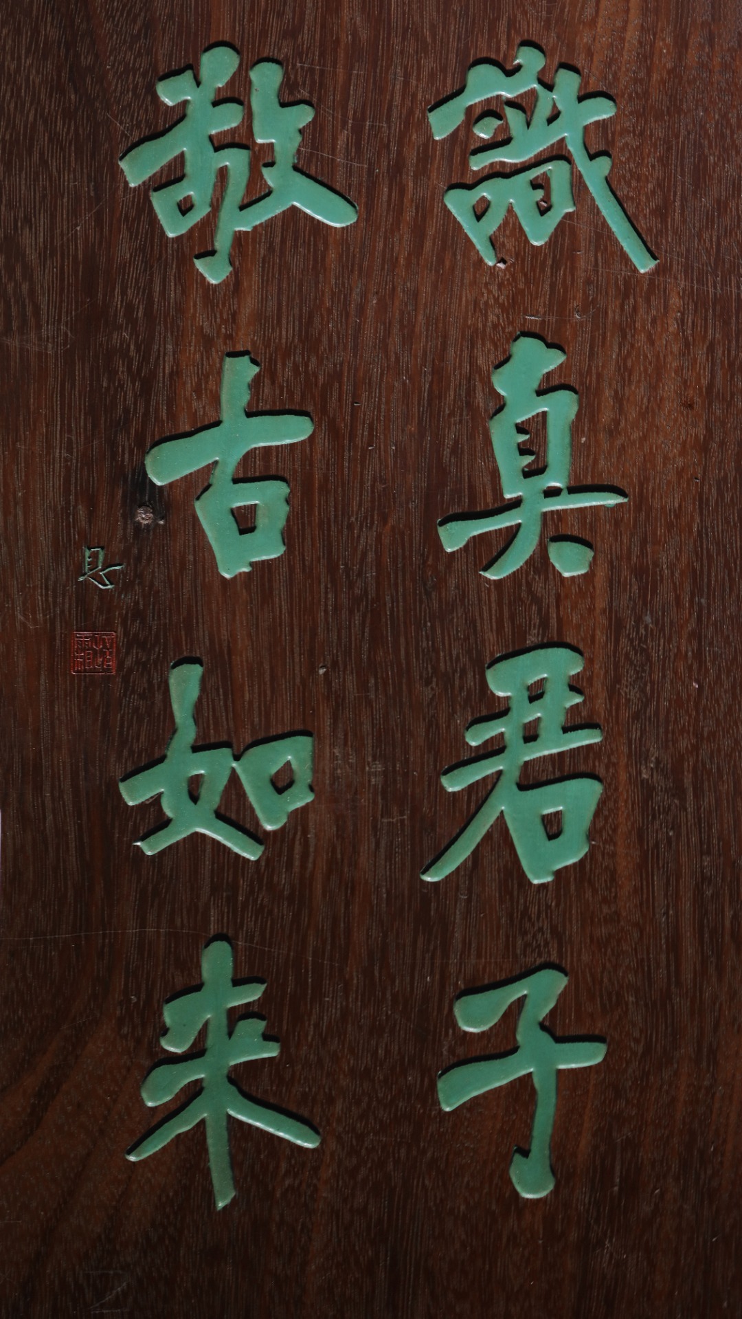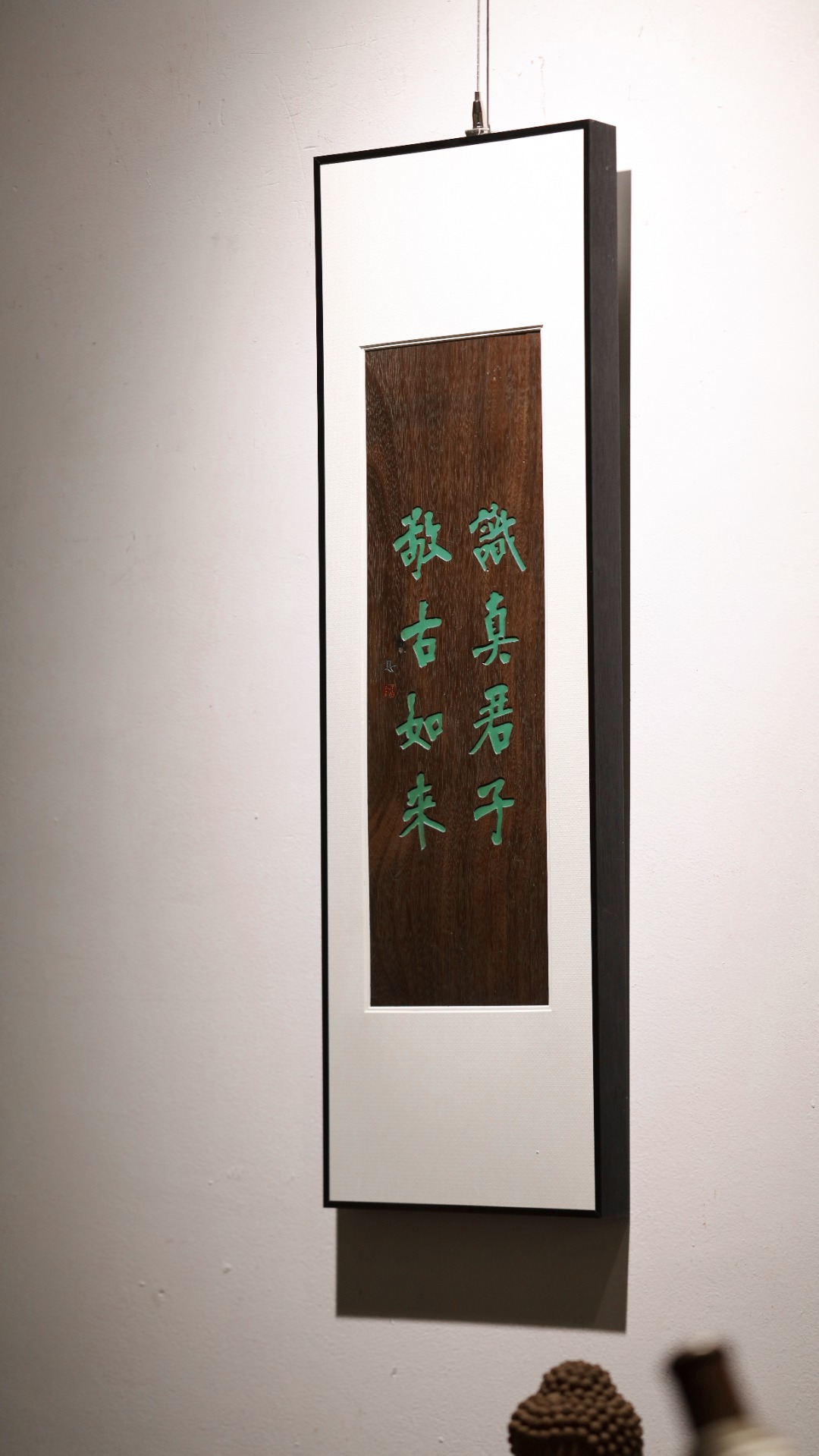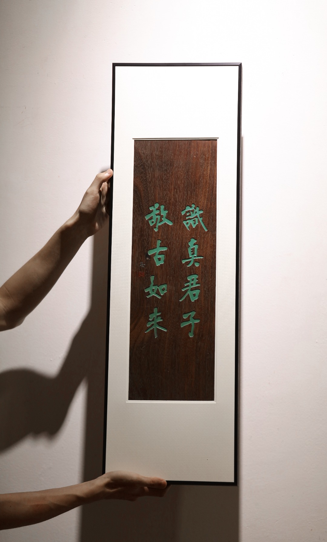 老物新作,铁力木包浆原皮壳料,手工刻画,大漆描绘,字体酣畅浑厚,苍劲有力,悬于厅堂,可添雅蕴。(附赠托片一份)