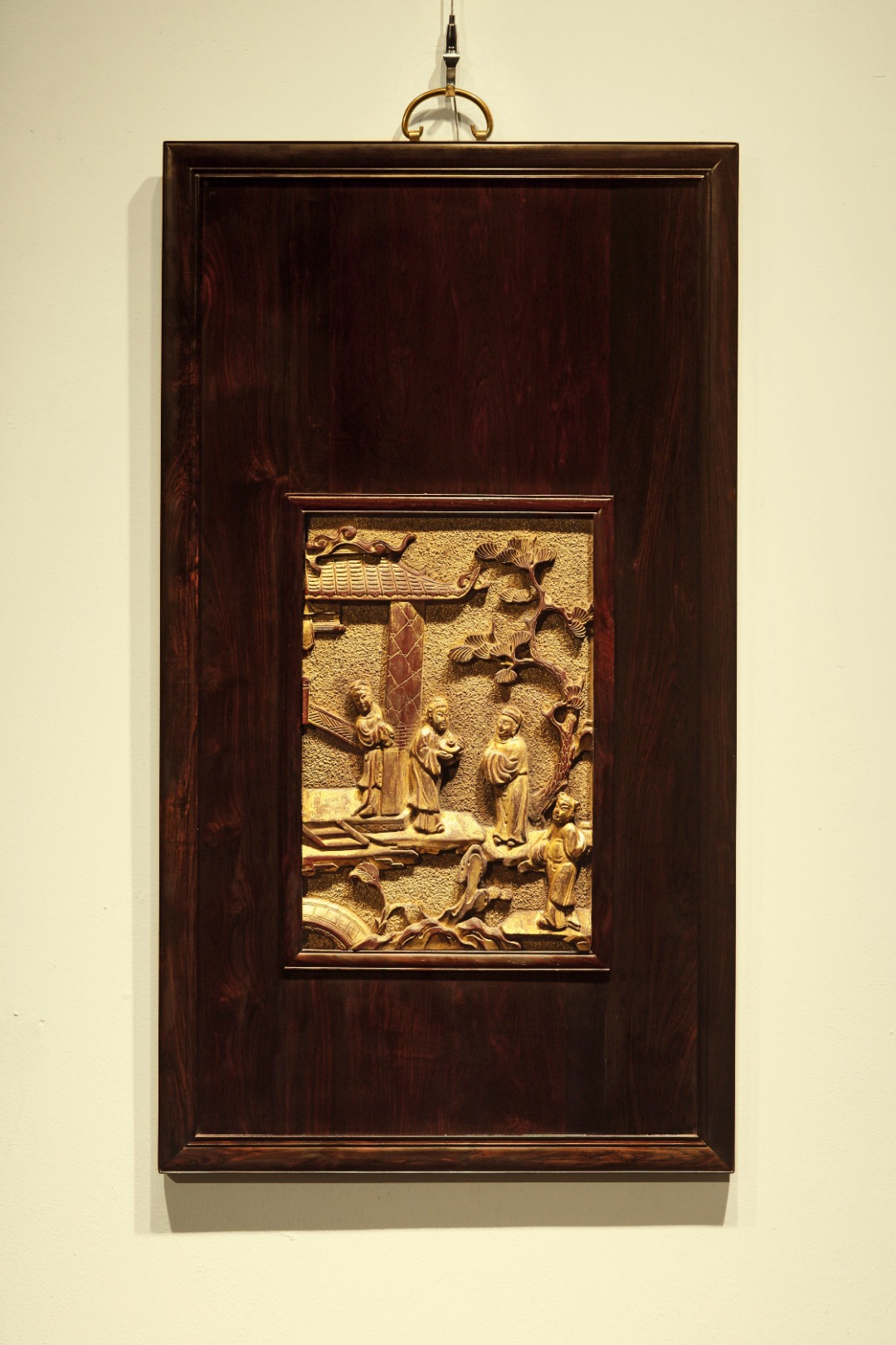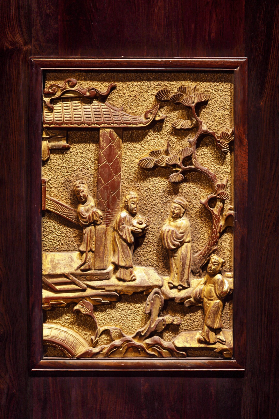 鎏金原漆皮壳,高浮雕“访友图”,