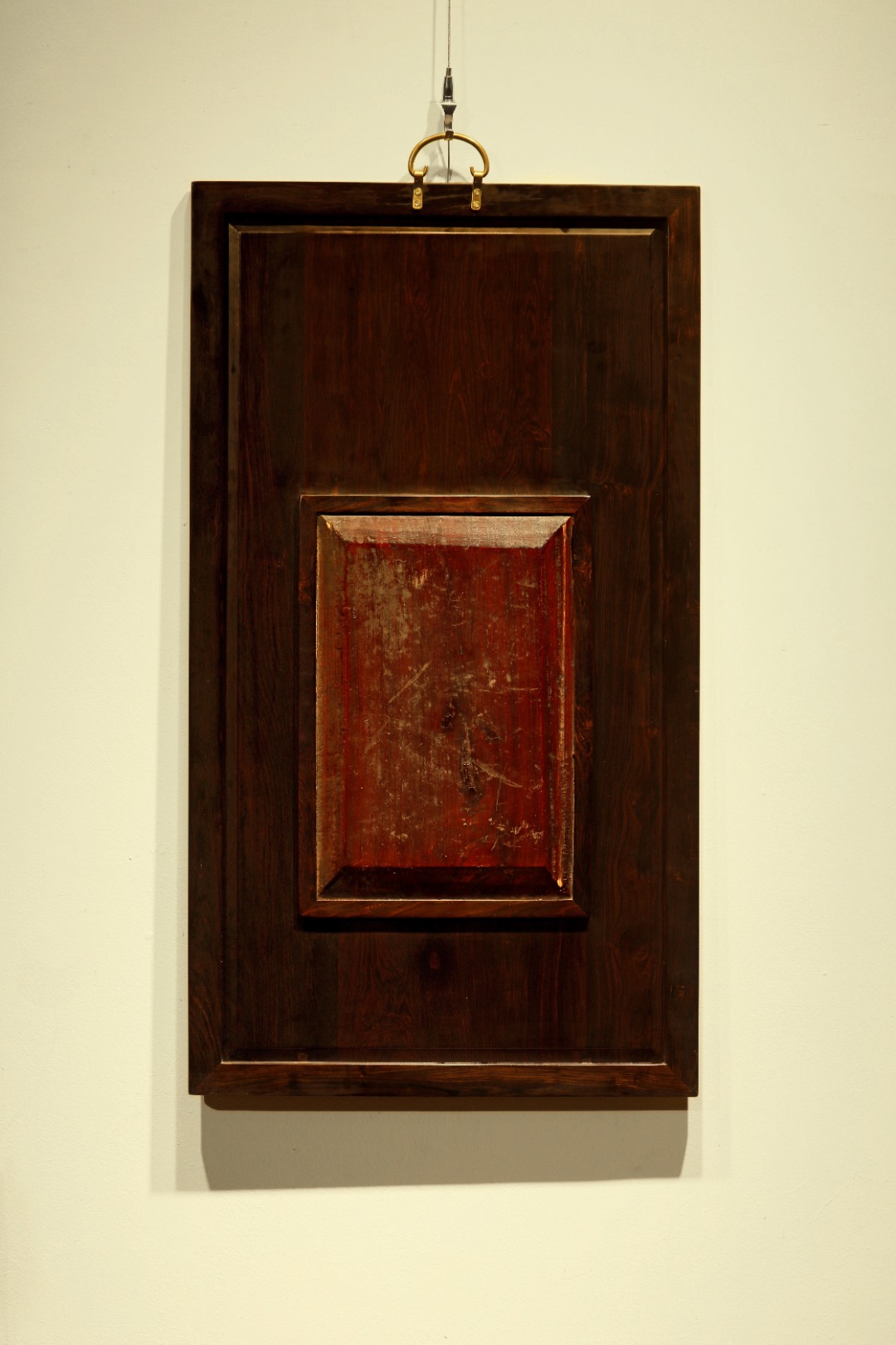 紫光檀攒框,屏心嵌清代老花板,