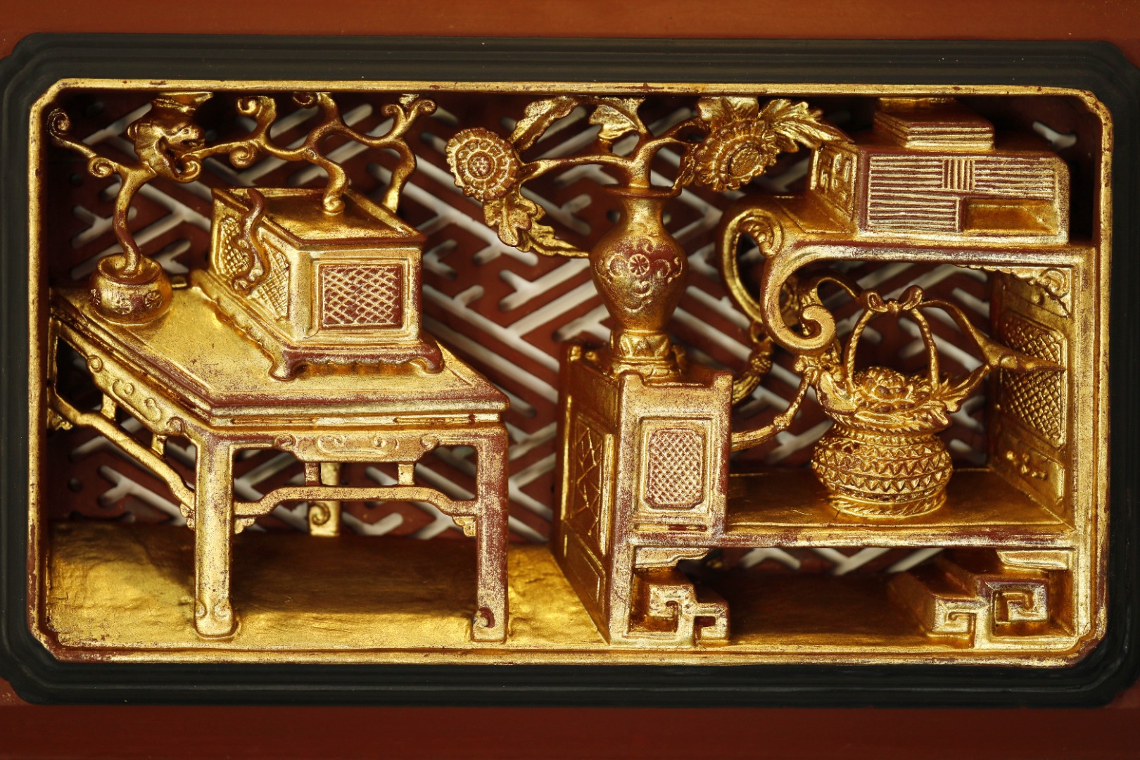 老楠木新工,深层镂空雕博古图,
