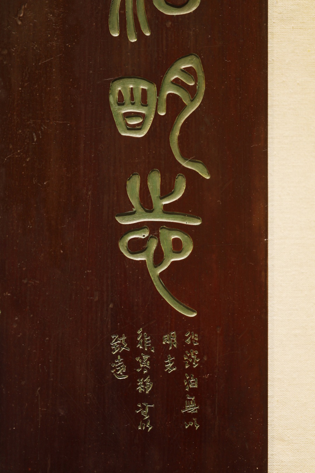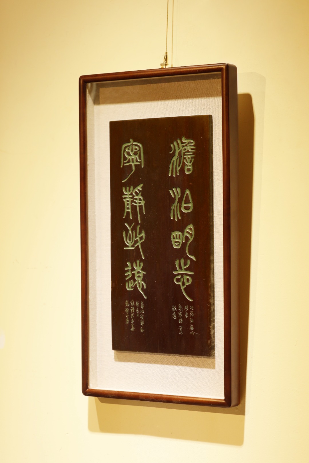 金箔漆描绘,原皮壳沉着古朴,悬于空间,