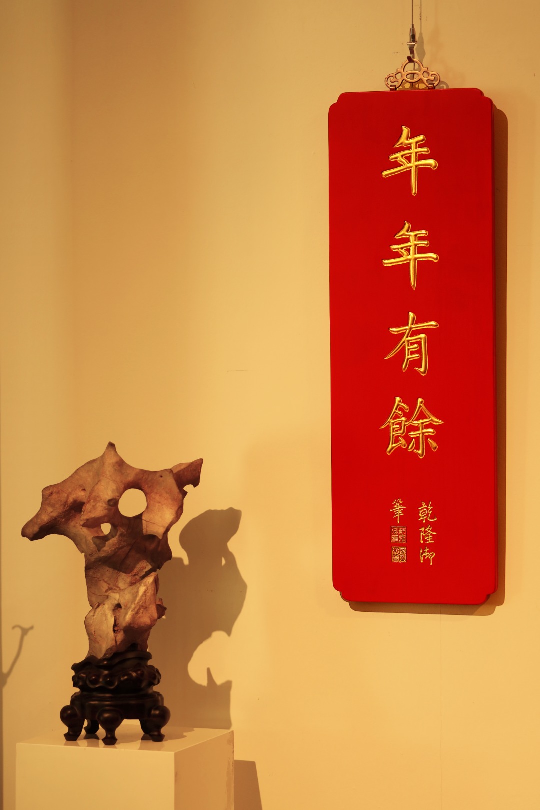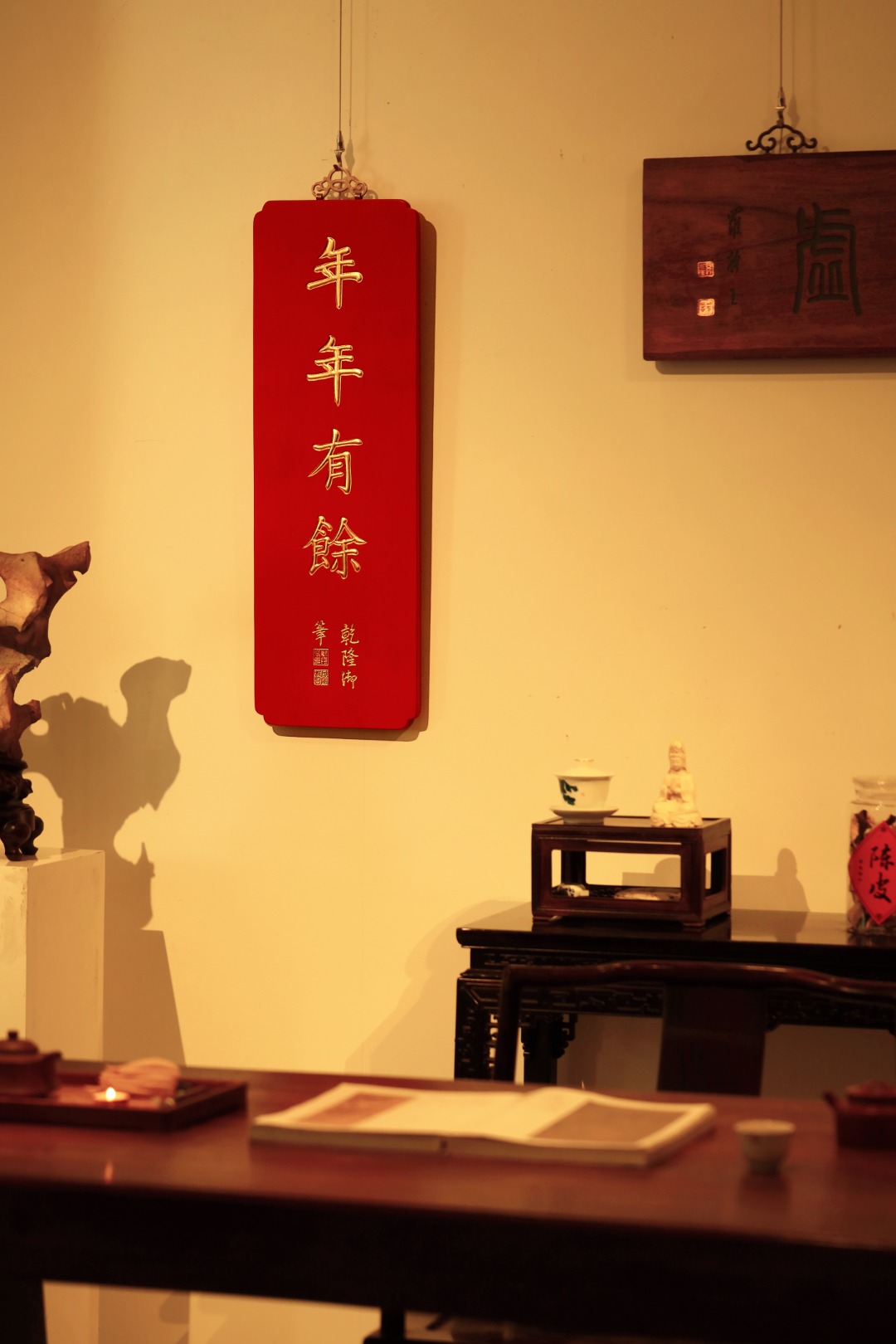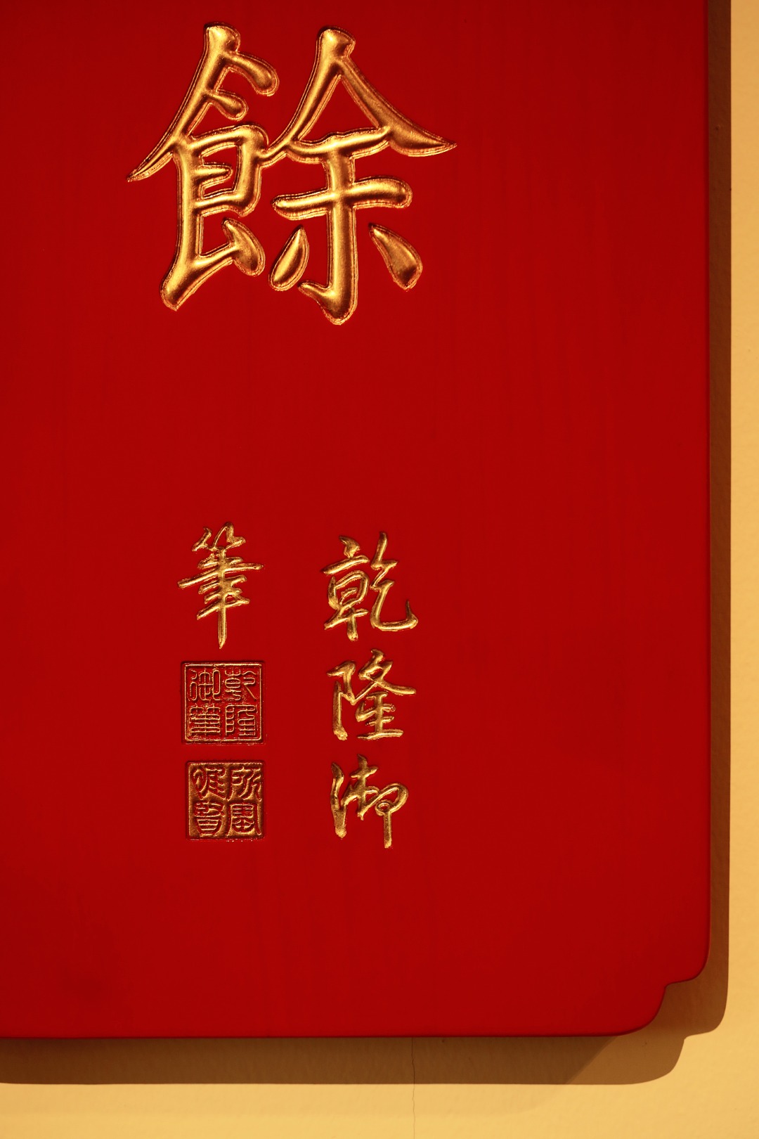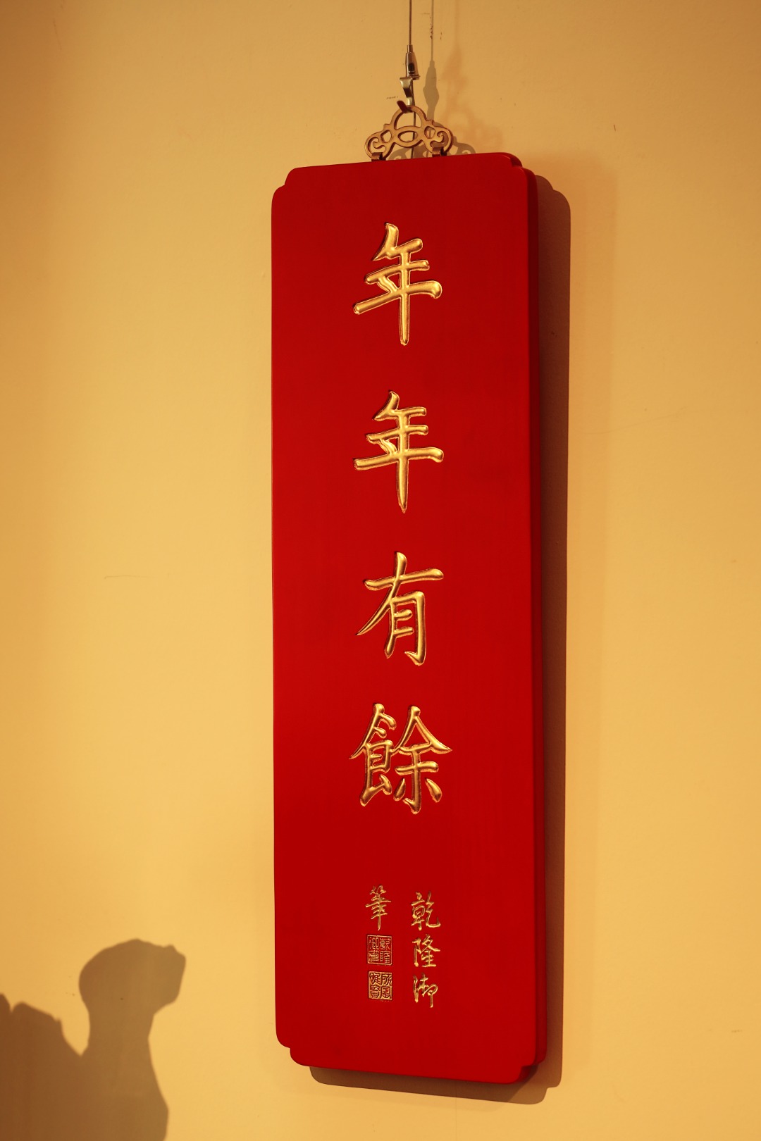 老楠木新做,形制典雅,面髹朱漆,后贴真金箔,悬于厅堂文房,精致有韵。