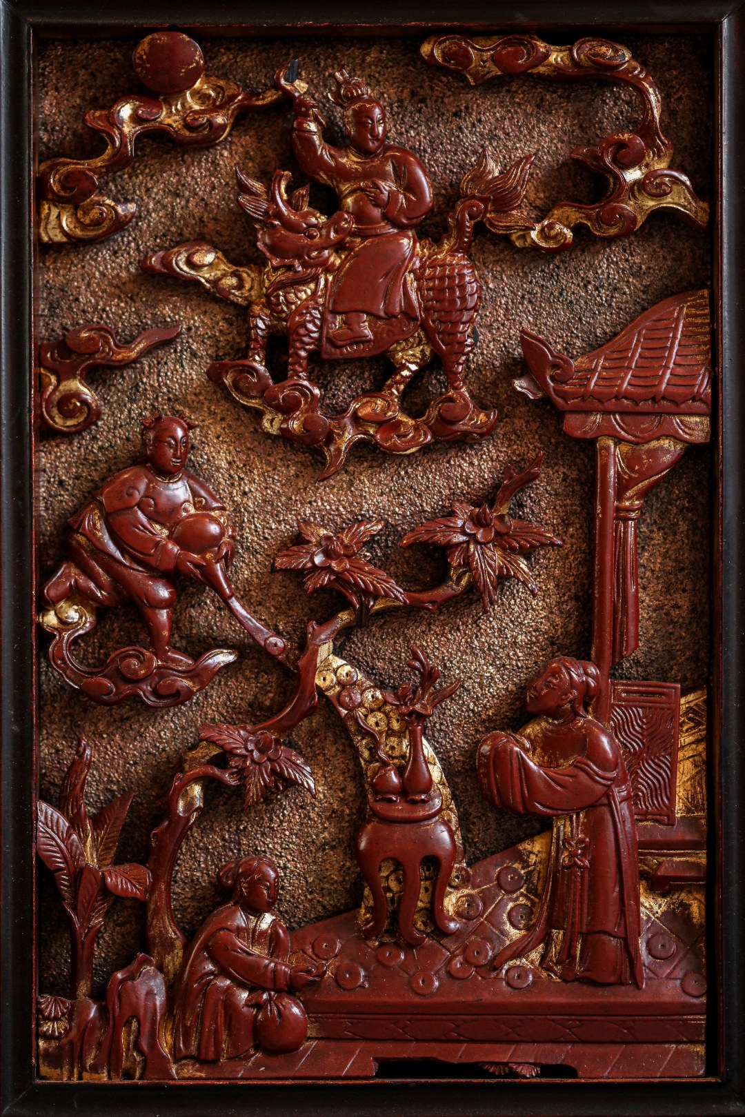 取材清代老家具拆件,技法精湛,皮壳熟日古朴,雕工通透灵动,图案优美不俗。悬于厅堂雅室,颇增古意。