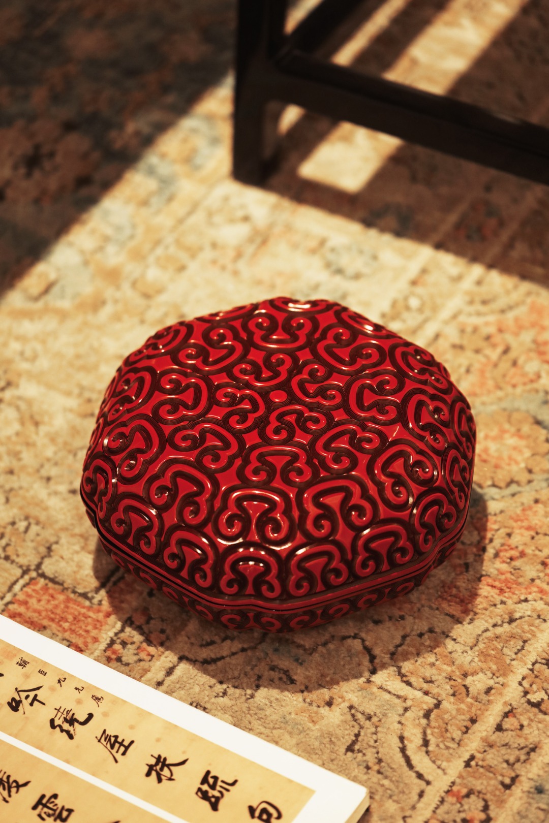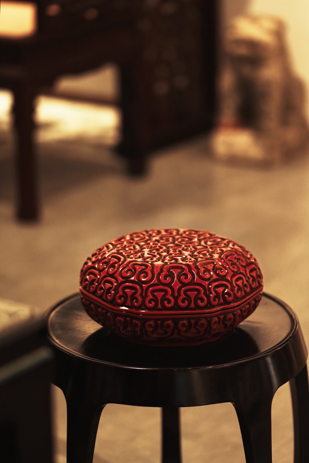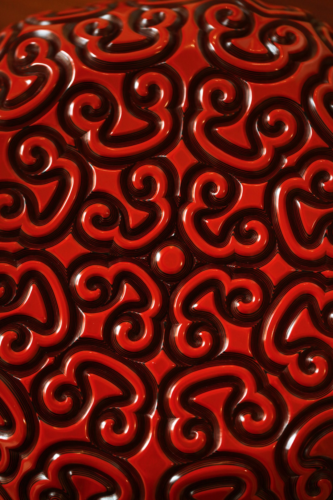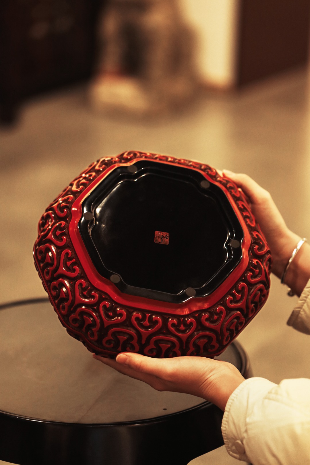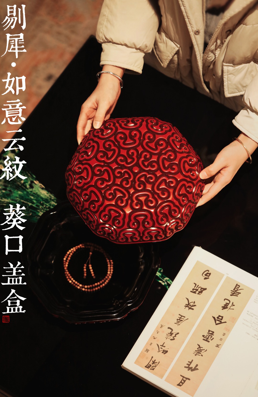 非遗手作,剔犀工艺复杂,工期漫长。层层漆纹大都以回旋生动、流转自如的云纹组成,又俗称“云雕”。主要分为制漆、制胎、灰胎、髹漆、绘图、剔刻、打磨、推光八大道工序,每道工序又可细分为若干小工序,历时数月之久。