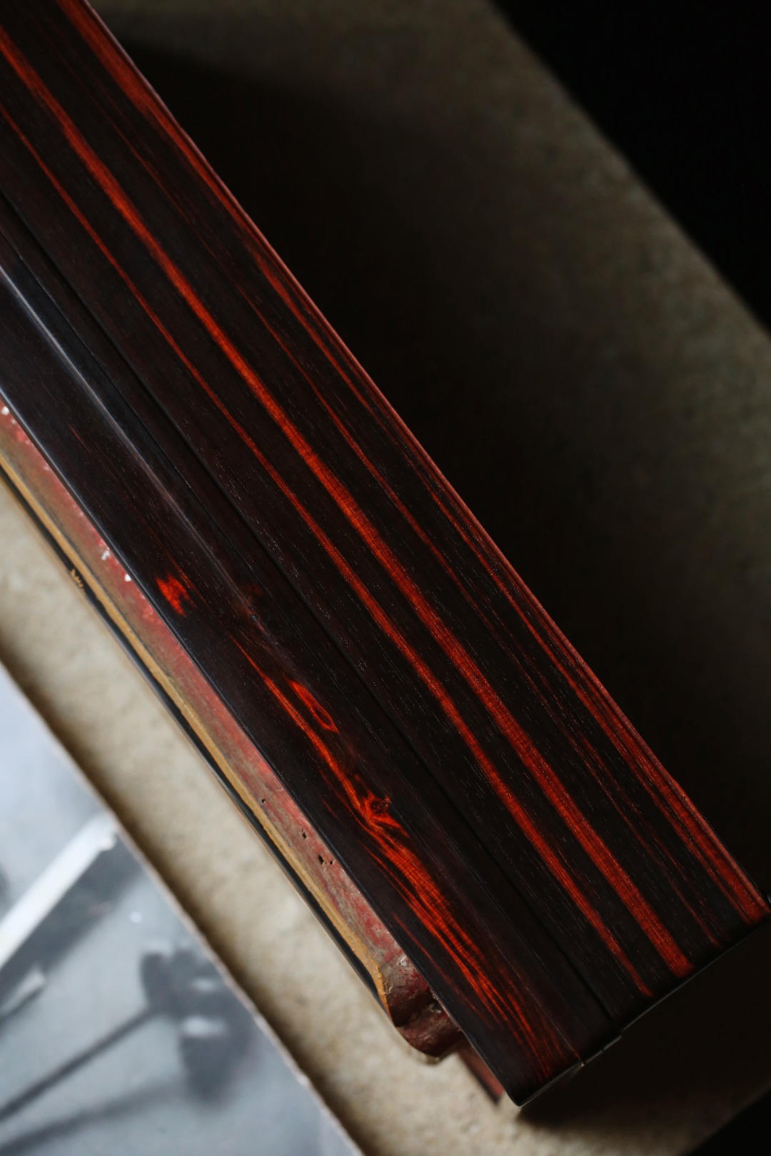 大红酸枝黑飘红老料,盒面镶嵌老花板,
