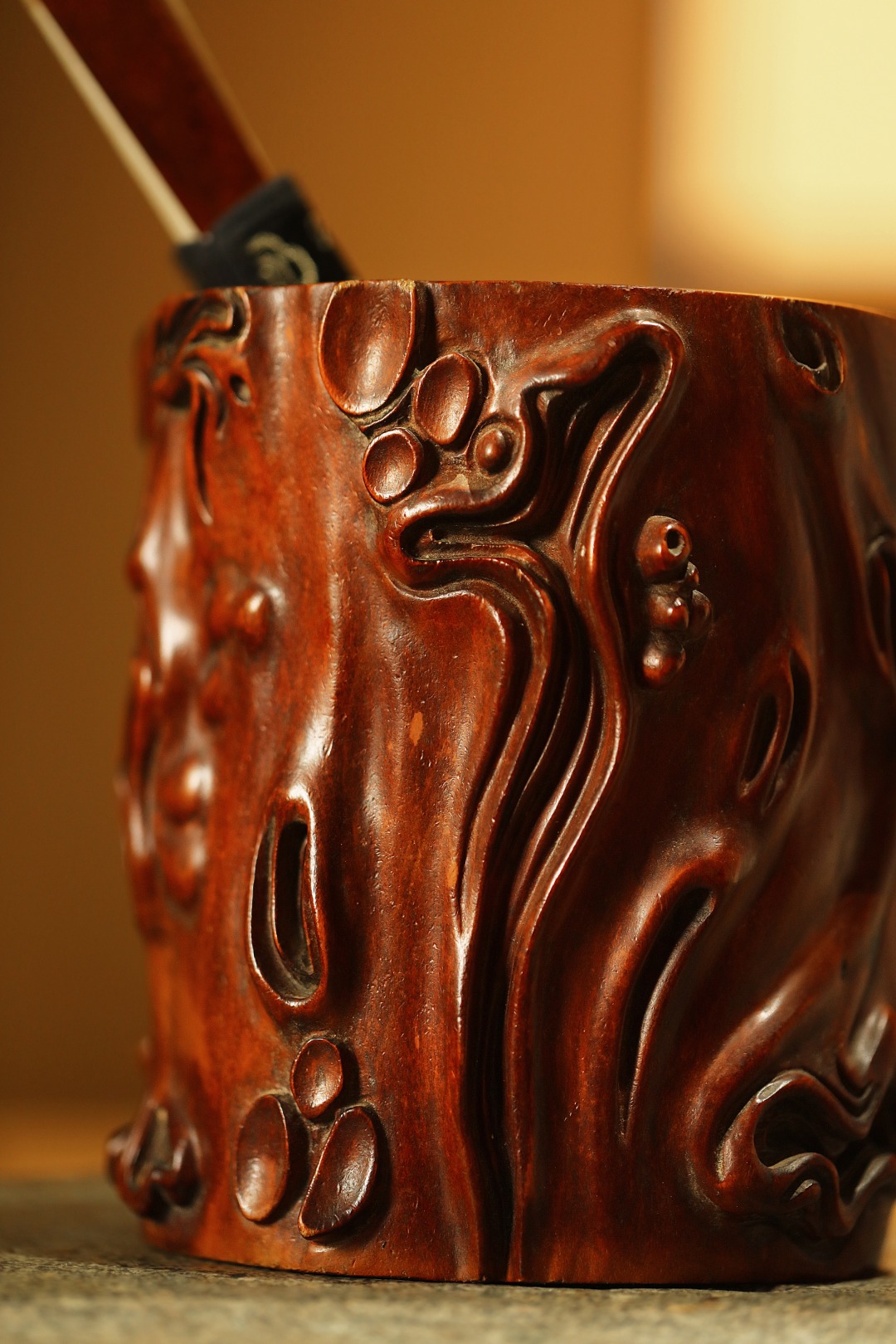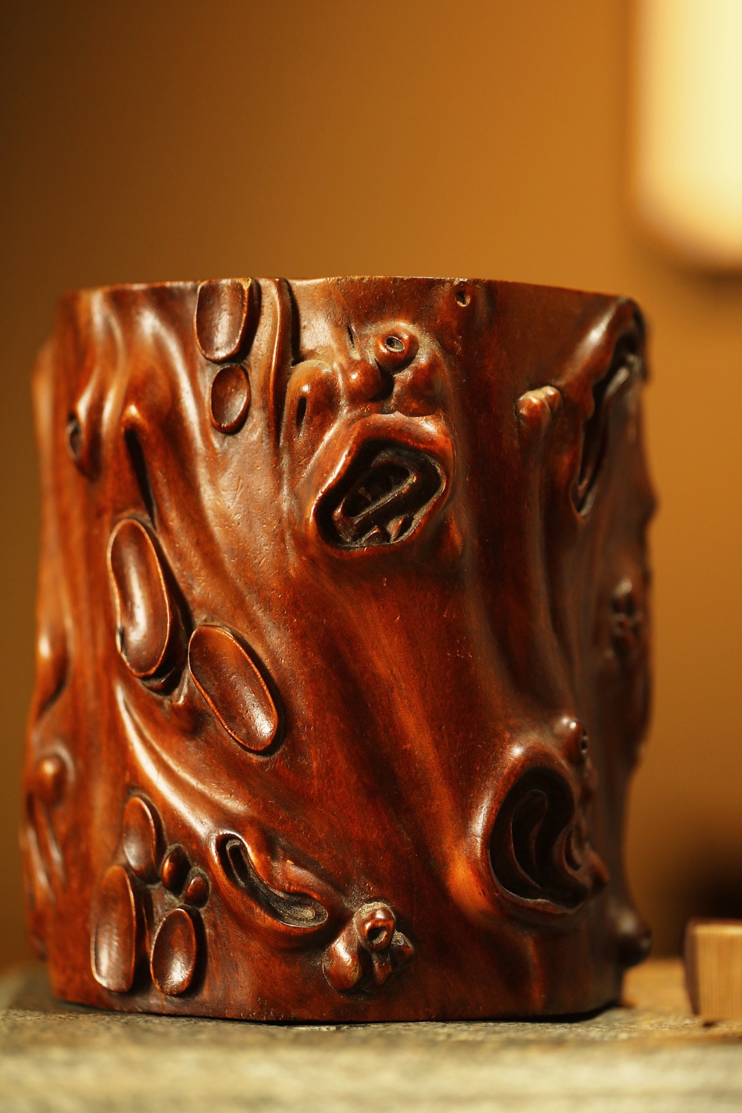 一木所制,手工修饰,行云流水、漩涡、鬼脸等图案,质地素朴素雅,意韵天然,纹理都是独一无二的,富有观赏实用价值,置文房案几,合文房雅趣。