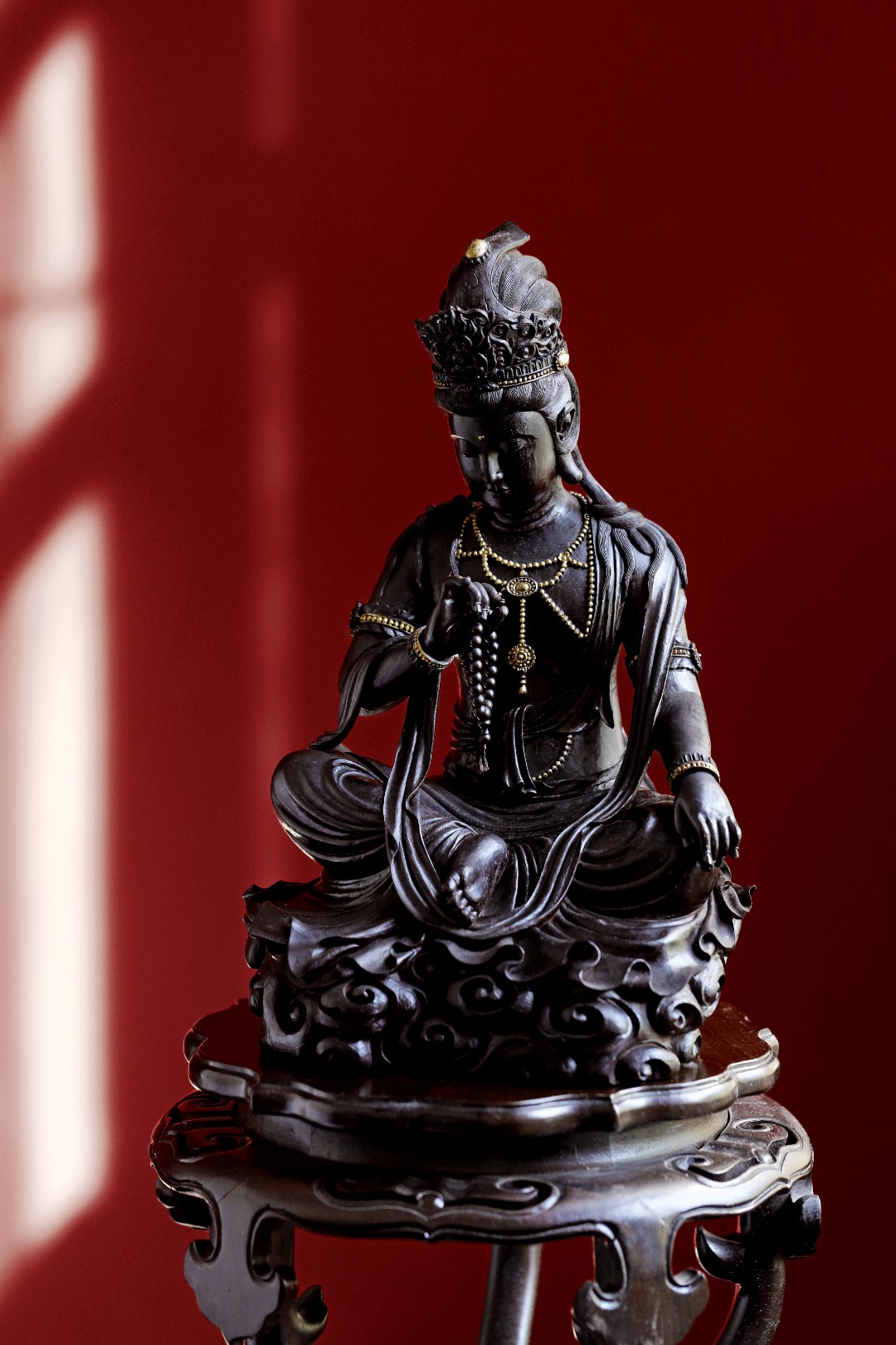 紫檀【持珠观音】摆件