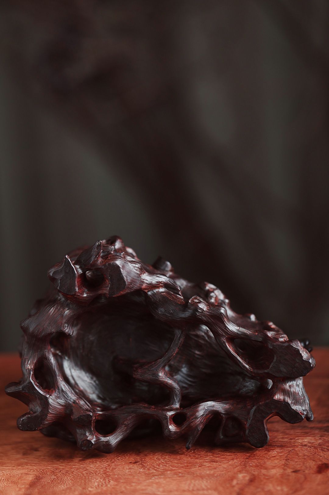 一木整雕,刀法细腻,镂空雕琢,