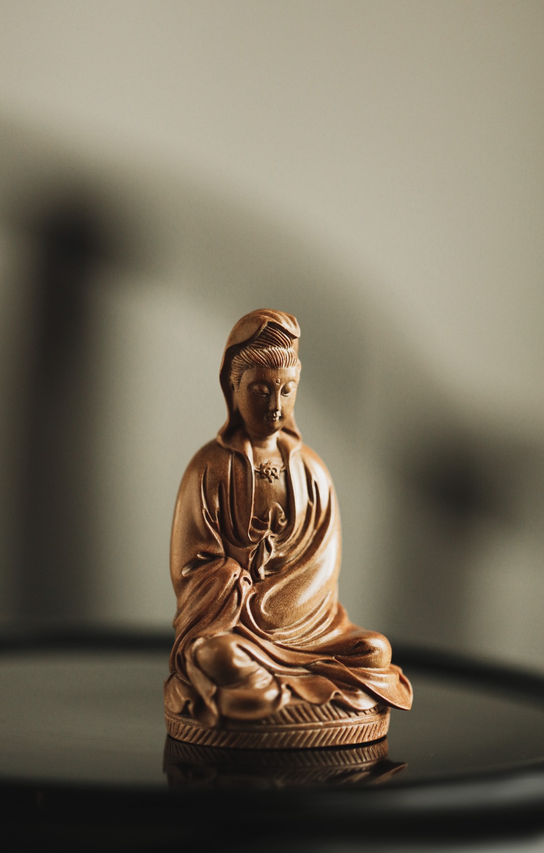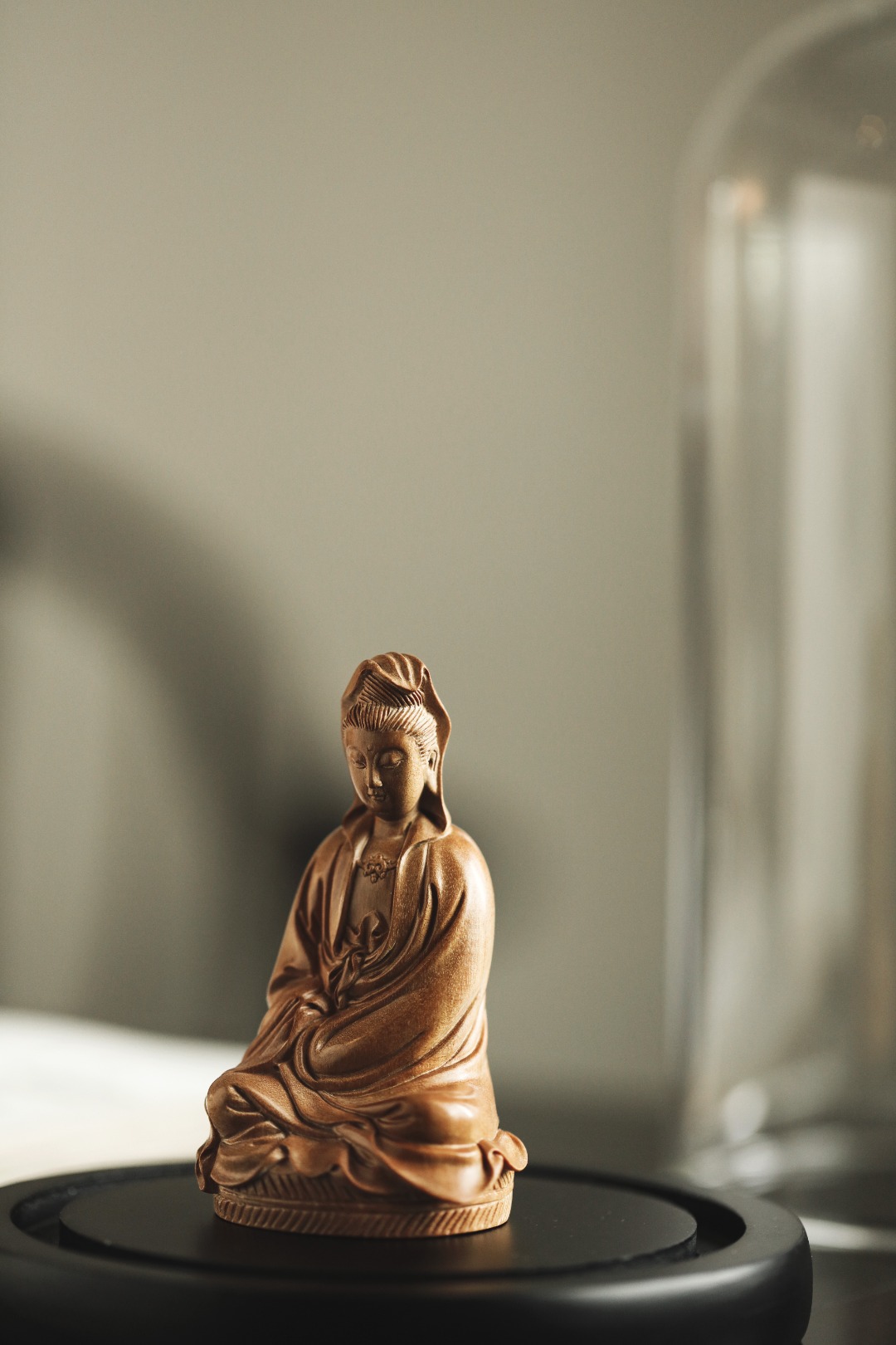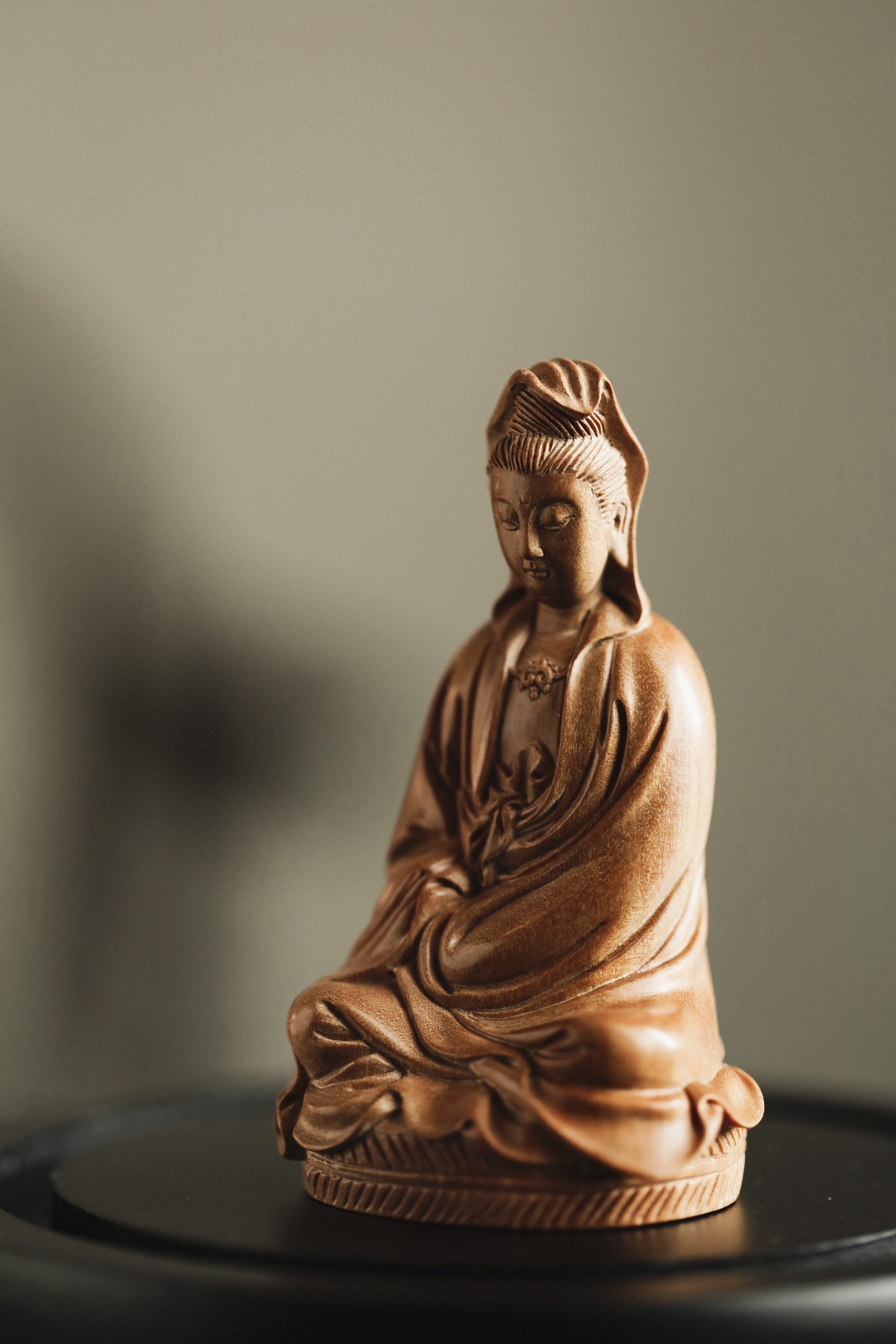 择取老料,油足香馥,雕工细致微妙,形神兼备。观音神情自在恬然,有似天成,心上无事,一切如意。