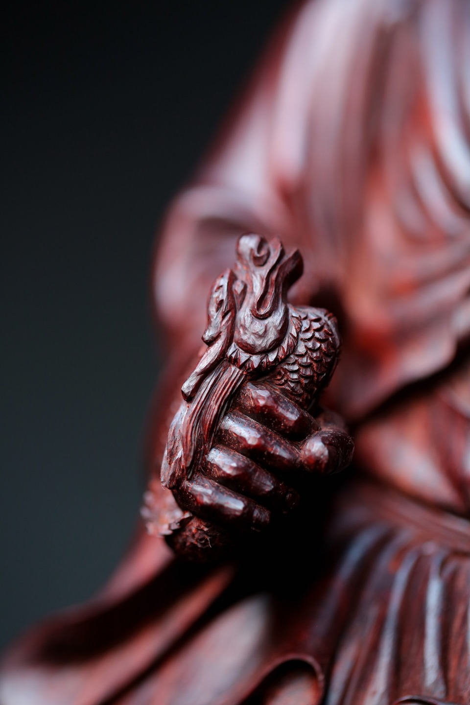 右手擒龙头,左手持宝珠,