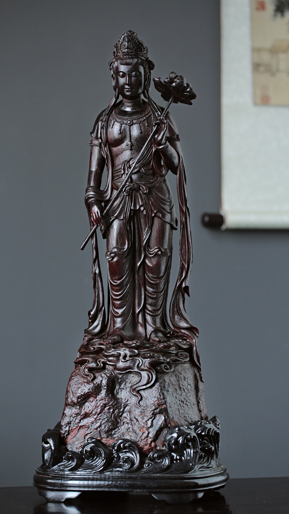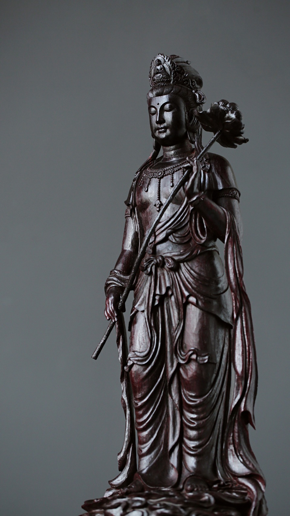 持莲观音,持一茎之莲,驾着祥云缓缓而来,指点众生,化解苦难,带给人间真善美。