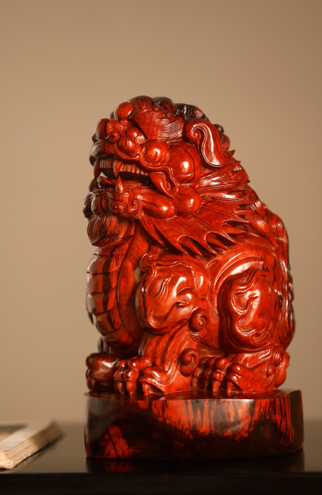 择紫檀实心大料雕刻,百兽之王,姿态威严,灵气十足,置案头添生趣,增古韵,显吉祥。