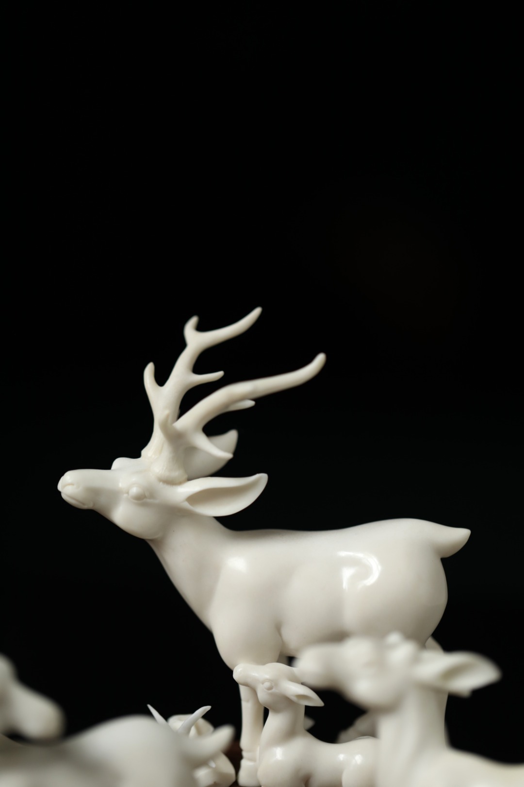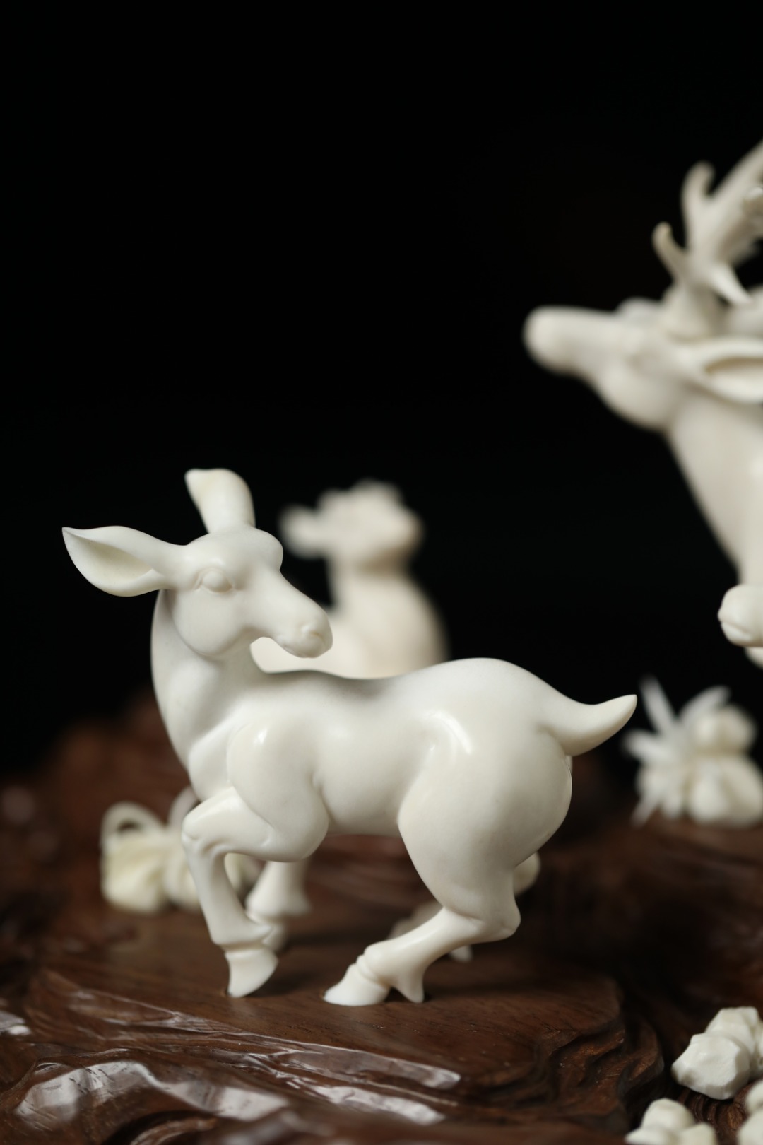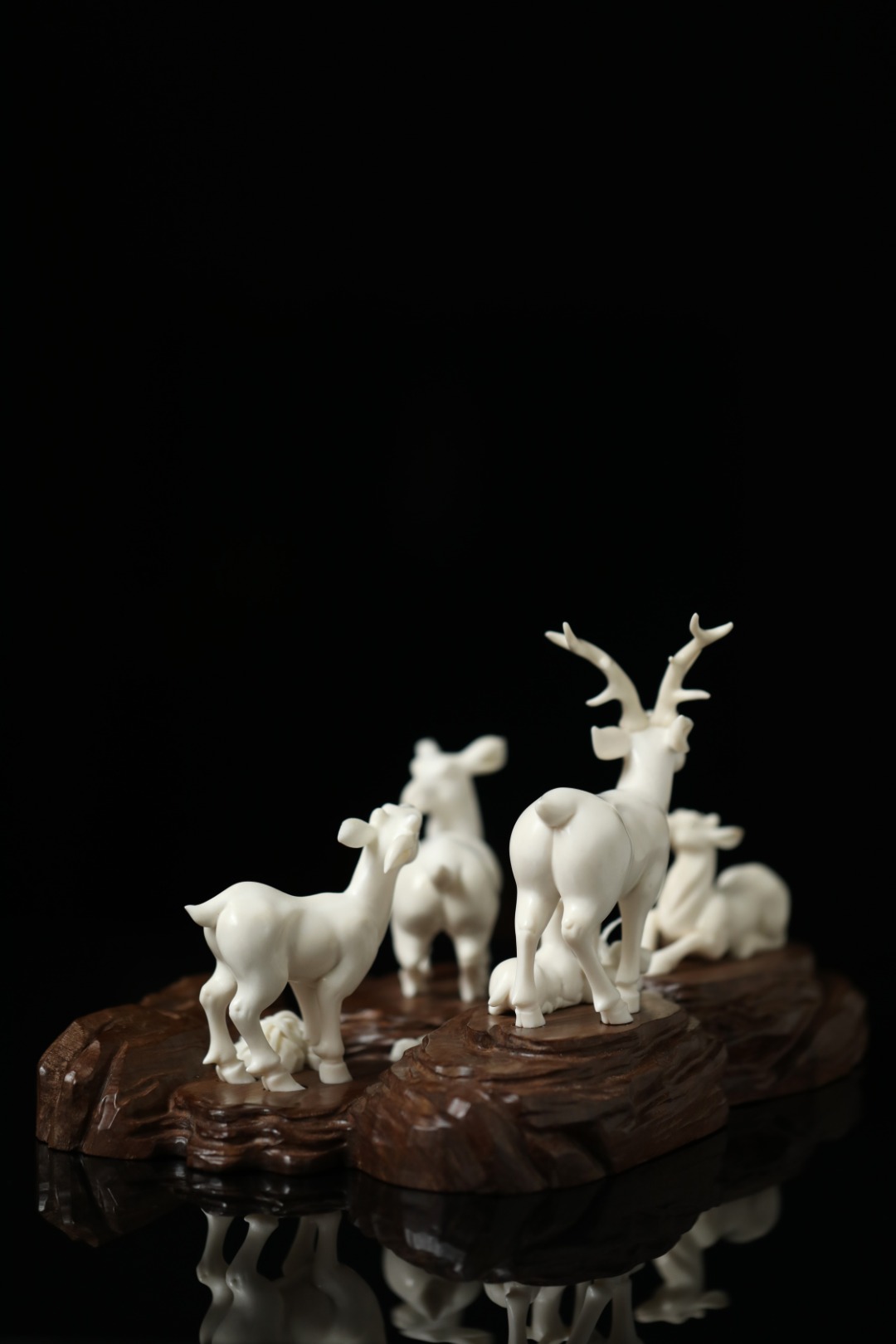 手工雕成,以鹿缀景,静中有动,栩栩如生,