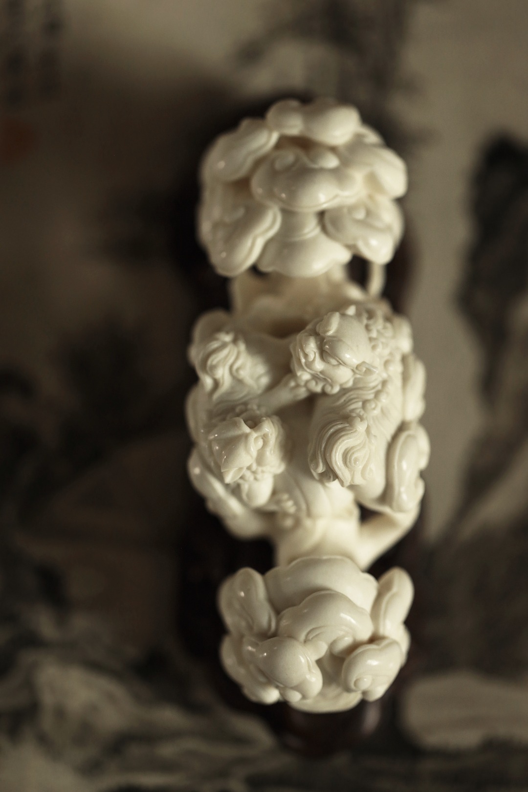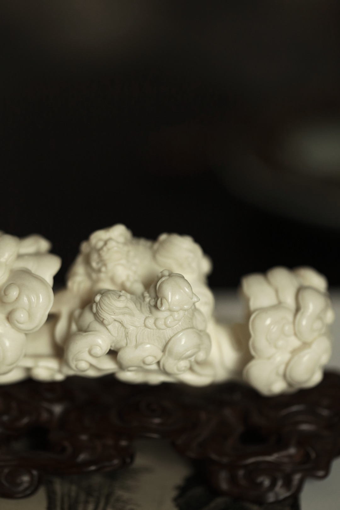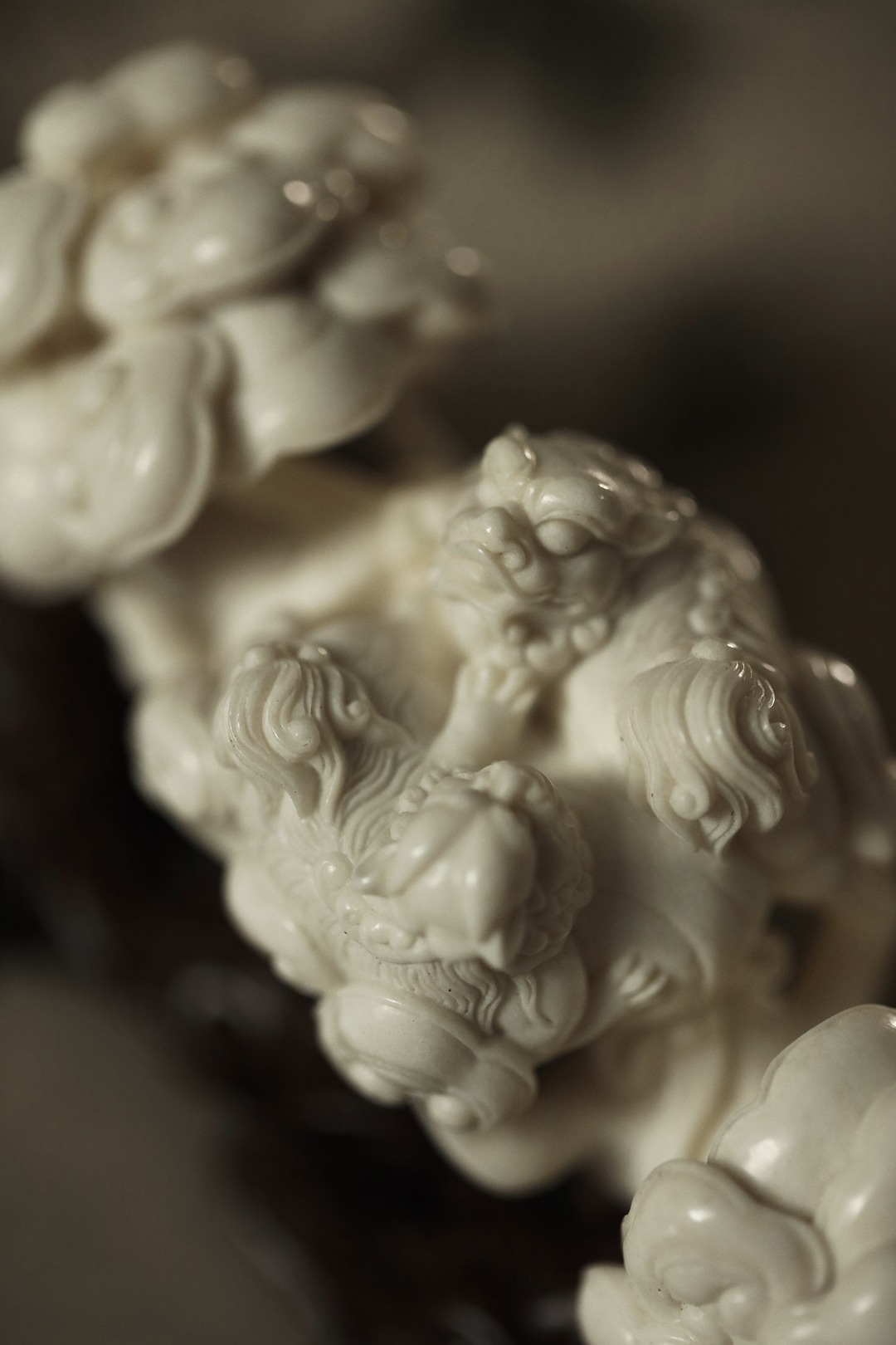 择料清润凝滑,雕工细腻,瑞狮灵动跃然。