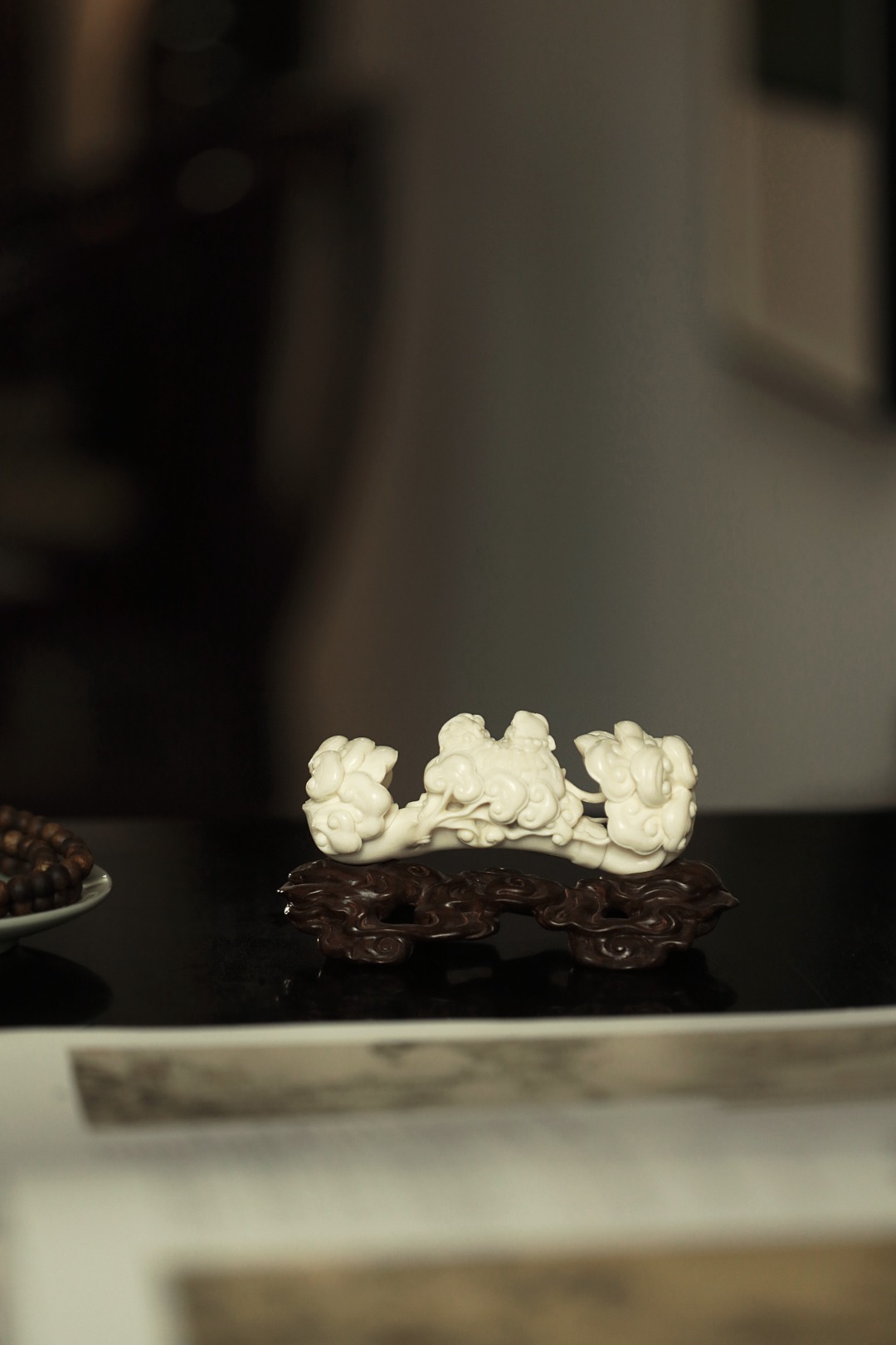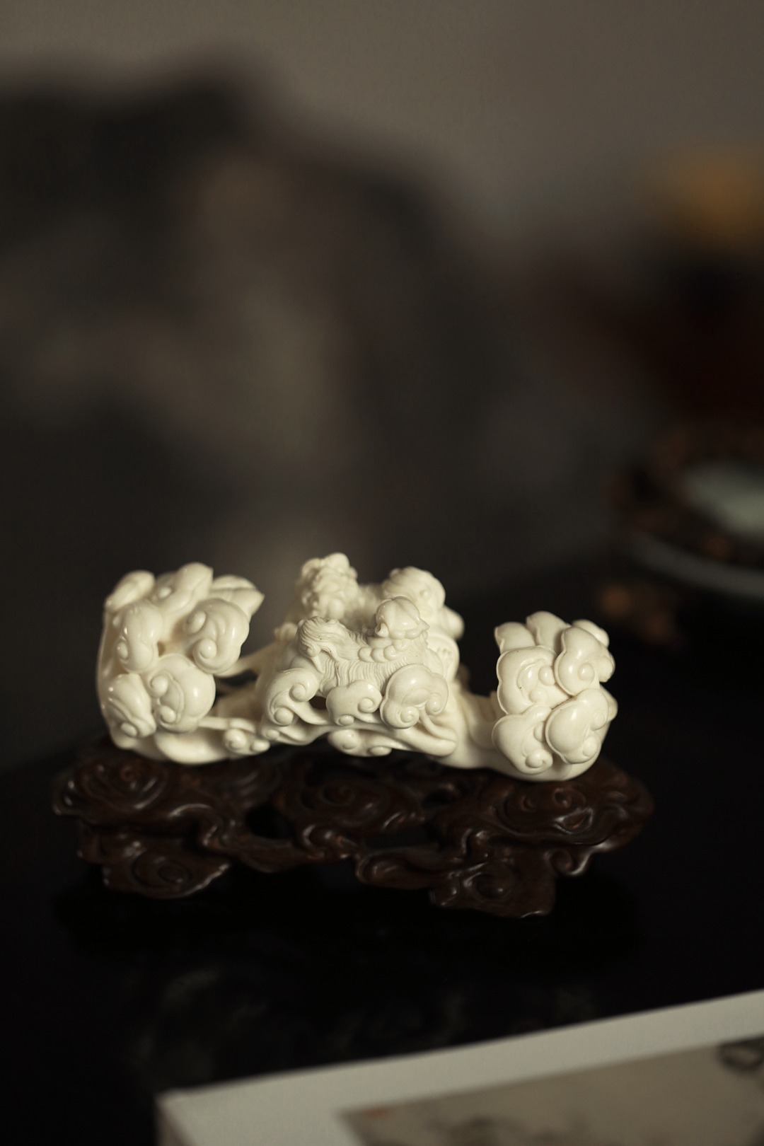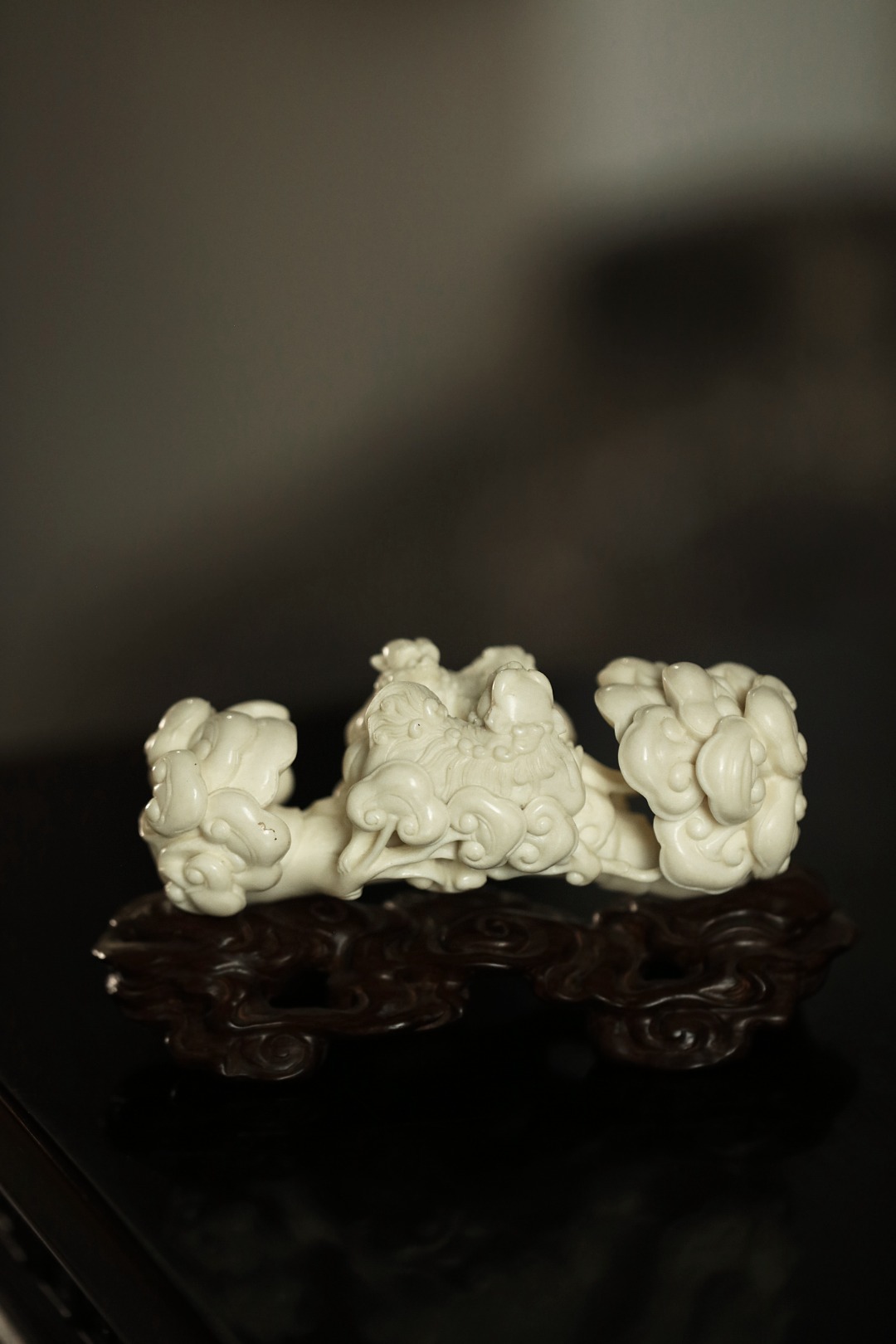 择料清润凝滑,雕工细腻,瑞狮灵动跃然。