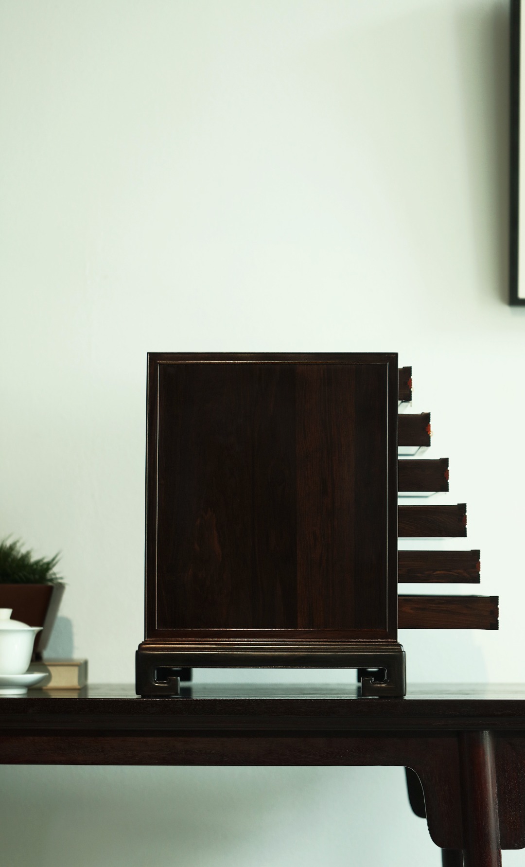 纯榫卯结构,步步严谨,器韵简约通透,藏纳茗香。