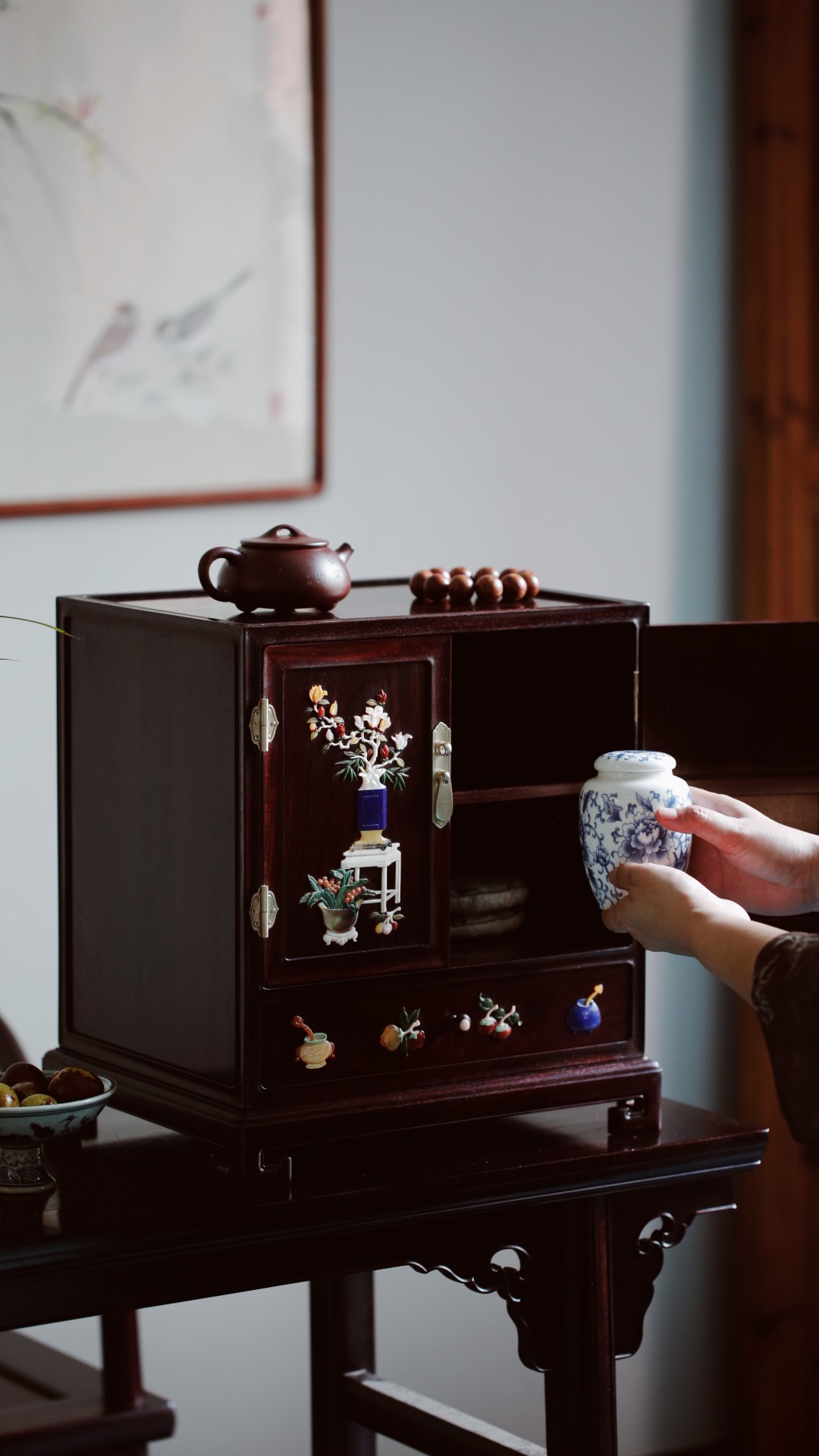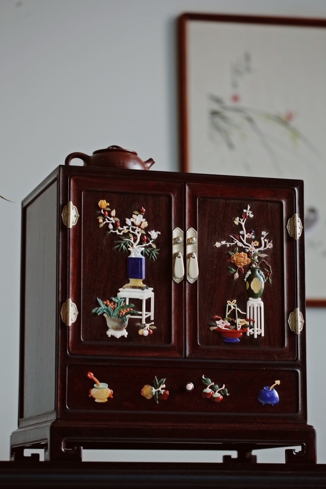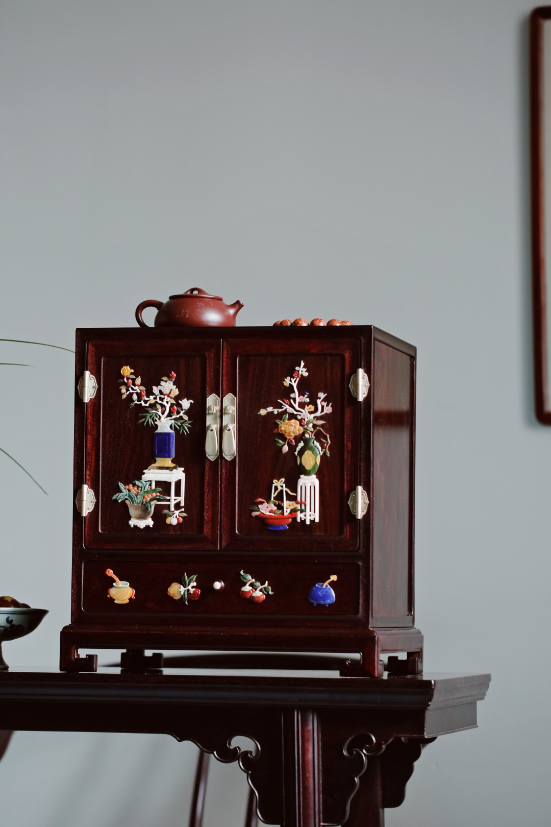 茶柜形制比例端庄,设计布局自然,