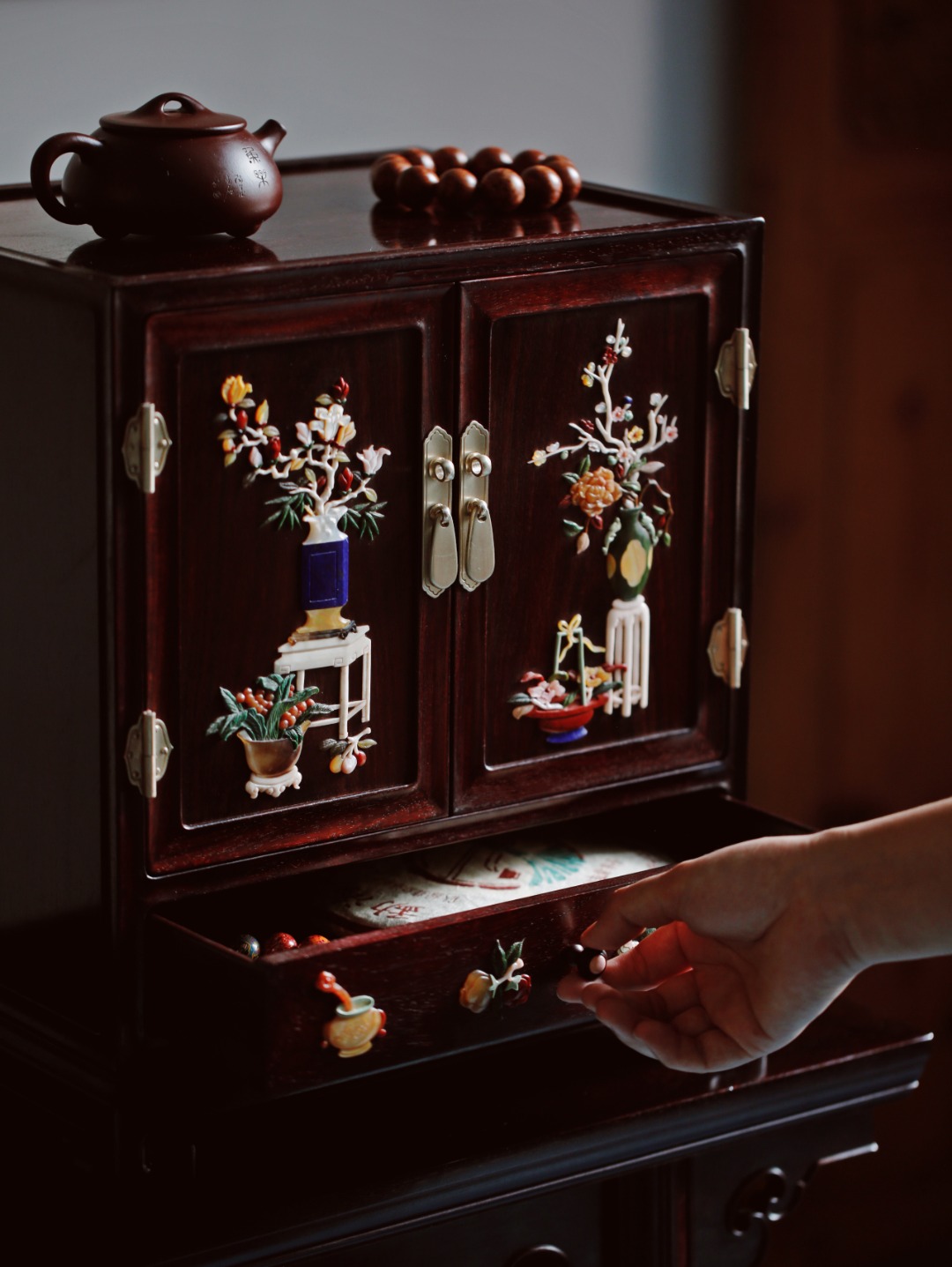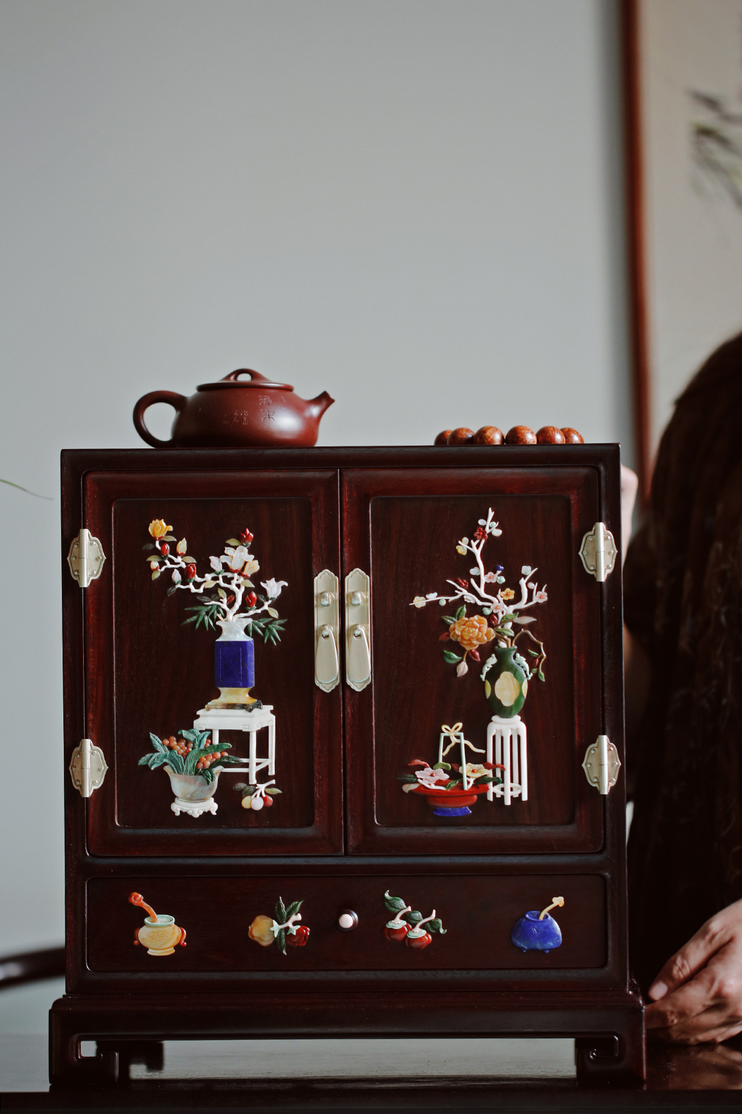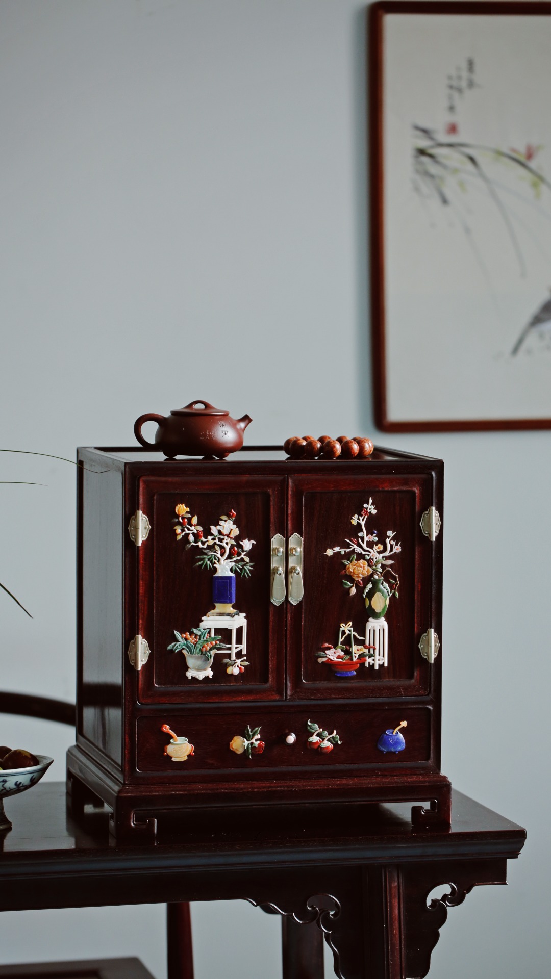 茶柜形制比例端庄,设计布局自然,