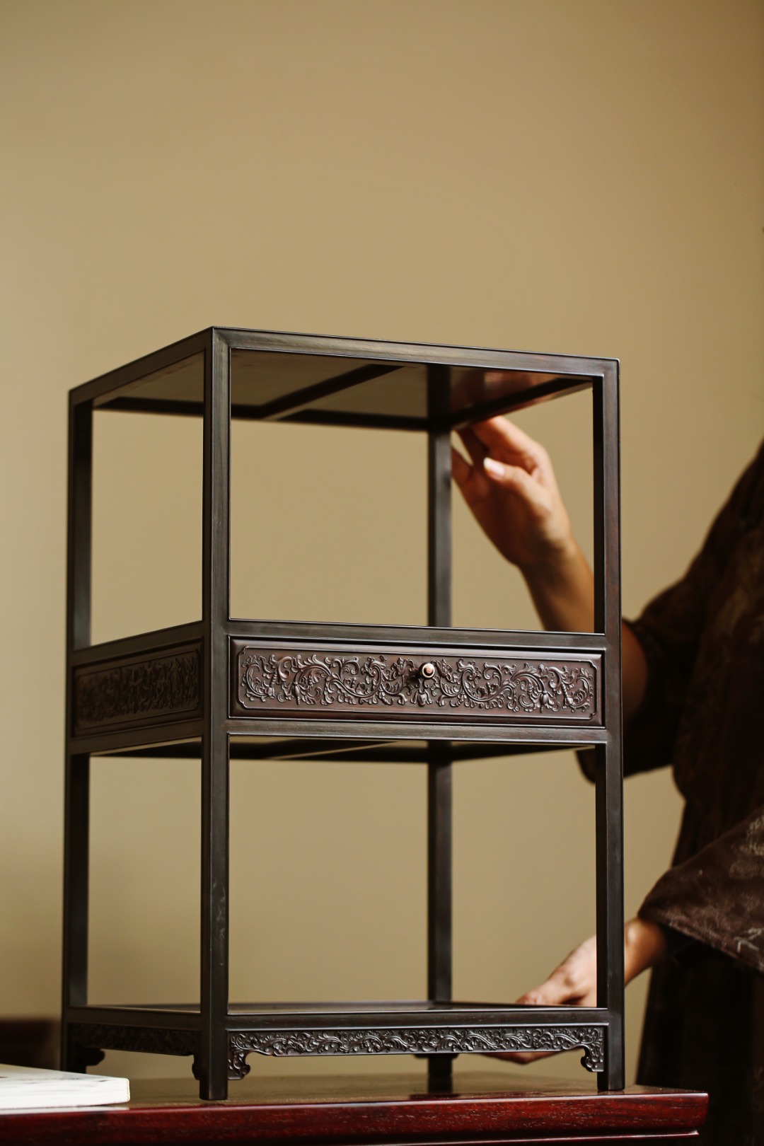 置于案头,可置茶器、藏品、清玩、盆景雅石等,