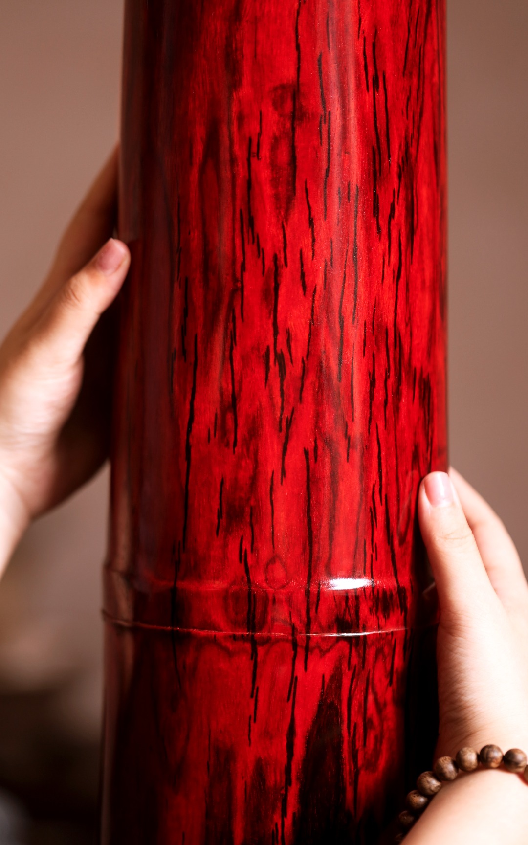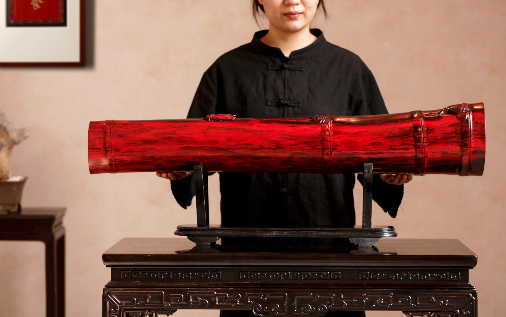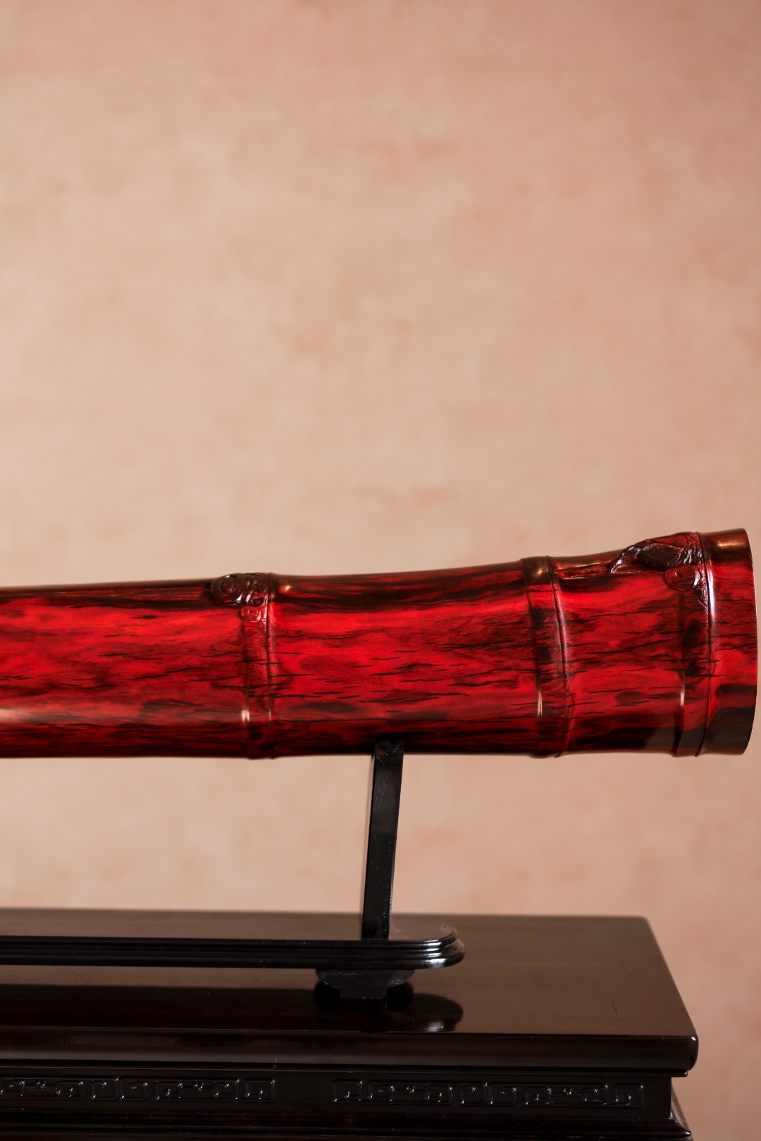 取材实心老料,金星火焰纹逸动如流,雕刻竹节、金蝉寓意甚好。品相与寓意皆美,为收藏陈设上选。