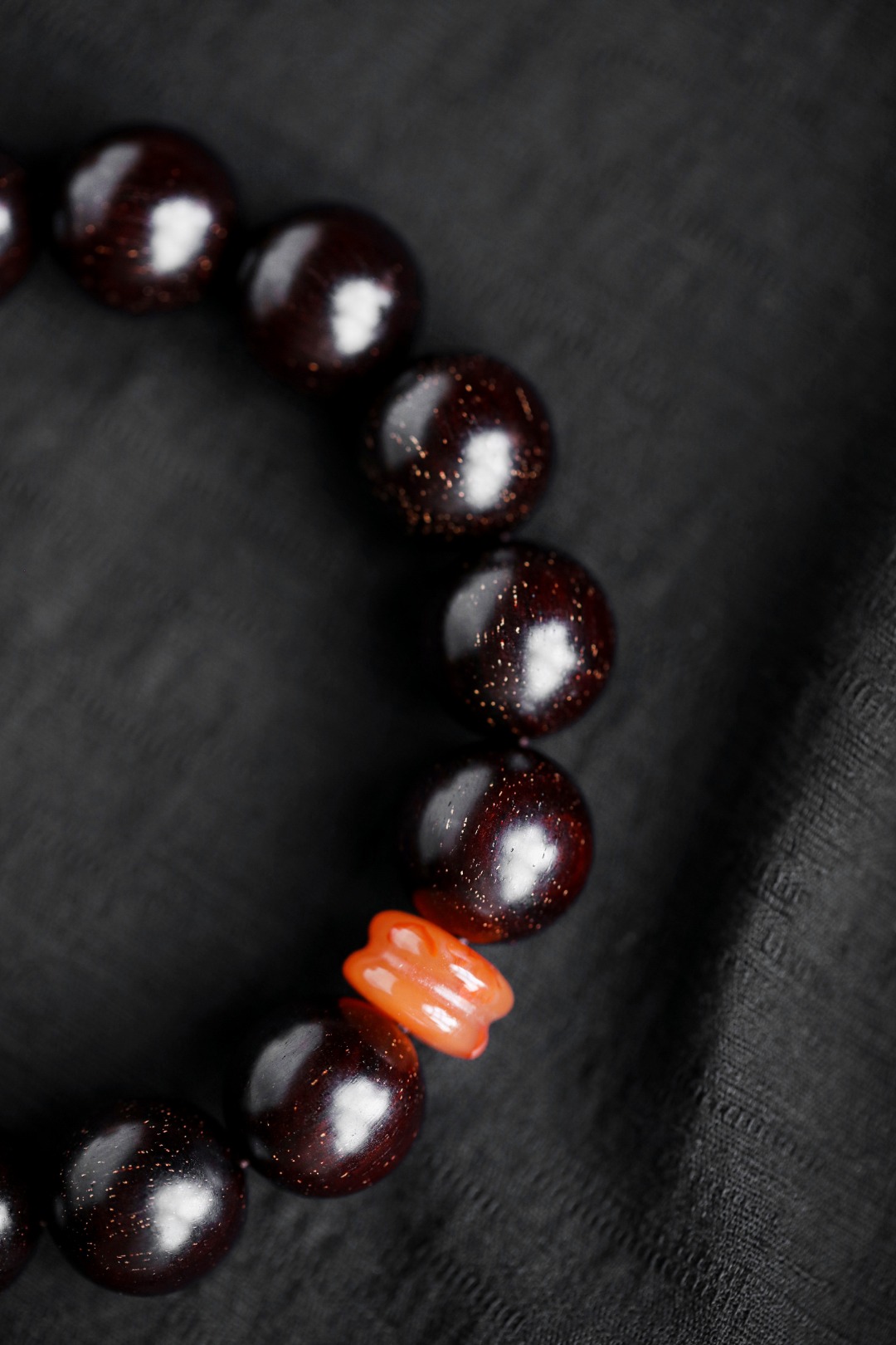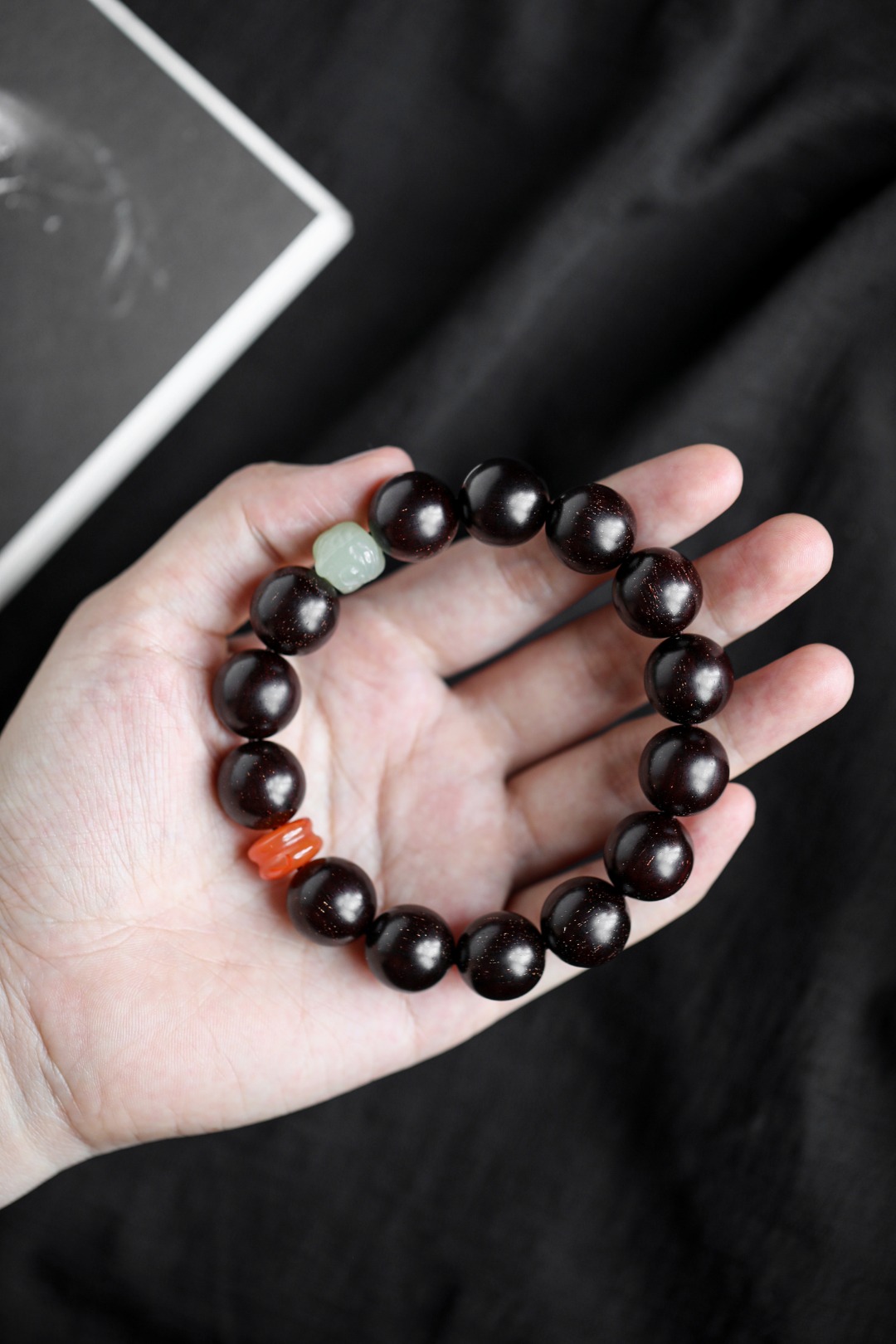 小叶紫檀高密度多金星包浆老料15mm男士手串