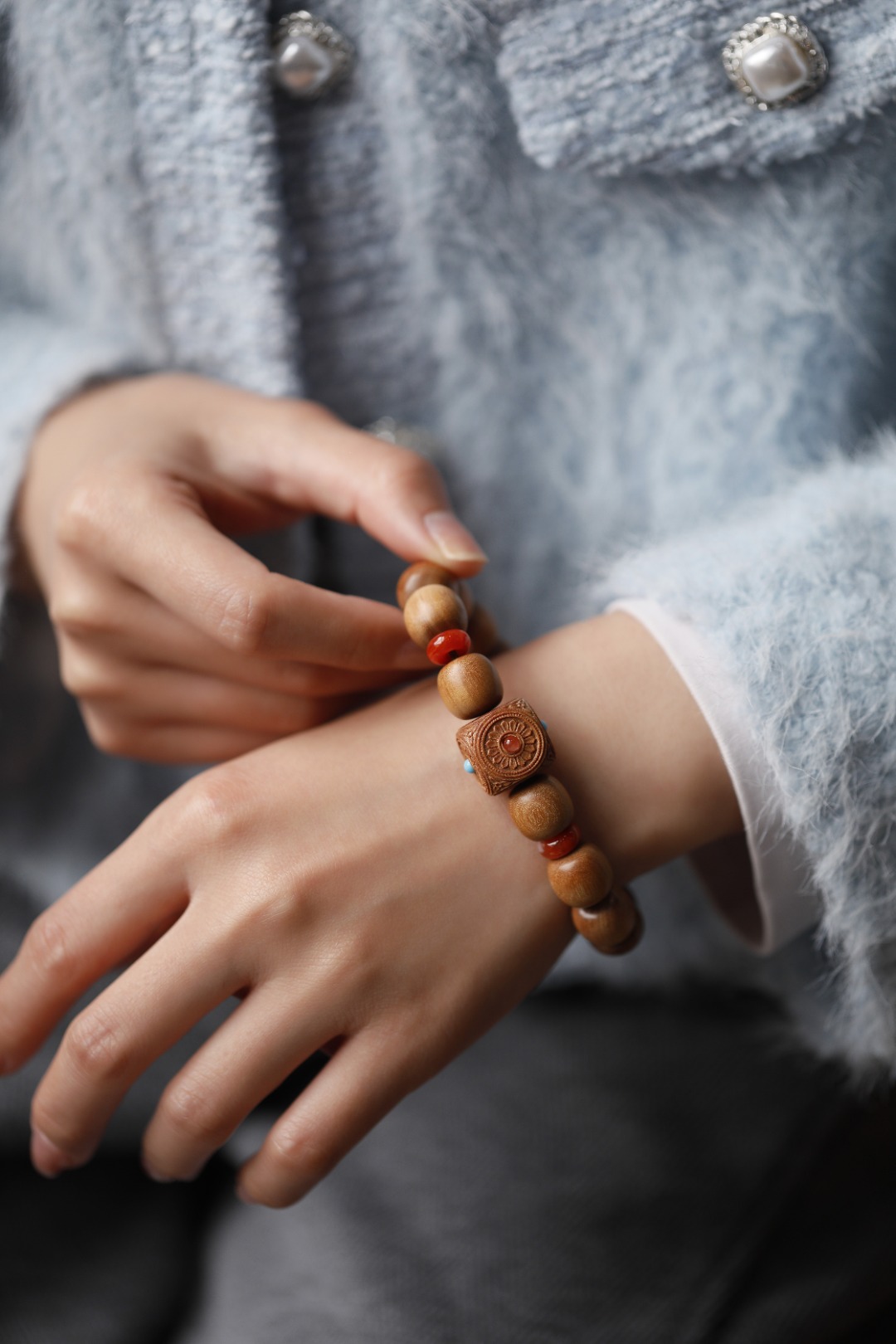 清新的配珠色调,点缀于珠串之间,