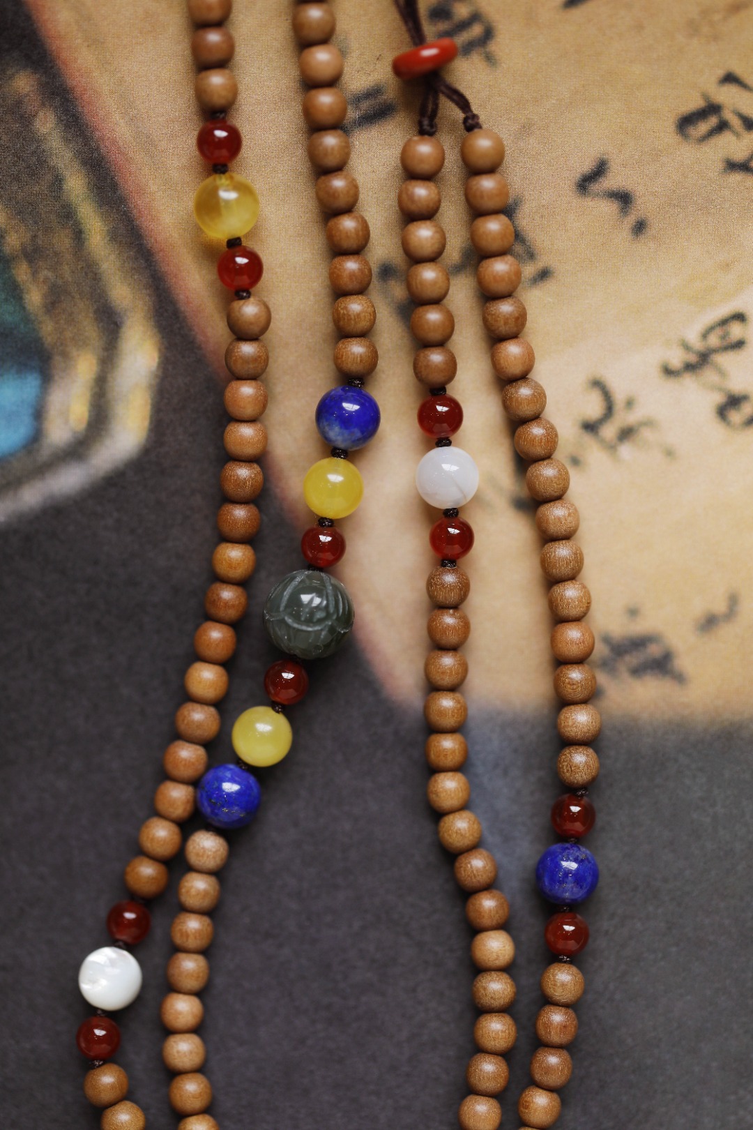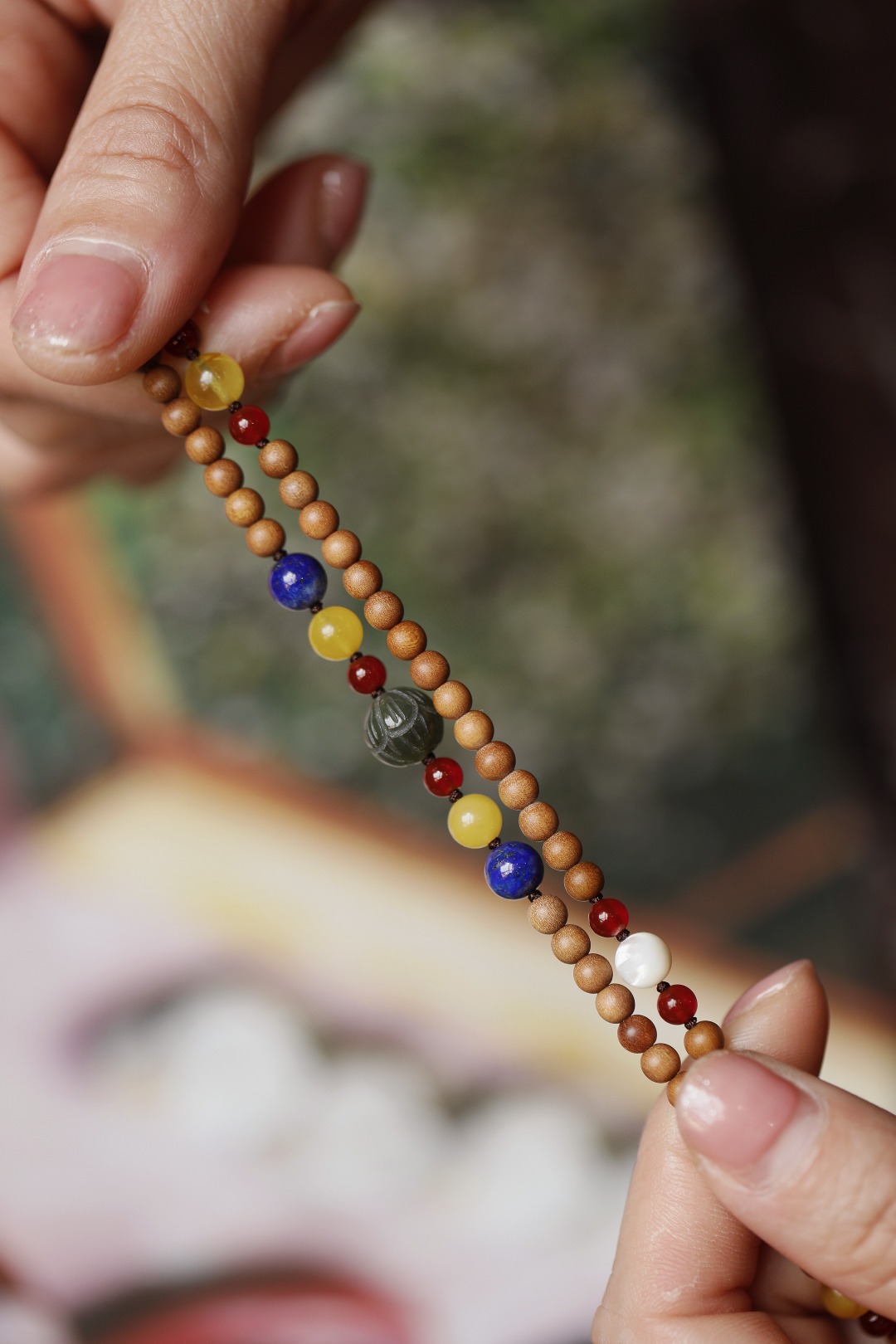 玲珑小巧老山檀珠,搭配多彩斑斓的配珠,