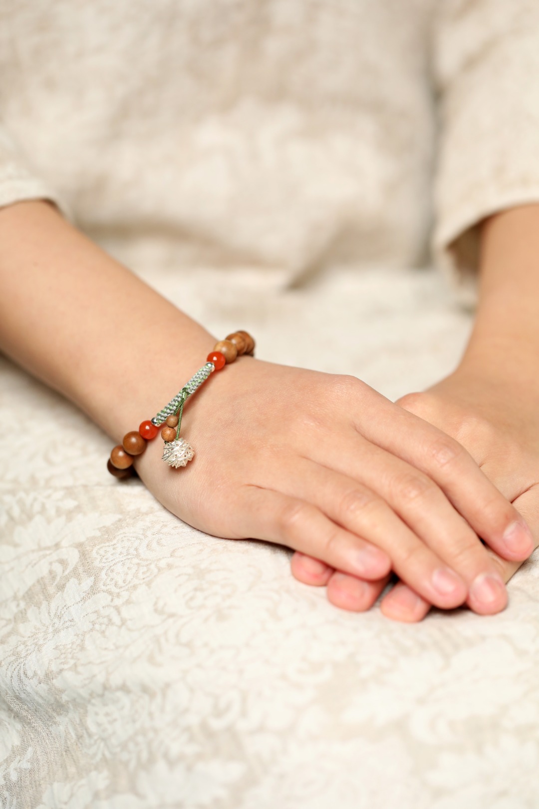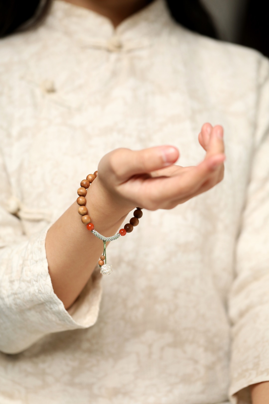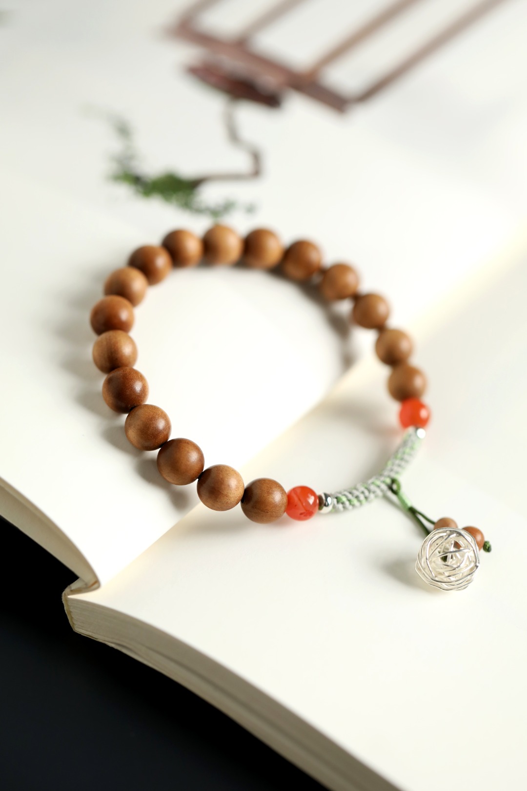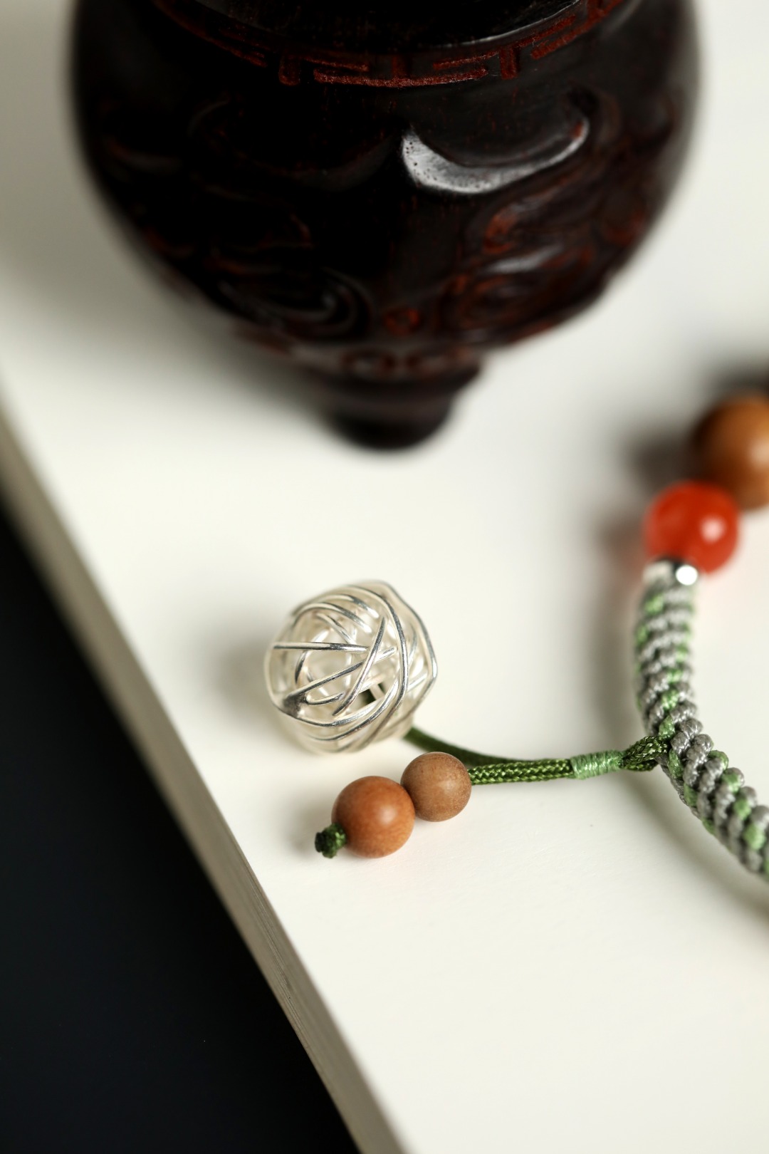 香醇幽雅,南红、银饰点缀其上,