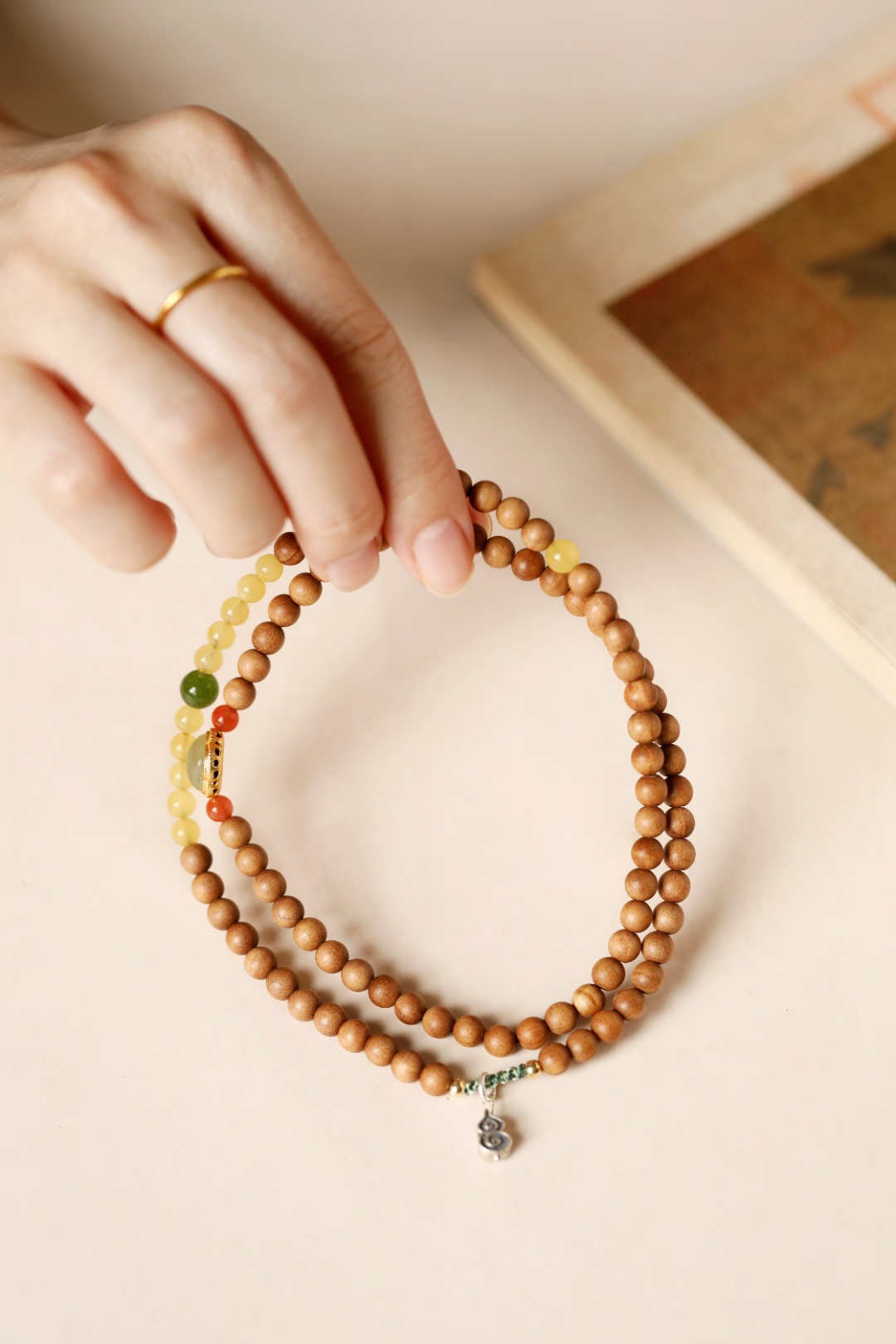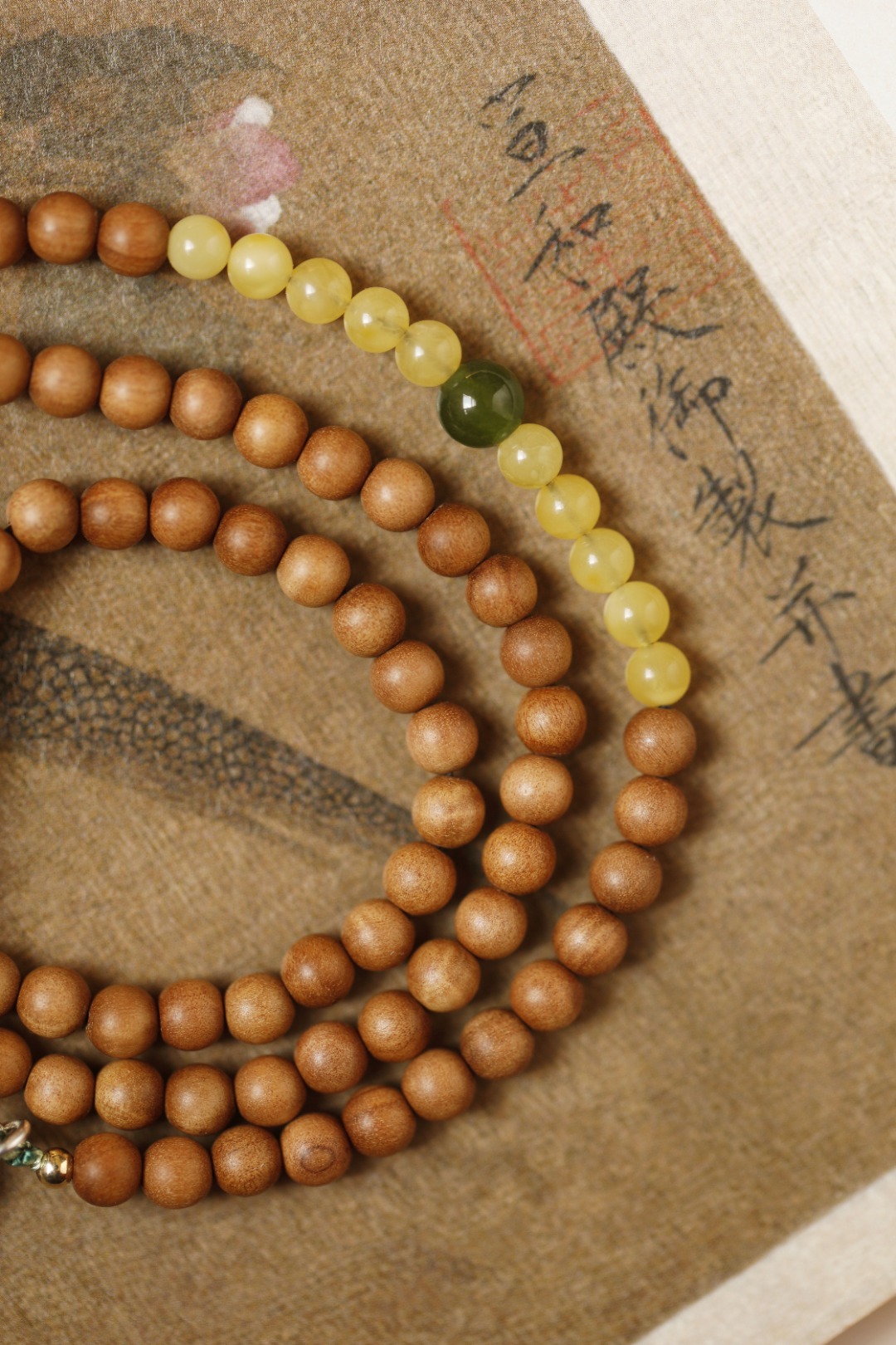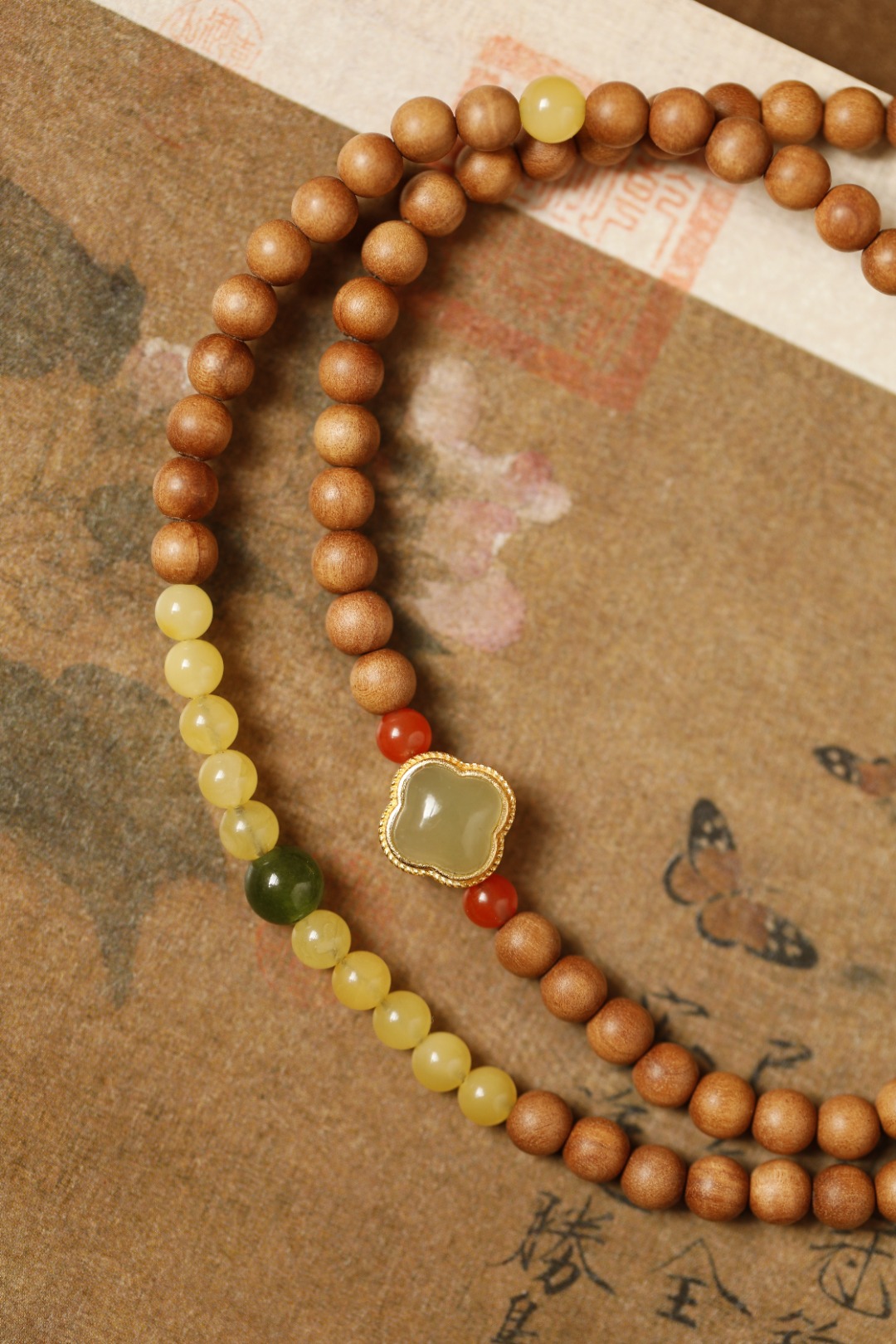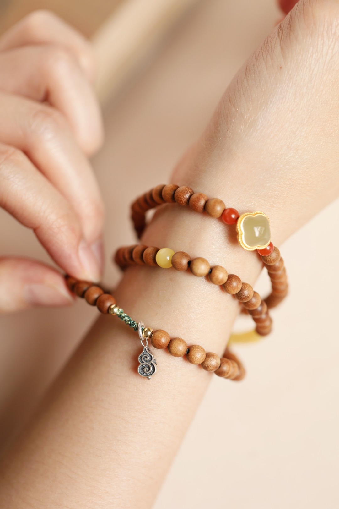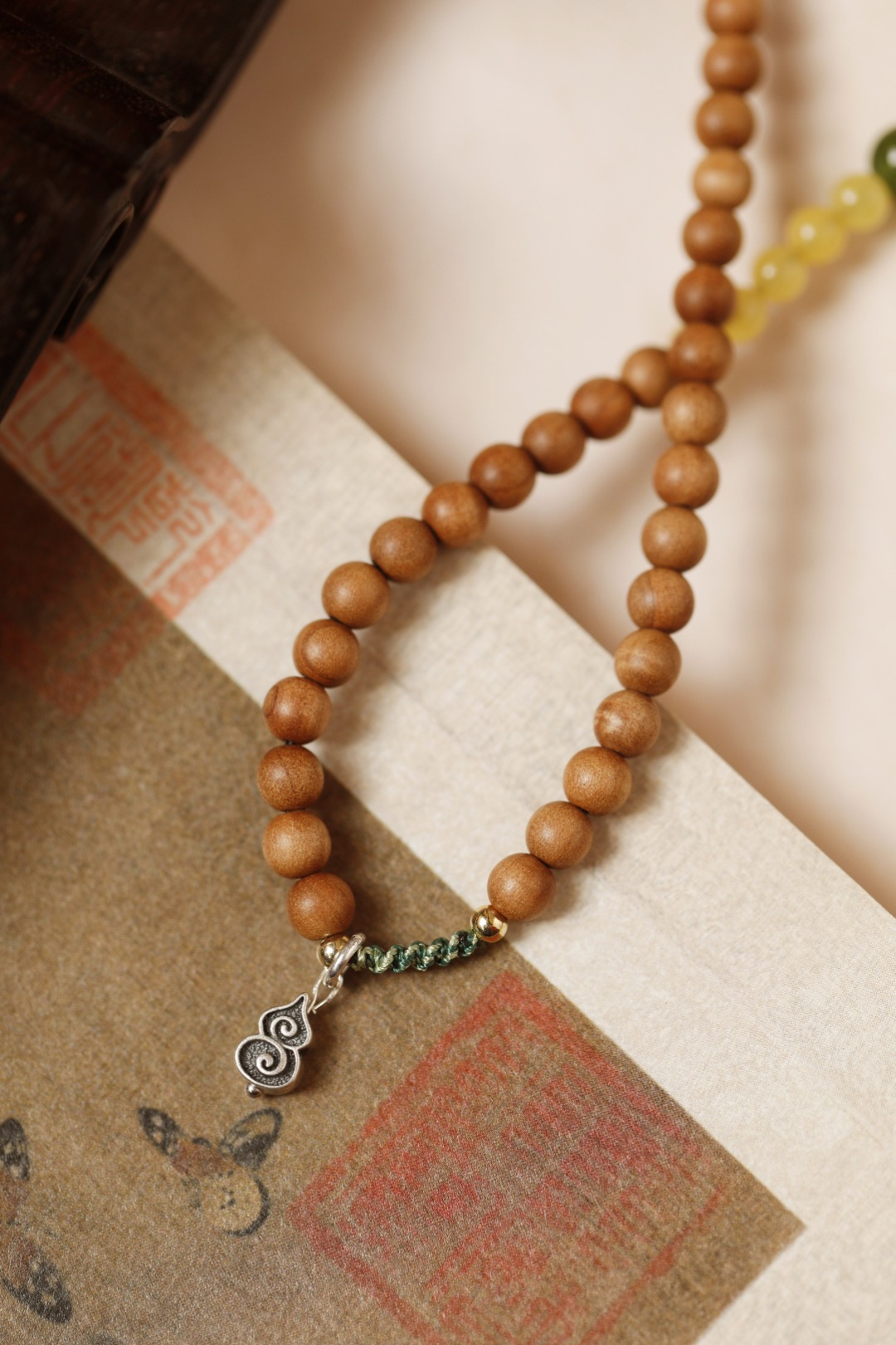 配饰:沙金镶嵌和田玉、蜜蜡、南红、银饰、玉髓