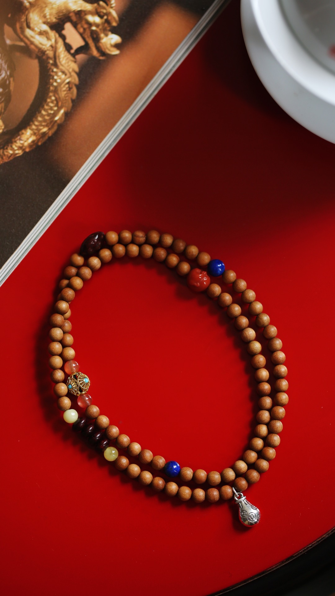 配上南红蜜蜡等,非常别致。