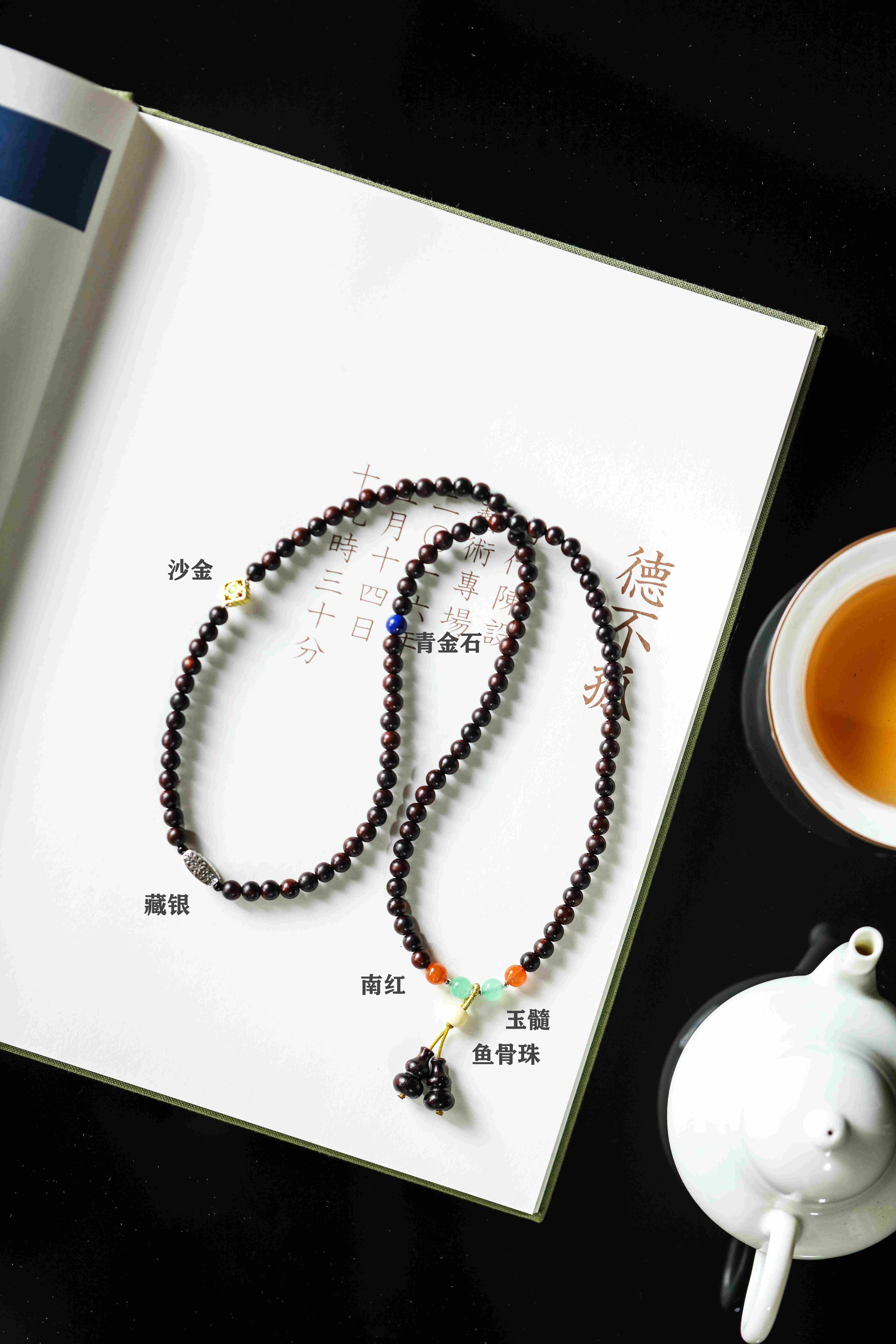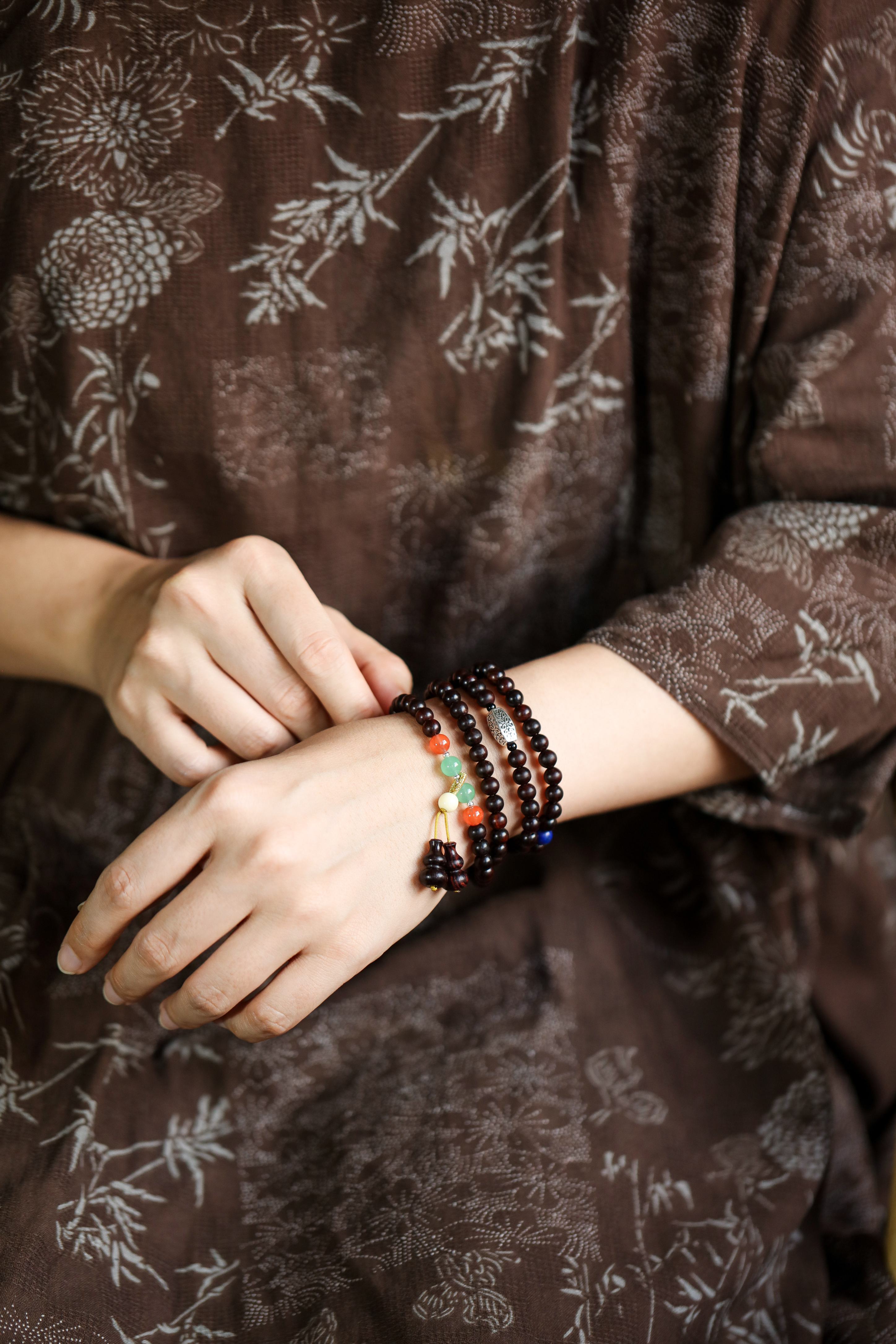 可当手串绕于腕上,亦作项链佩戴;
