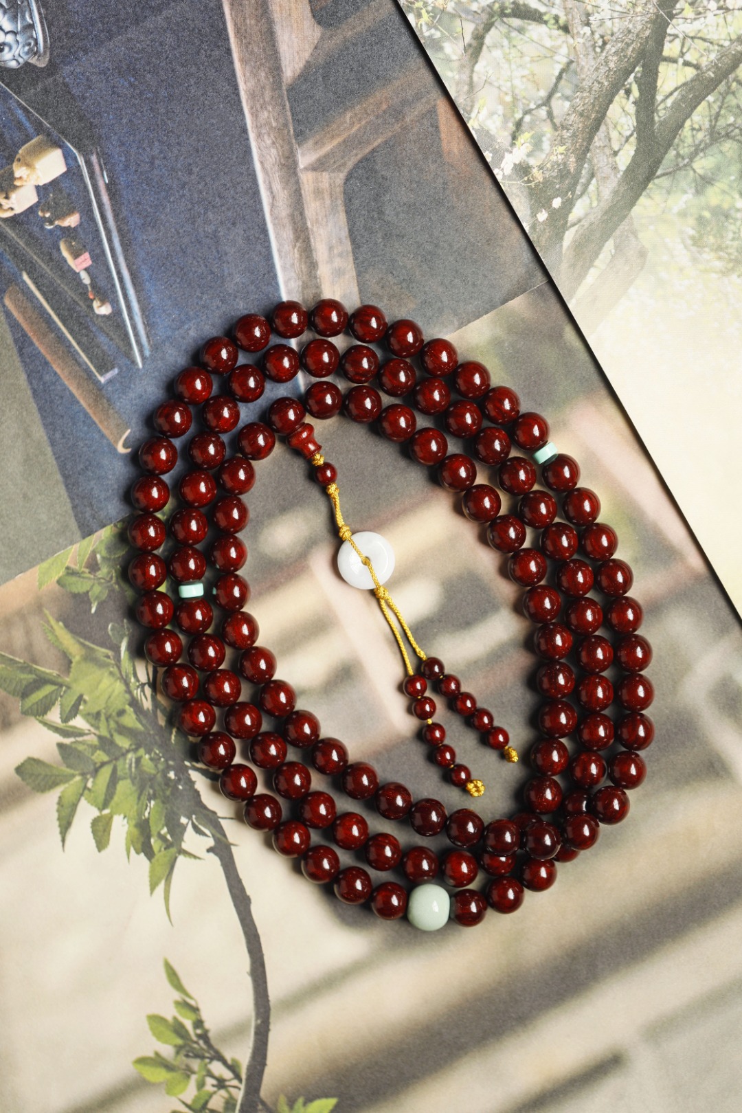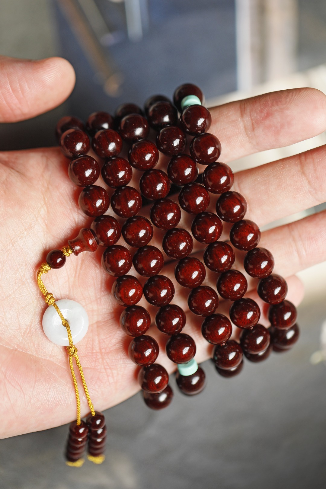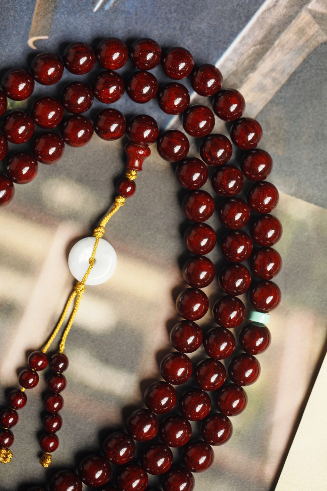 3608 小叶紫檀 鸡血红 高密高油带金星 10mm 108颗 密度油性一流