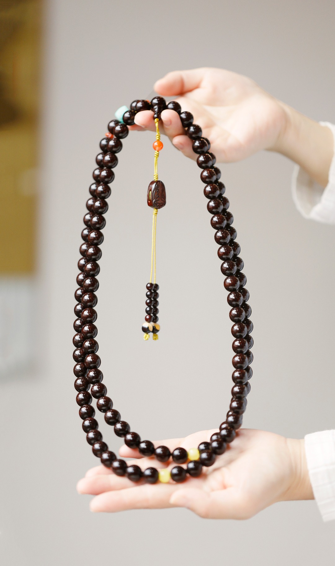 原创设计 小叶紫檀【风名】包浆老料1.2x108颗 多金星念珠 料质细腻 重约126g