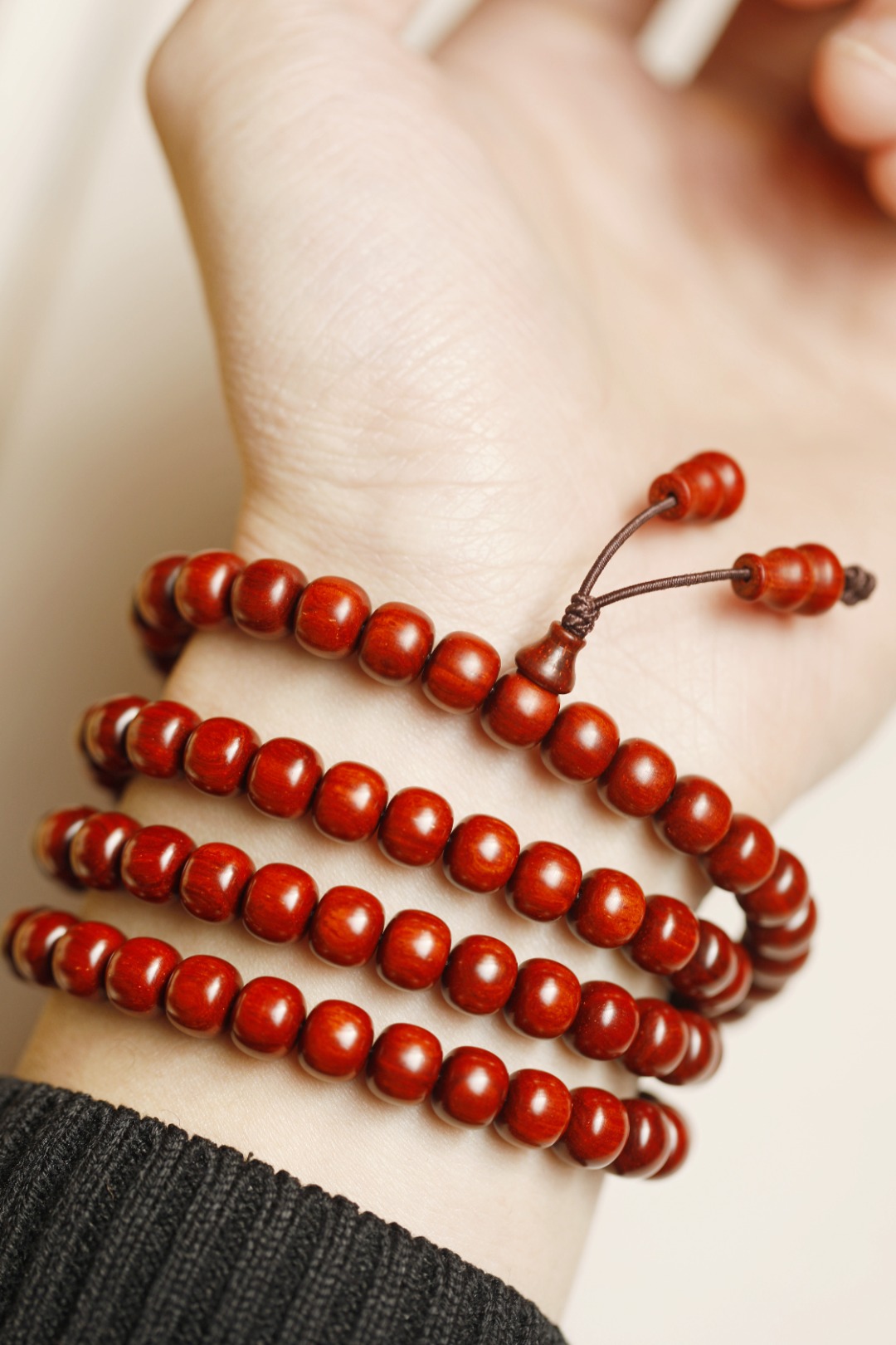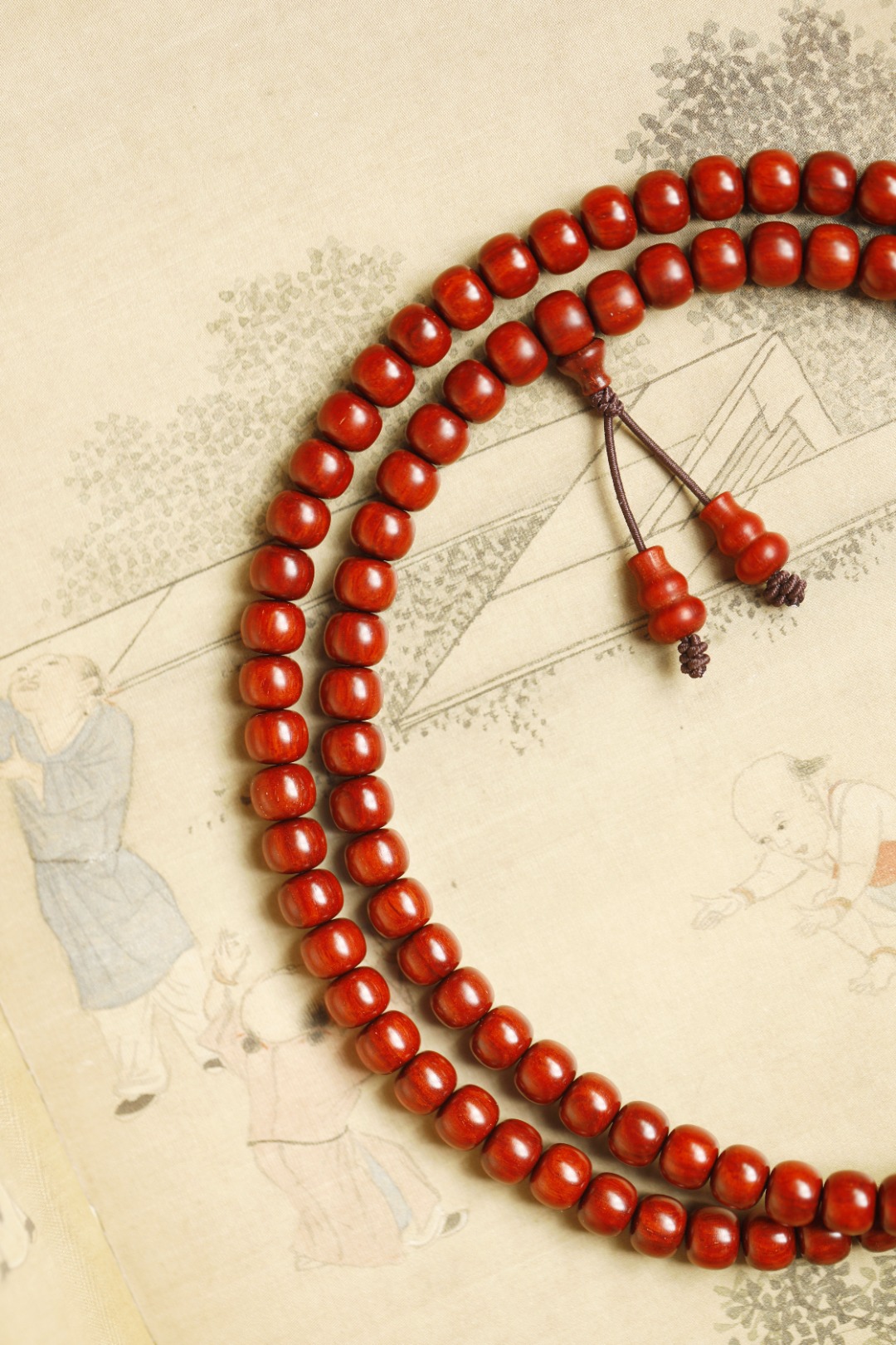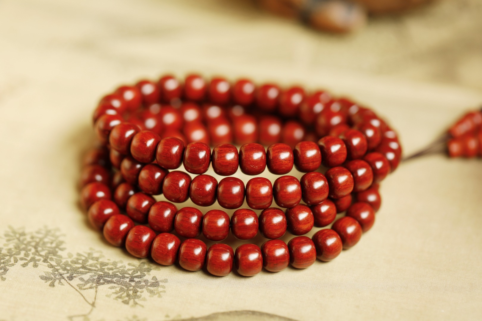 3589 小叶紫檀 鸡血红 7x8mm 108颗 约37.4g